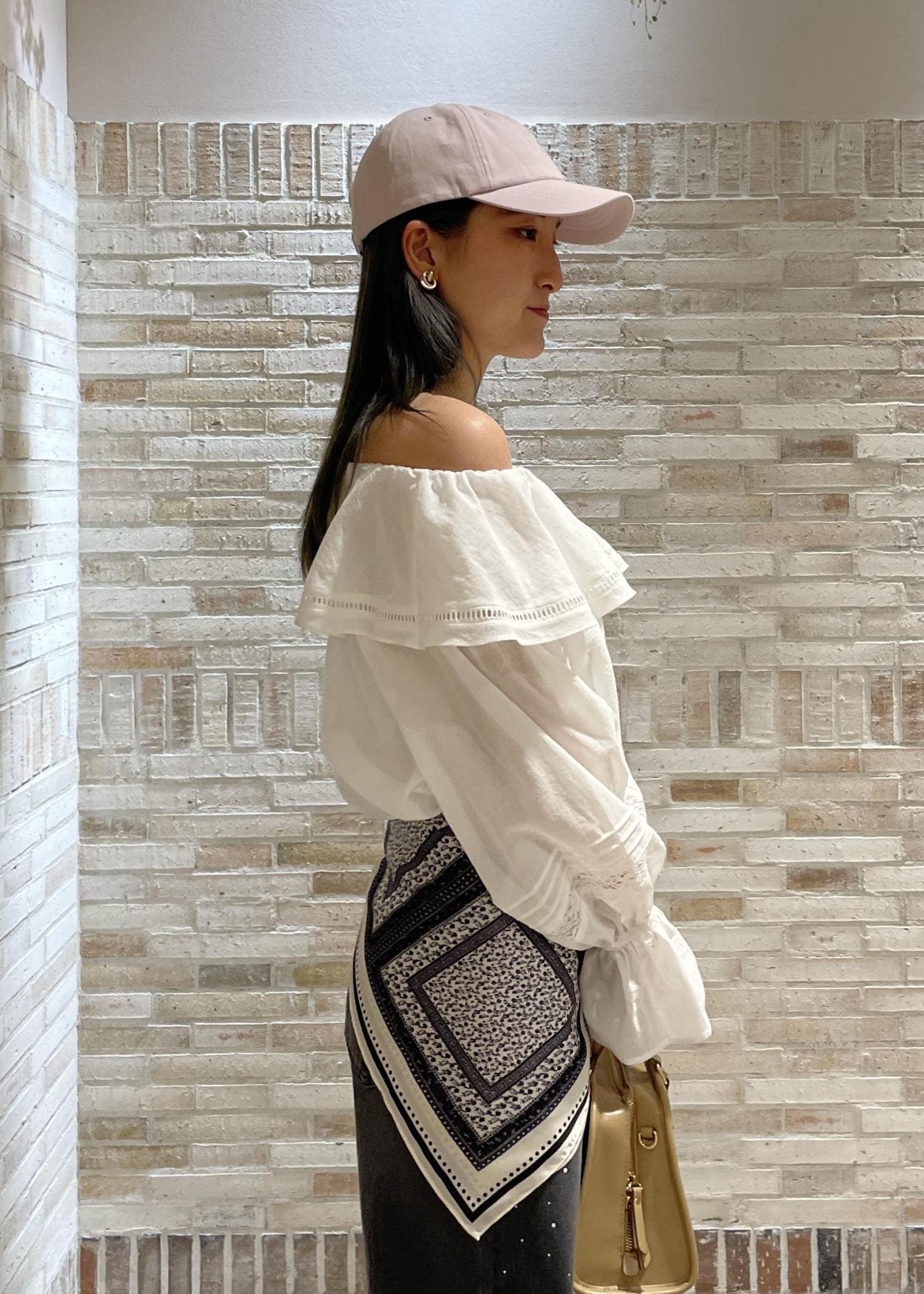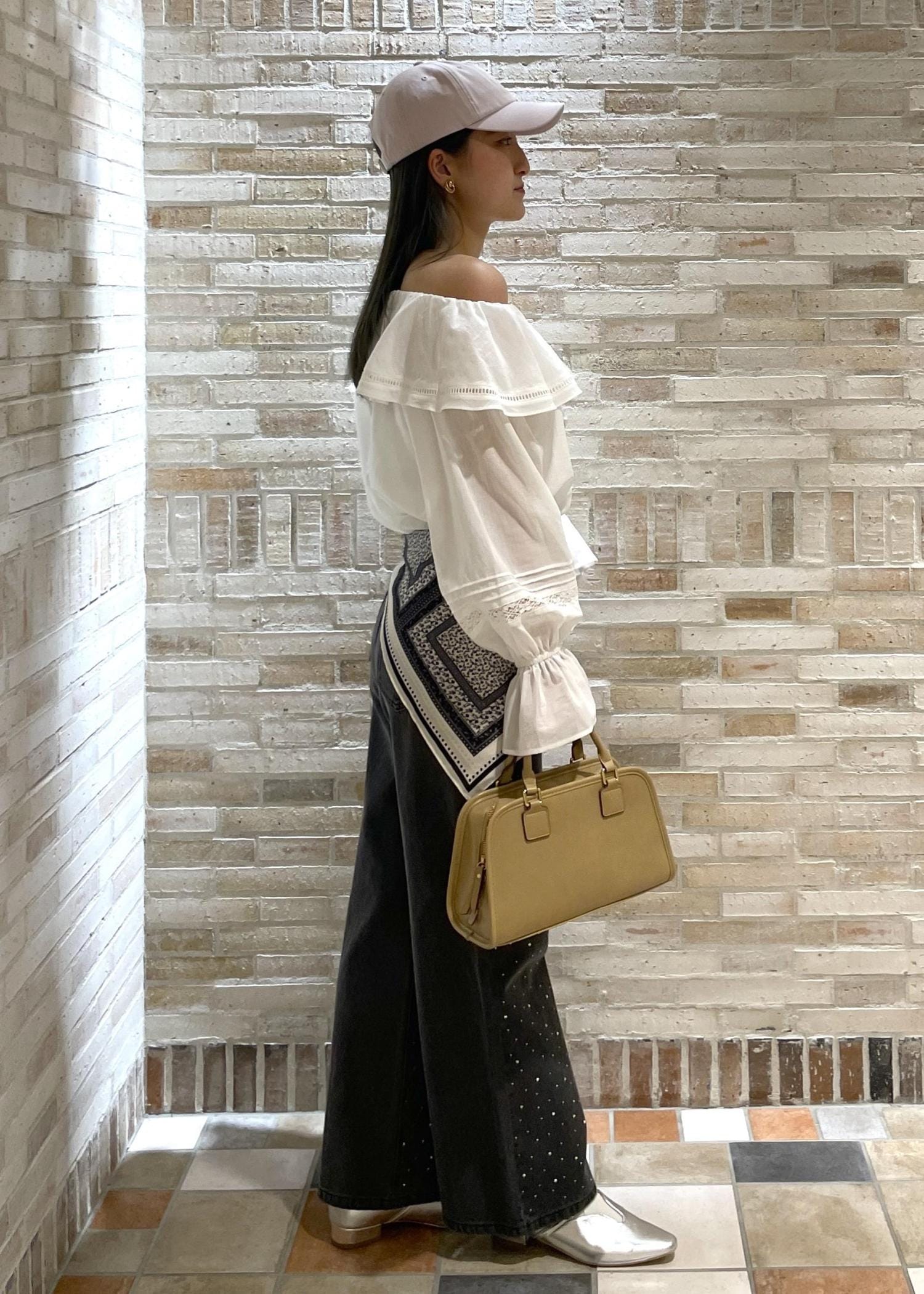 春のオフショルダーコーディネート
