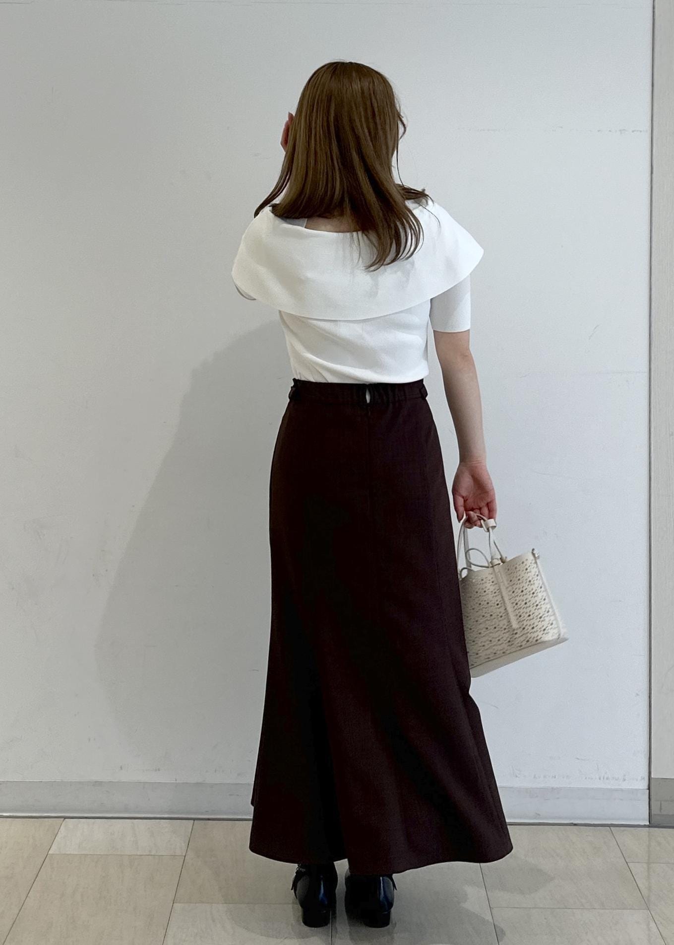 スカートどホワイトのケープのトップスがしなやかな女性らしい雰囲気を作ってくれるコーディネートになってます!!