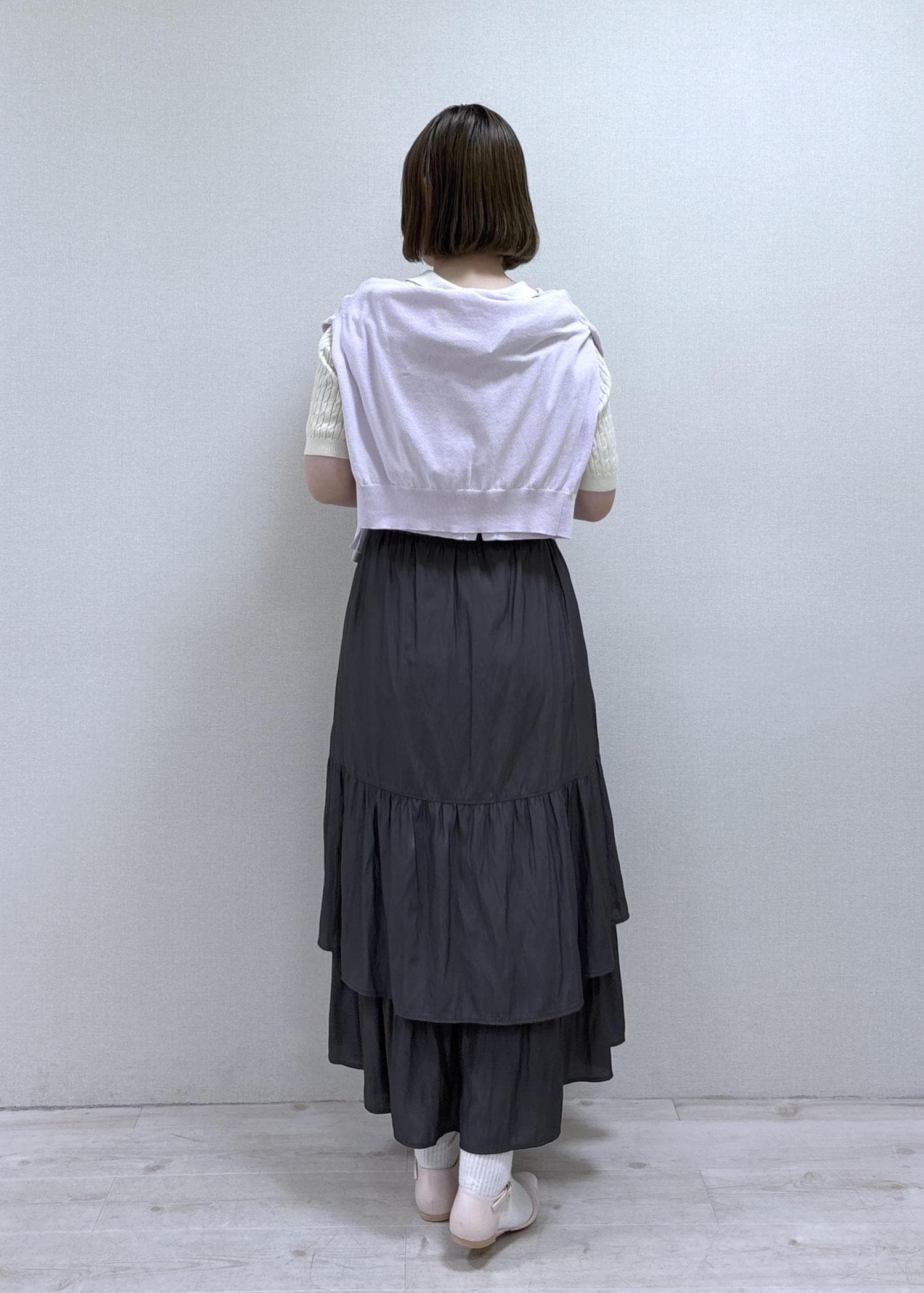 ROPÉ PICNICダンダンティアードスカートチャコール / F¥7,491レビューくるぶしが見えるくらいの丈感でした。
