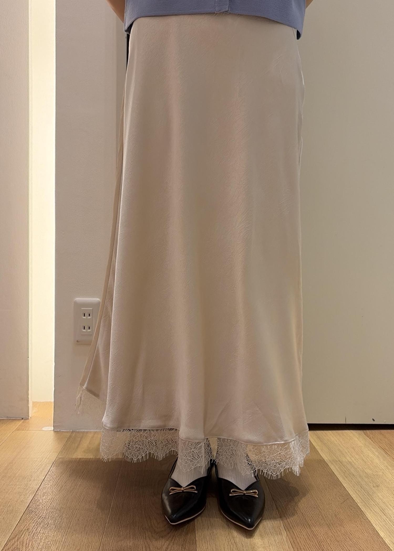 ブルーカーディガン×裾レーススカート