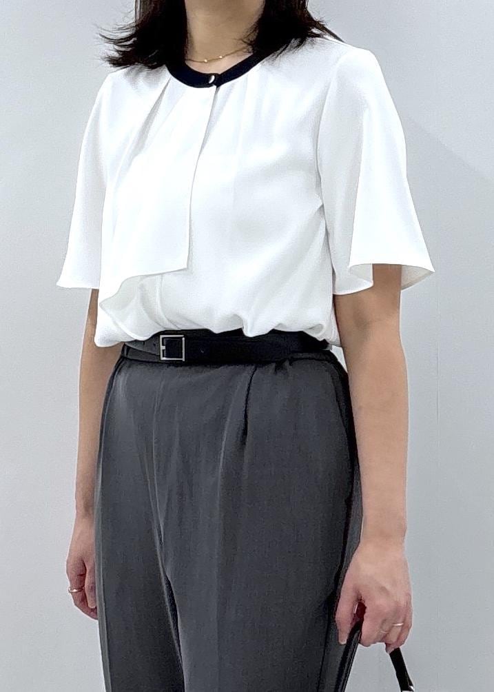 毎年人気のボウタイブラウスハーフスリーブは