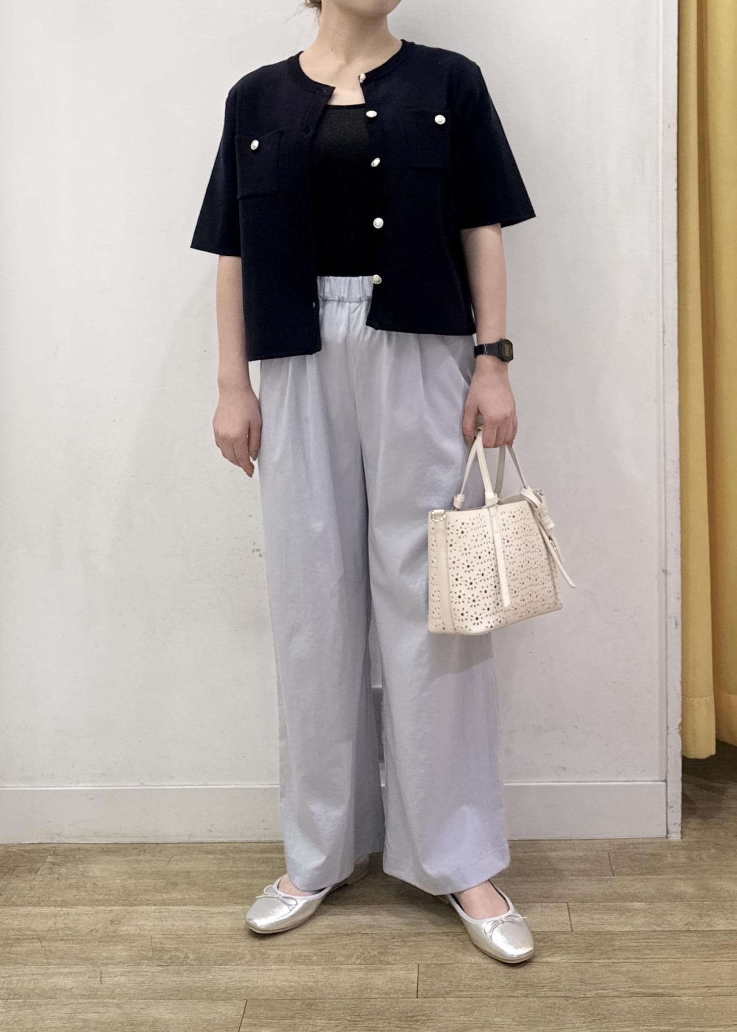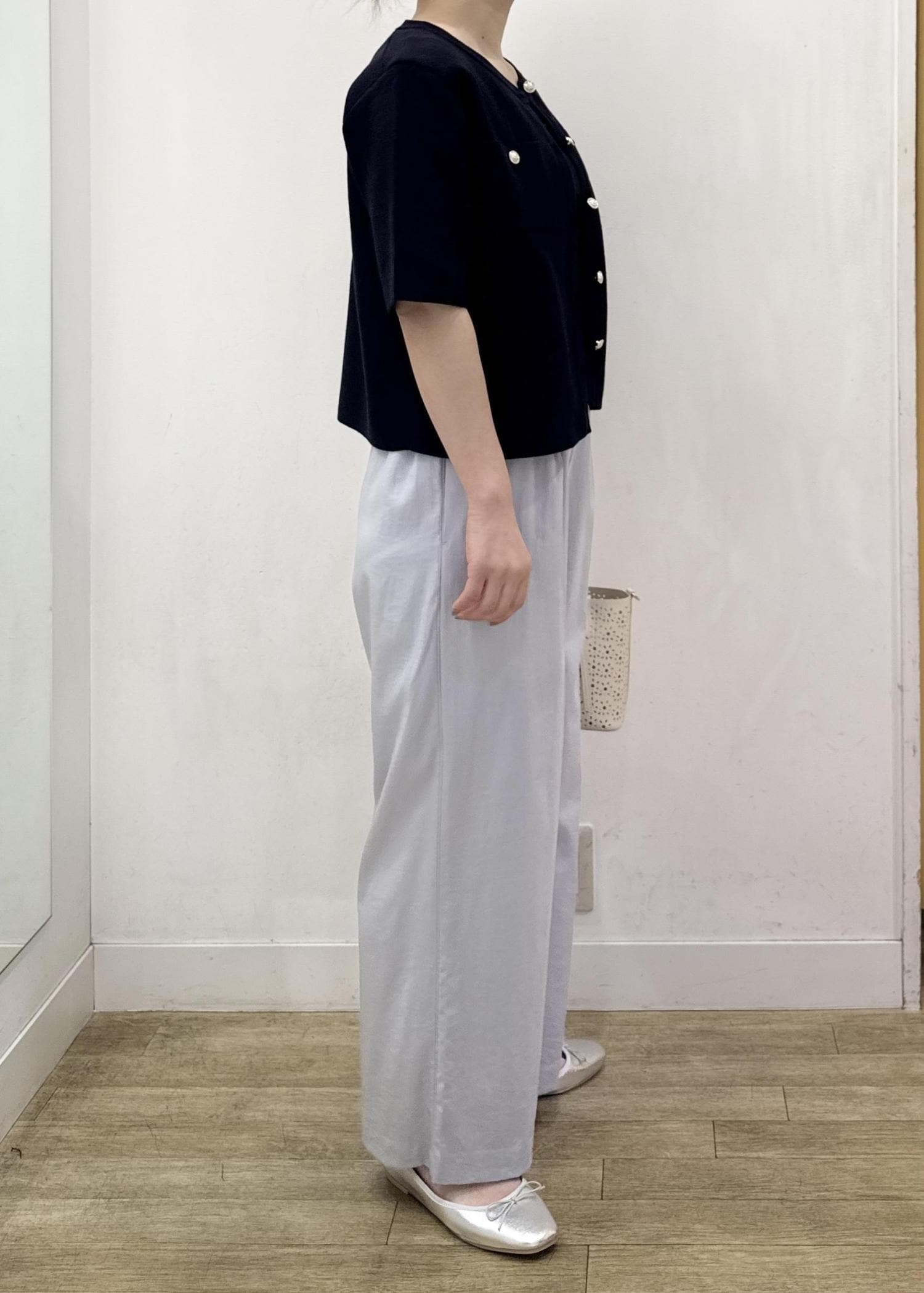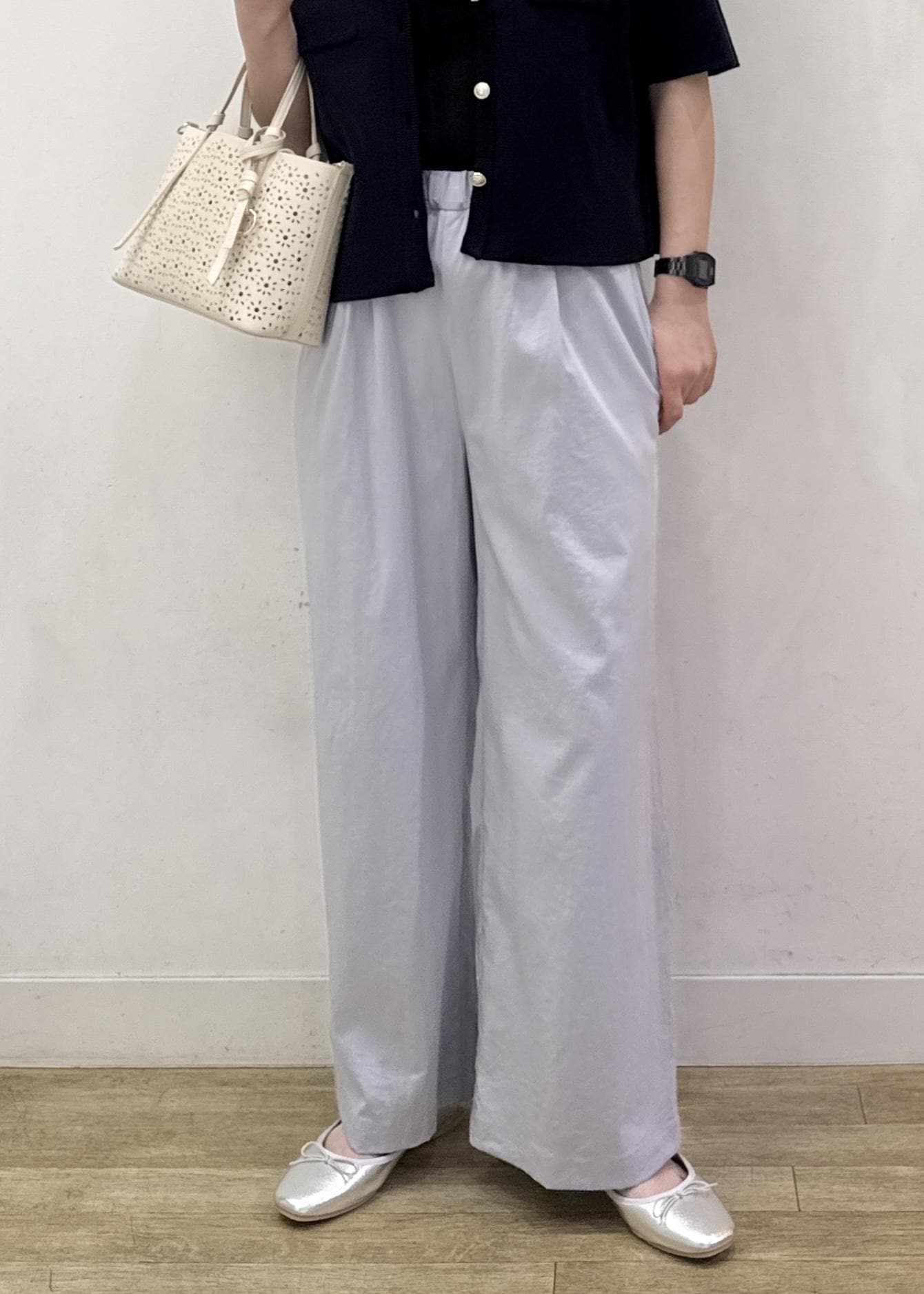 サラッと薄手の素材感で暑い時期にも穿きやすいオススメのワイドパンツです。 -