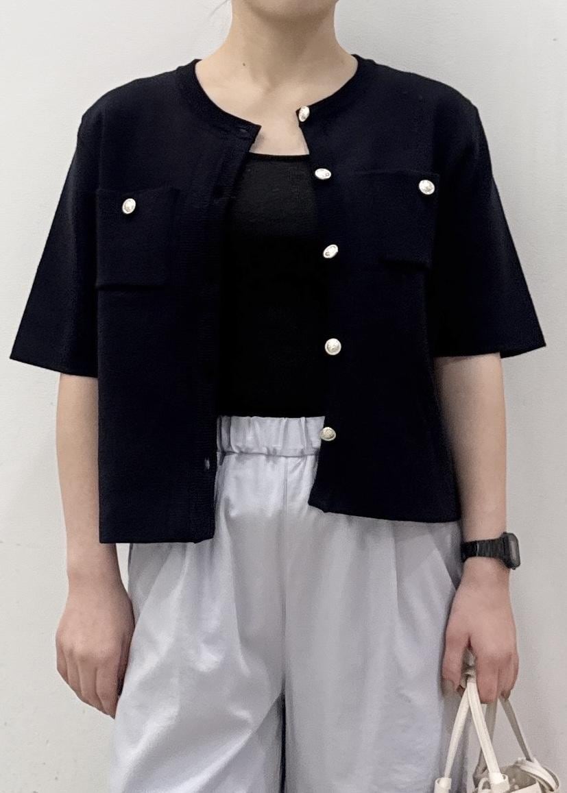 ROPÉ PICNICミラノリブ金ボタン半袖カーディガンネイビー / F¥5,489レビュー腰ぐらいのスッキリとした着丈。