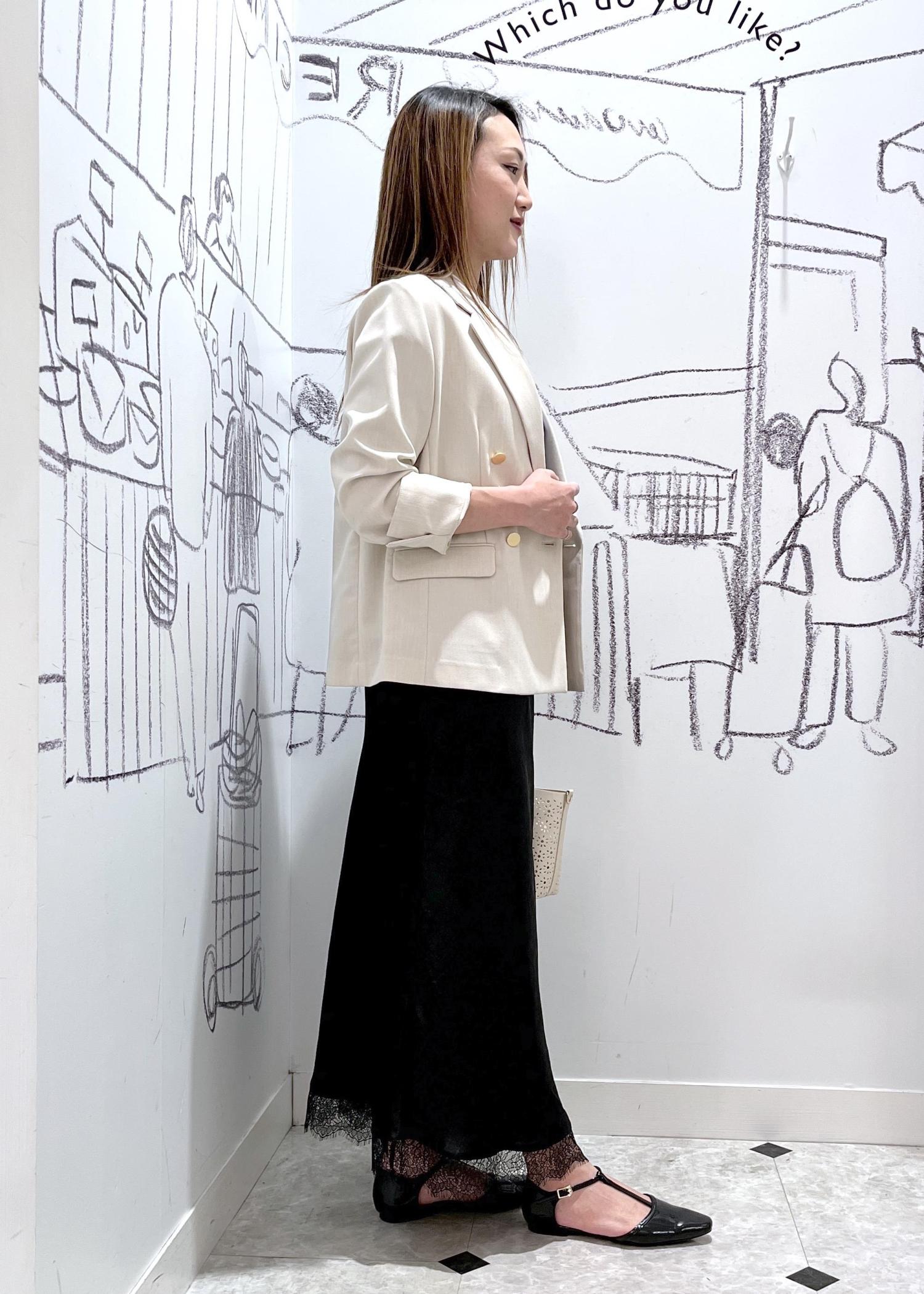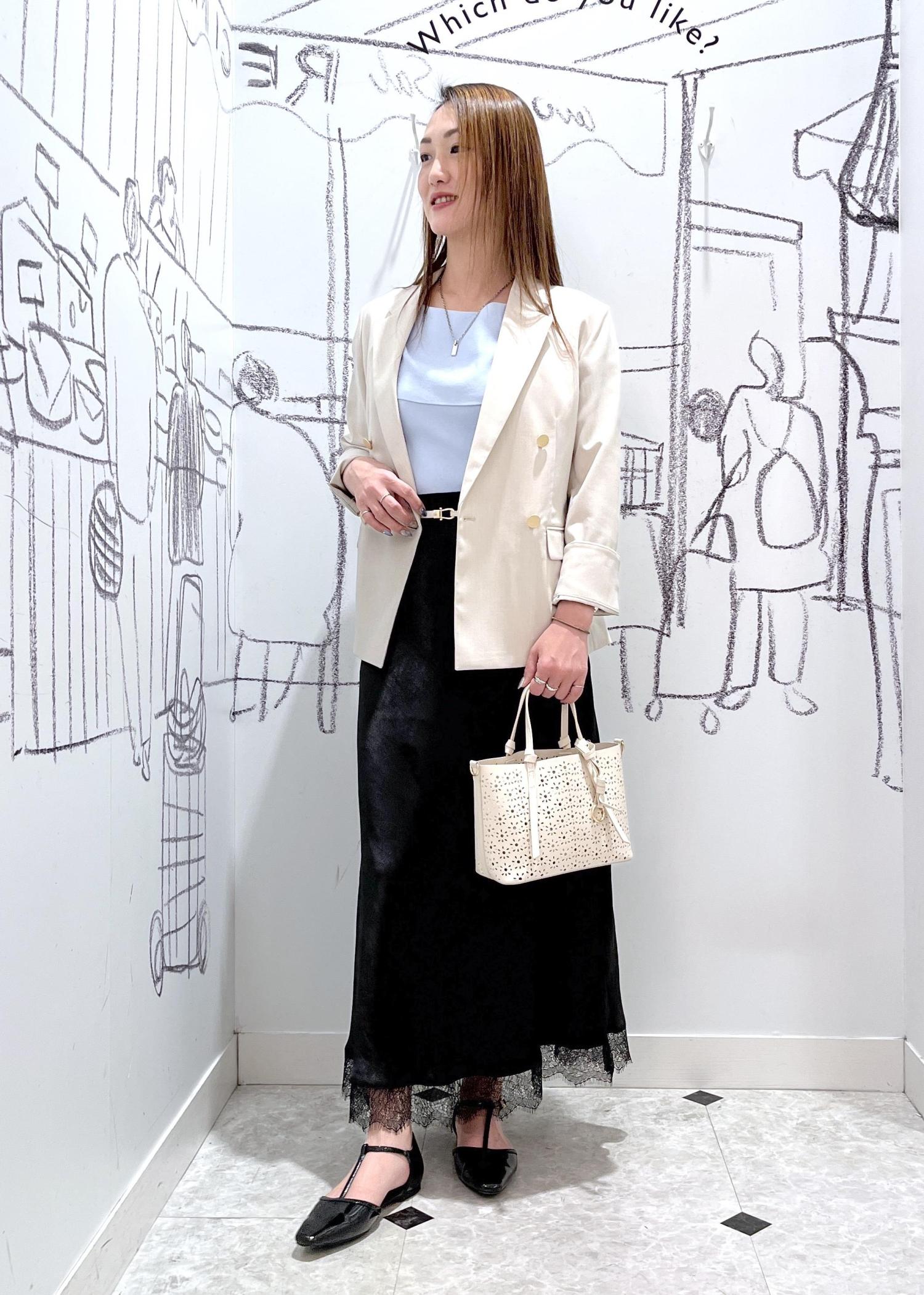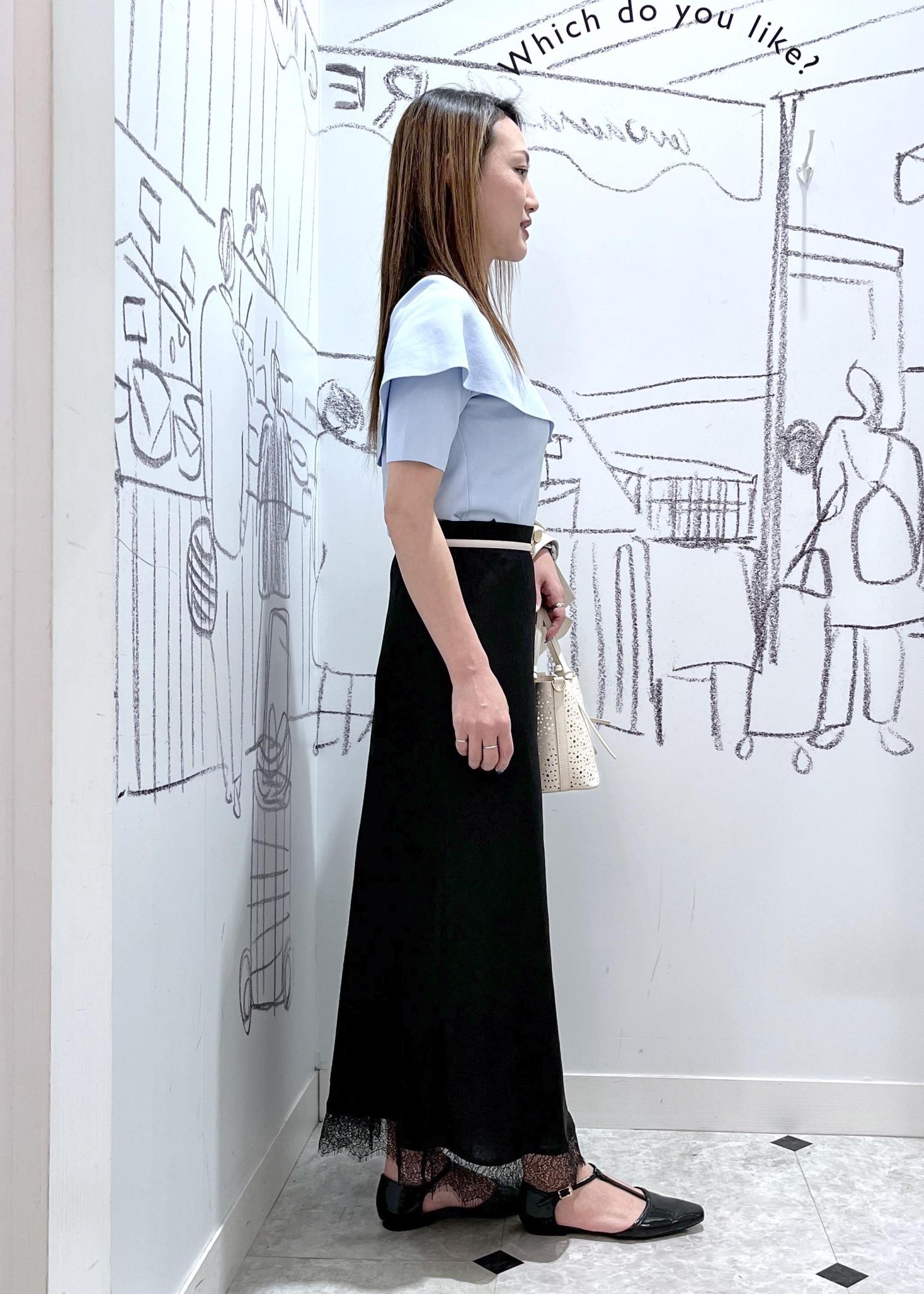 一枚で着映えするトップスに、上品なIラインロングスカートを合わせてすっきりと大人なキレイめスタイル。