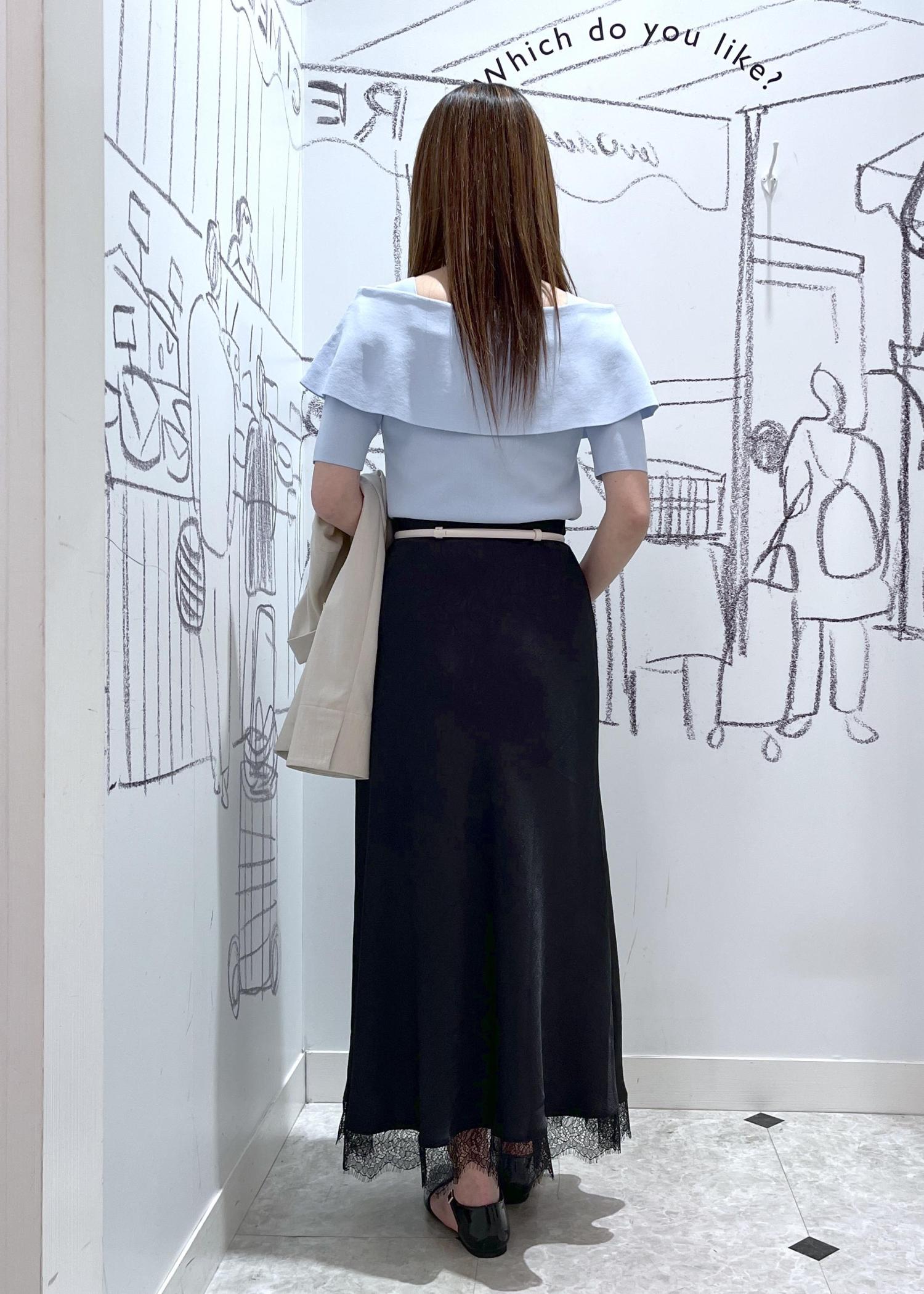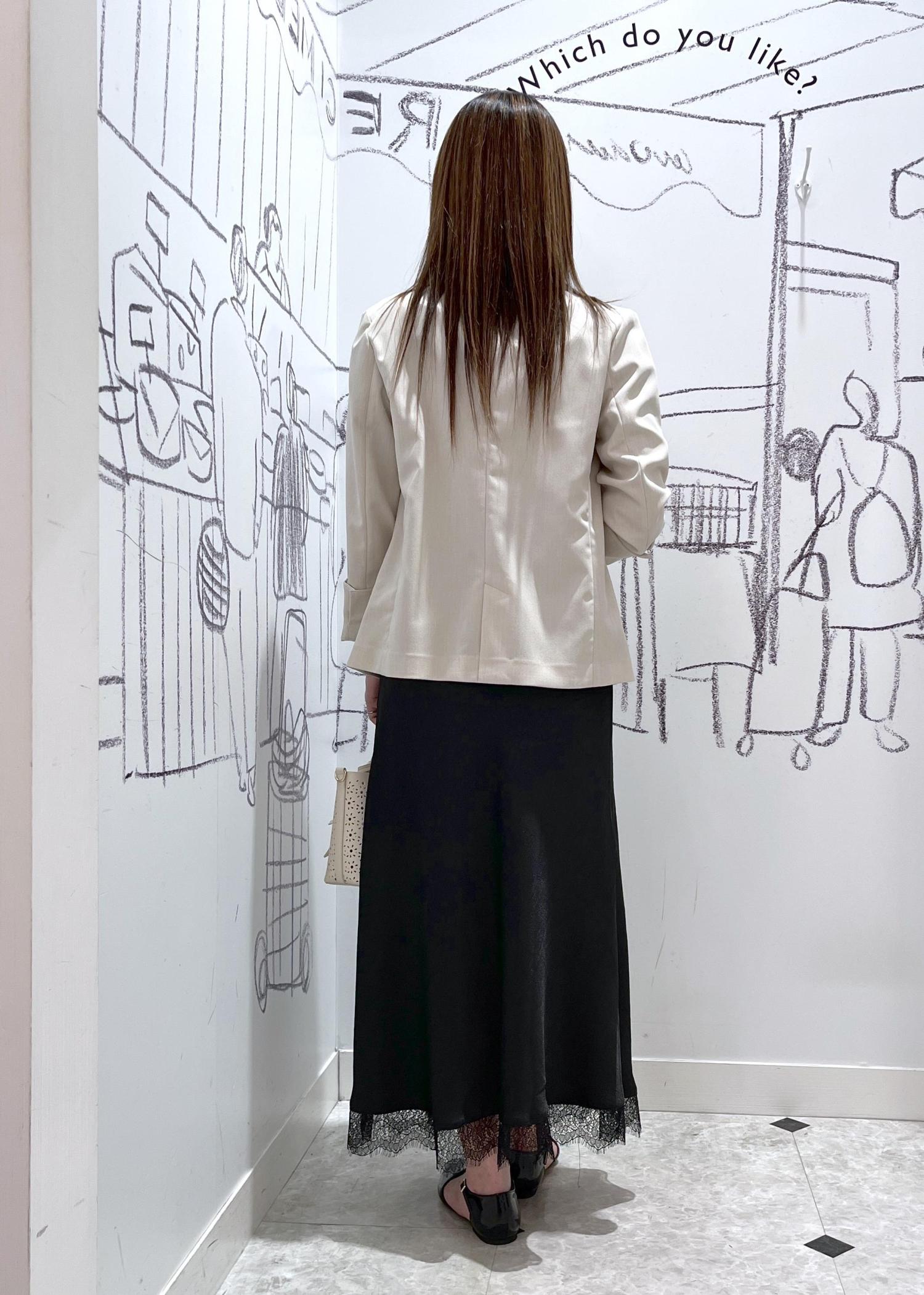 ROPÉ PICNIC裾レースロングスカートブラック / F¥6,490レビュー光沢感のあるマットなサテン生地と裾レースが上品な印象のスカートです。