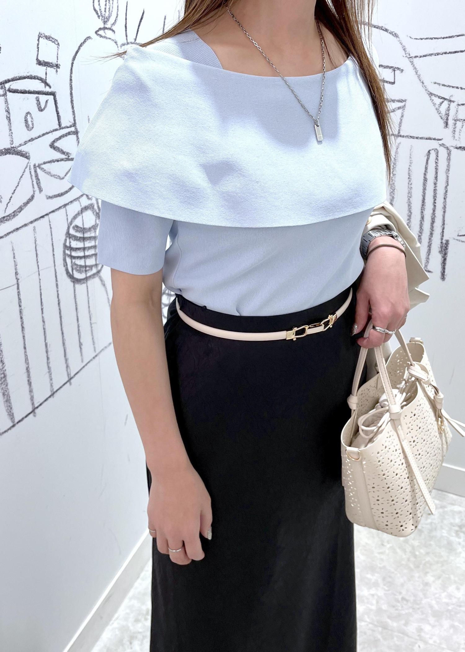しっかりとした生地感のニットですが、接触冷感で肌に触れると涼しく感じられる夏にぴったりのトップスです。
