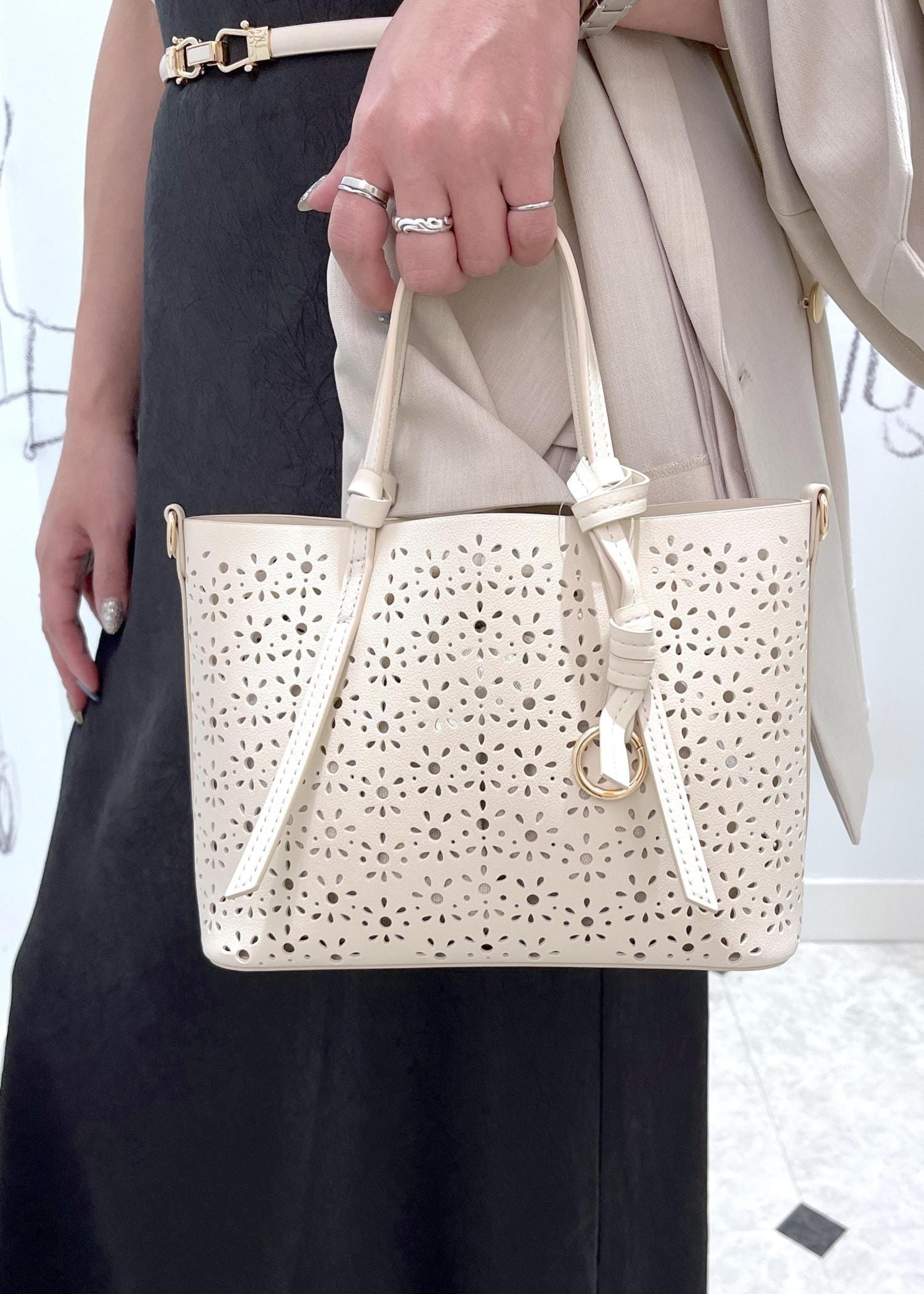 ROPÉ PICNIC PASSAGEフルーレットパンチングレースミニショルダーバッグ/2WAYオフホワイト / F¥6,490レビューパンチングレースの透け感が涼しげで春夏にぴったりのバッグです。