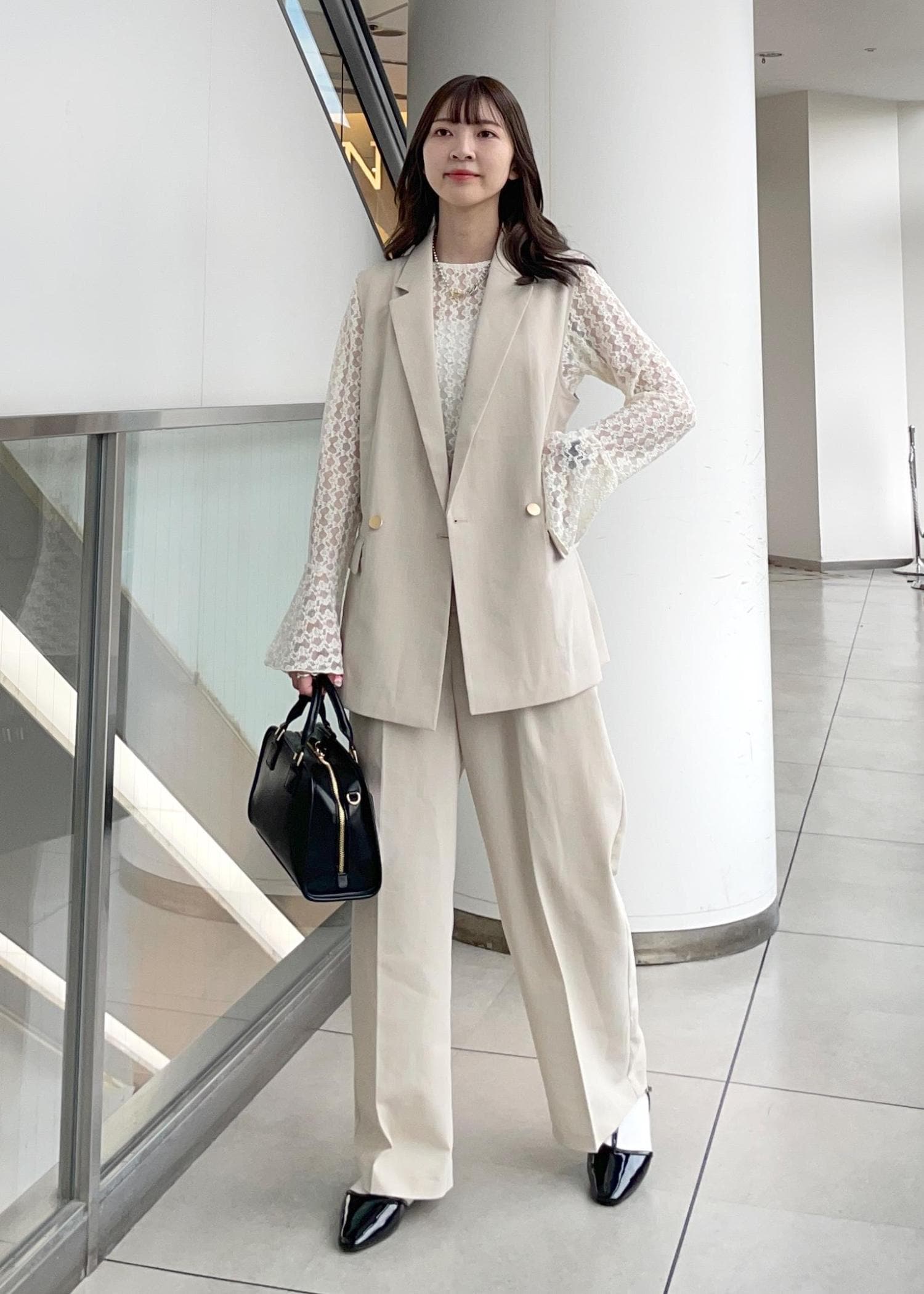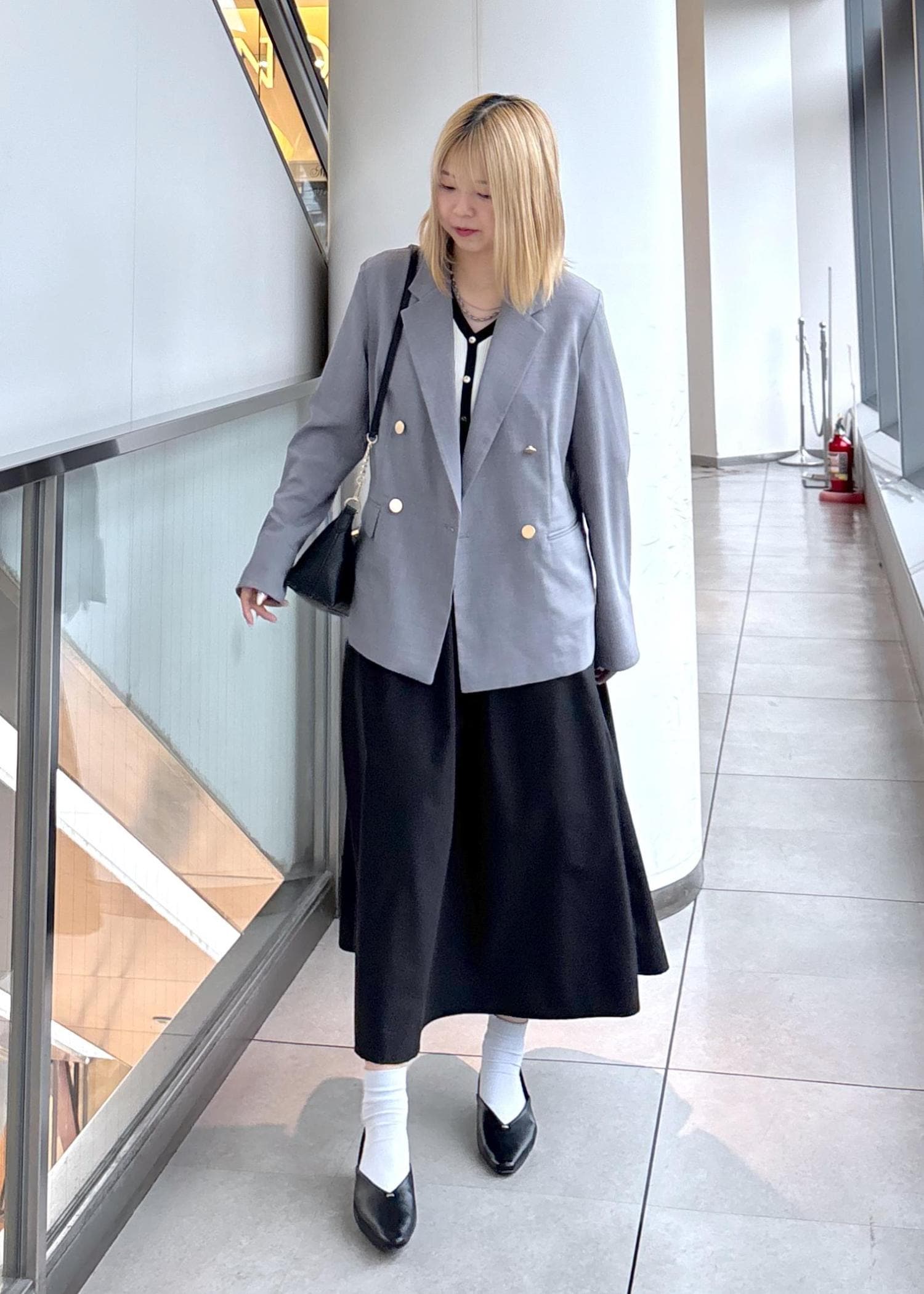 お仕事にもカジュアルにも合わせやすいデザインで、ワンサイズ上げて抜け感を出すのもおすすめです◎ -