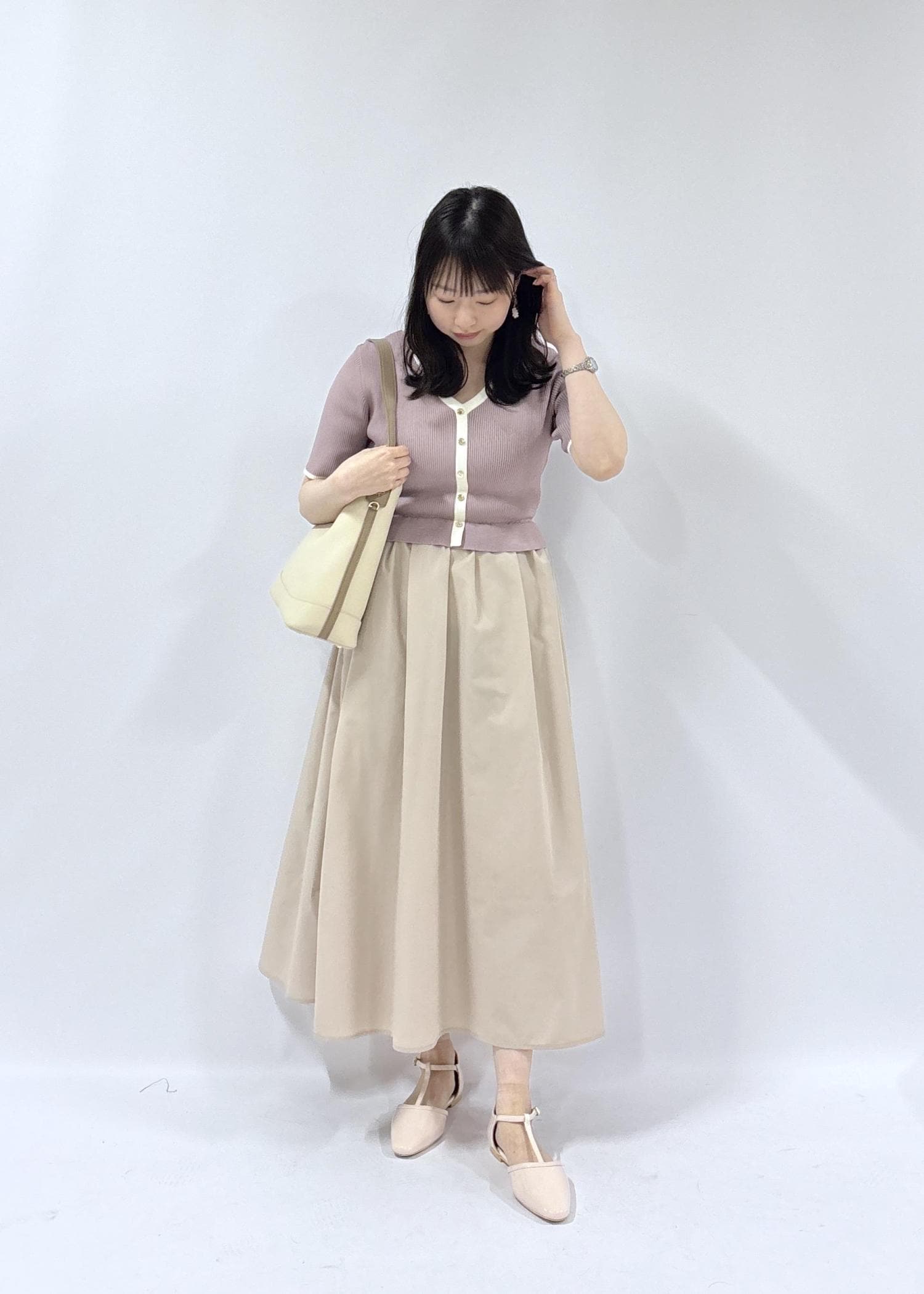 ウエストはゴムなので着心地が良く、ドッキングですがウエスト位置で止まるため低身長さんでも着やすいアイテムです。