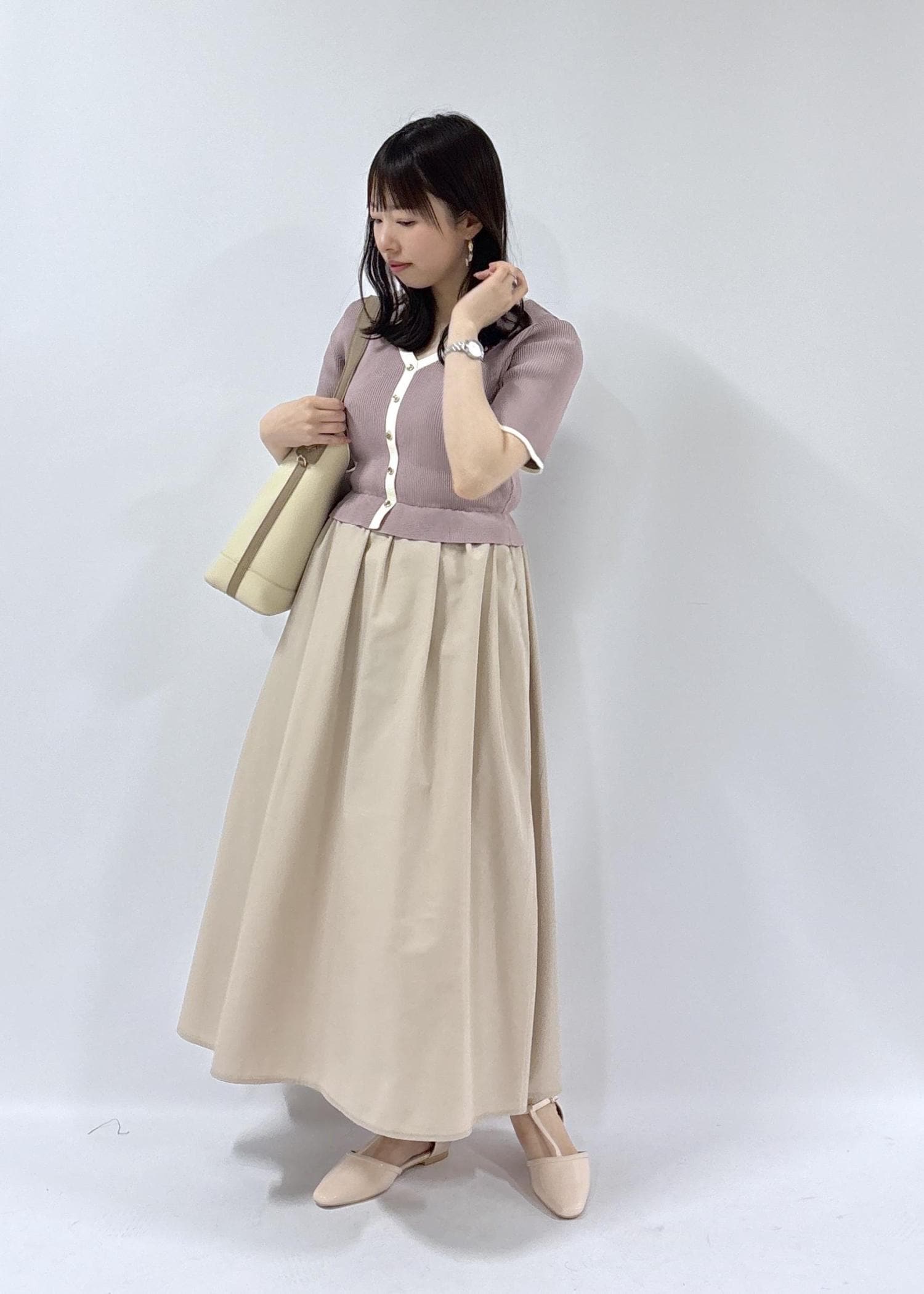 ROPÉ PICNICメタル釦布帛ドッキングハーフスリーブニットワンピースピンク / S¥7,491レビュー低身長さんでも着やすい丈感のワンピースです。
