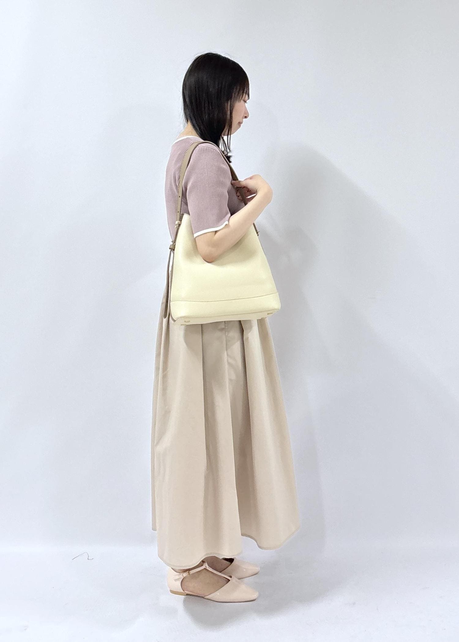 ニット部分はさらっとしており、夏でも着用しやすい素材感です。 -