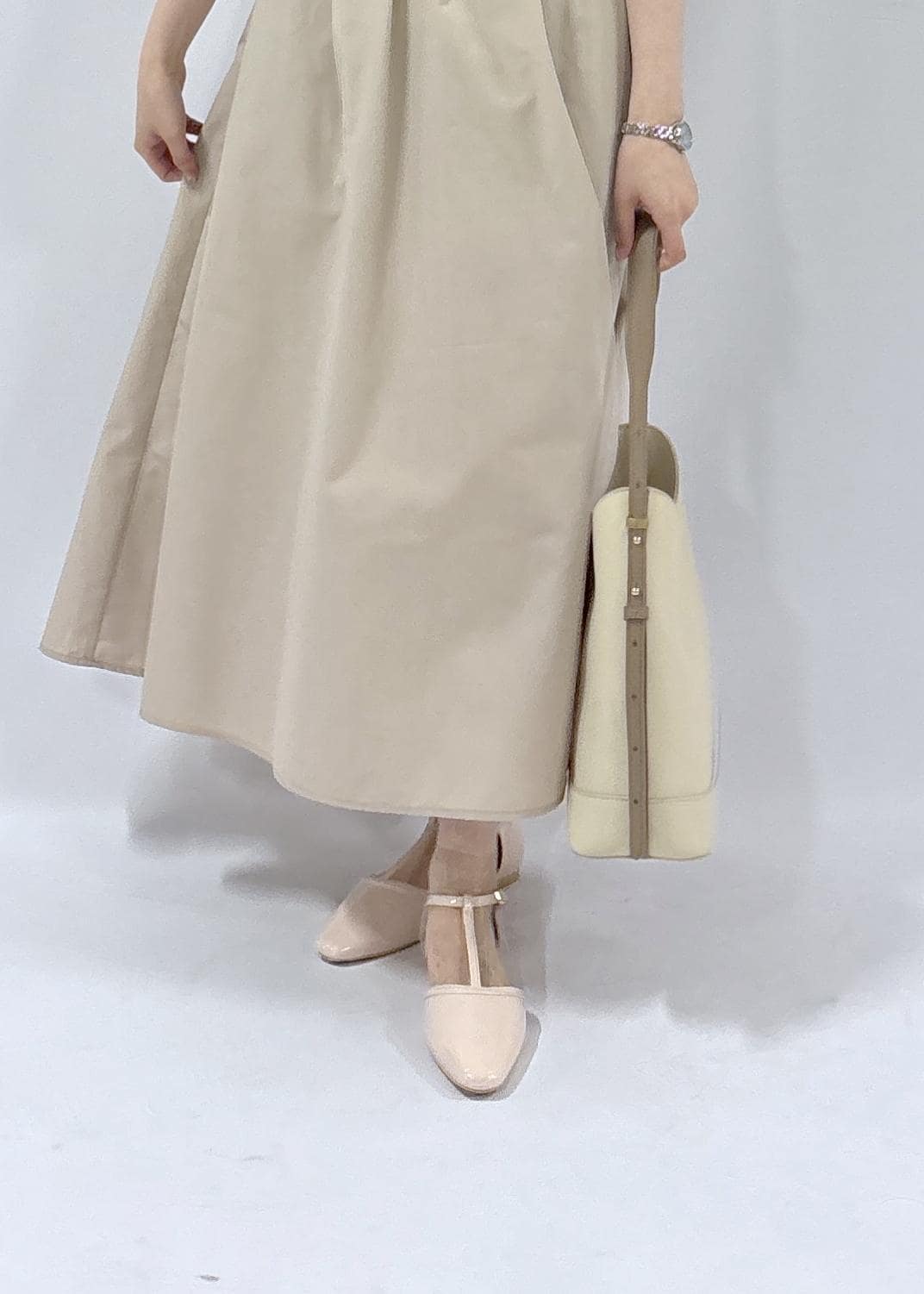 ピンクで可愛らしく甘めですが、くすみピンクで大人でも着やすいワンピースコーデ。