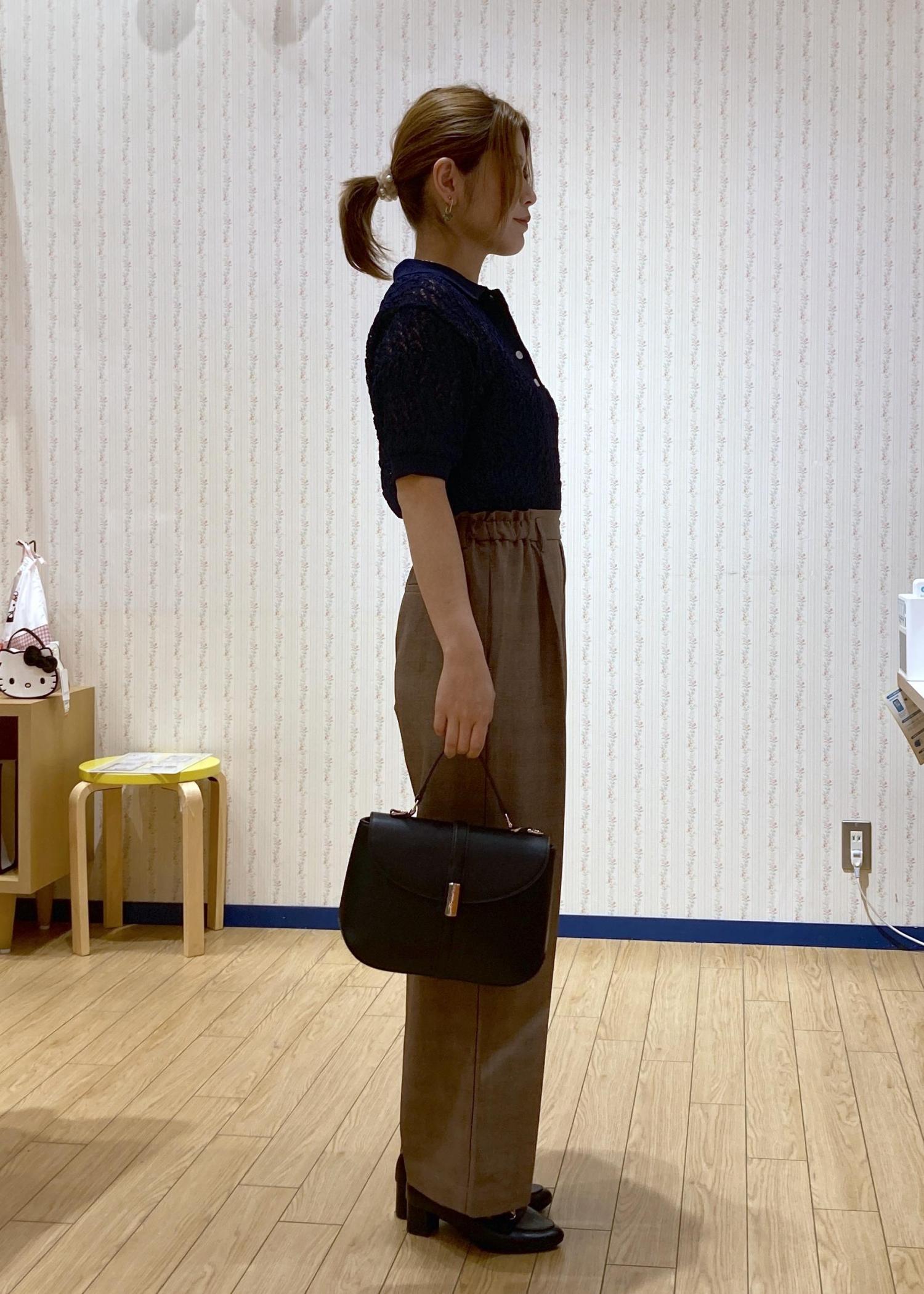 小物はブラックで統一してコーディネートを引き締めました。