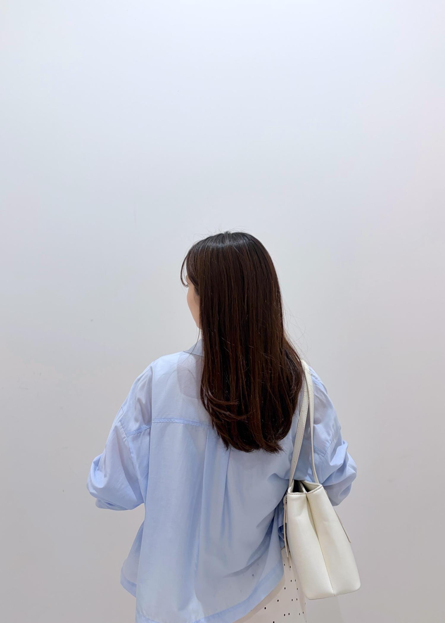 フロント部分が短めで、バッグが少し長めなデザインなので低身長の方でもバランスがとりやすく、後ろ姿も綺麗に見せてくれます。サラッとした着心地です。 -