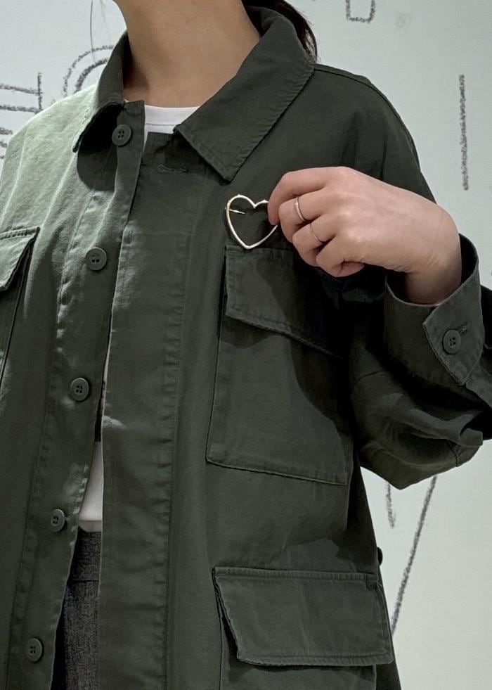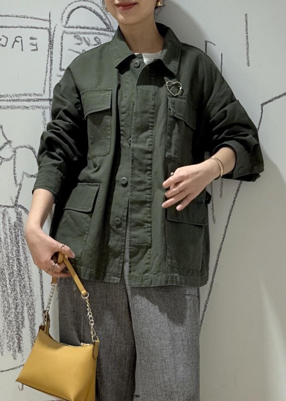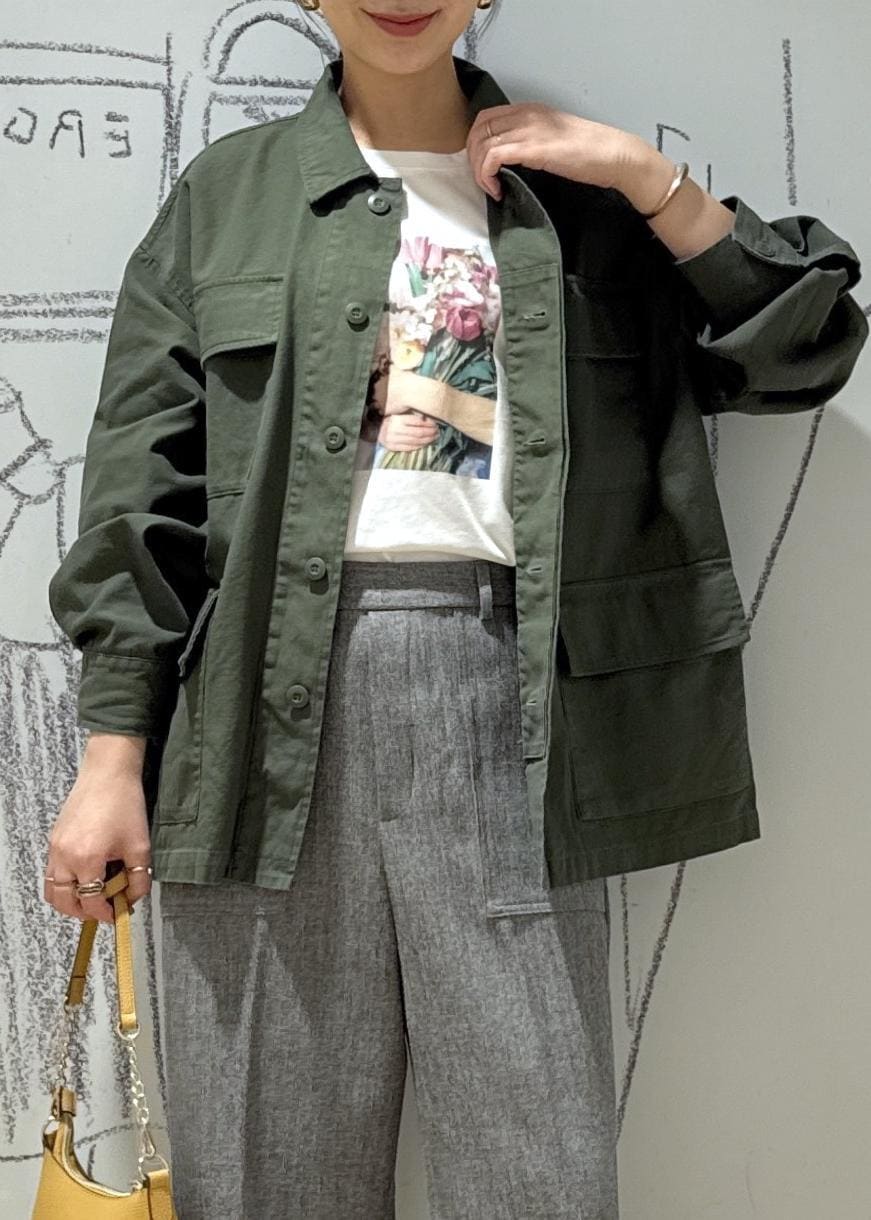 ROPÉ PICNICミリタリーブルゾンカーキ / F¥8,492レビューシャツとジャケットの間くらいの生地感。春、秋だけではなく梅雨時期にもちょうどいい羽織りです。コシと柔らかさの両方を感じられ、動きやすいです。袖丈は指に掛かる長さ、着丈はお尻に掛かる長さです。