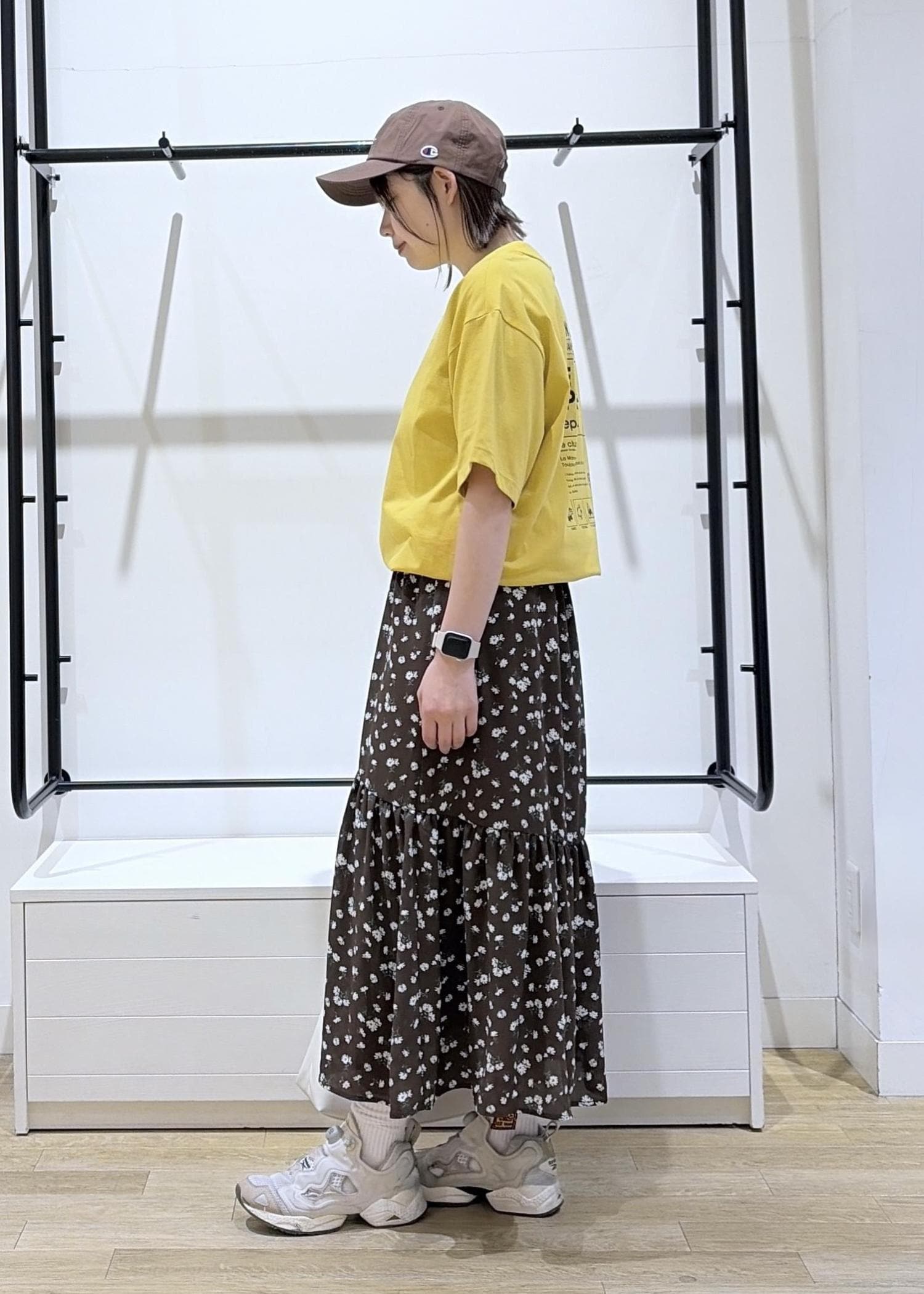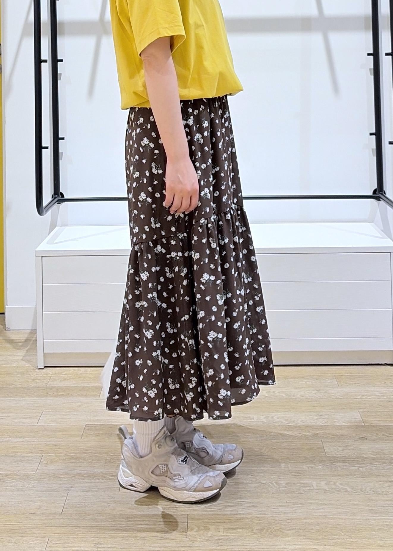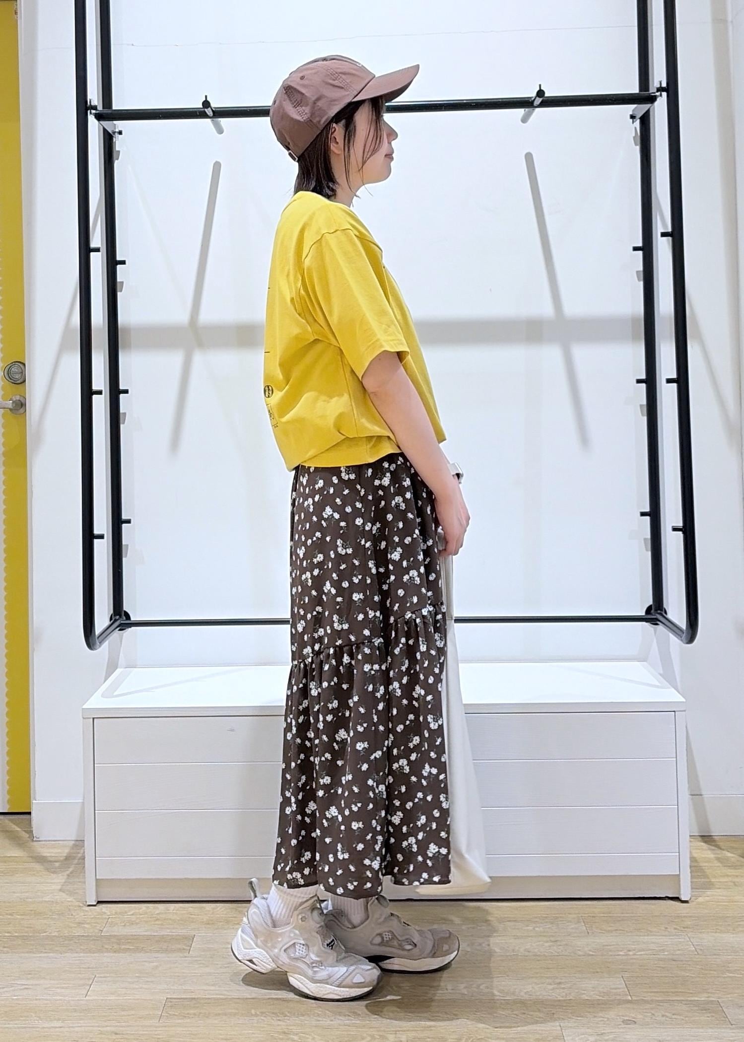 今回は、ゆったり半袖Tシャツと可愛い小花柄ティアードワンピースで大人かわいいカジュアルコーデを組みました♩