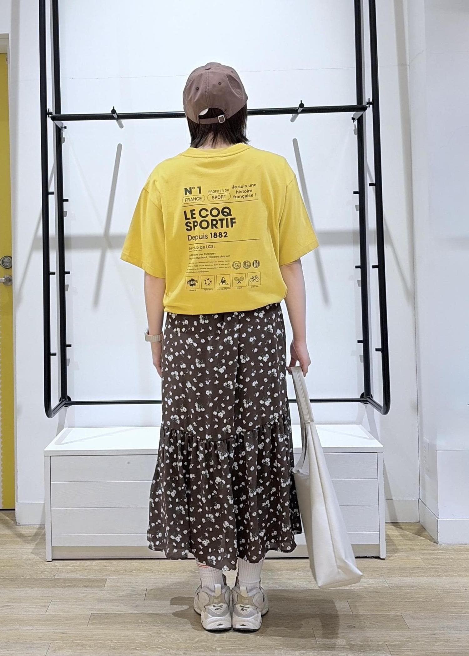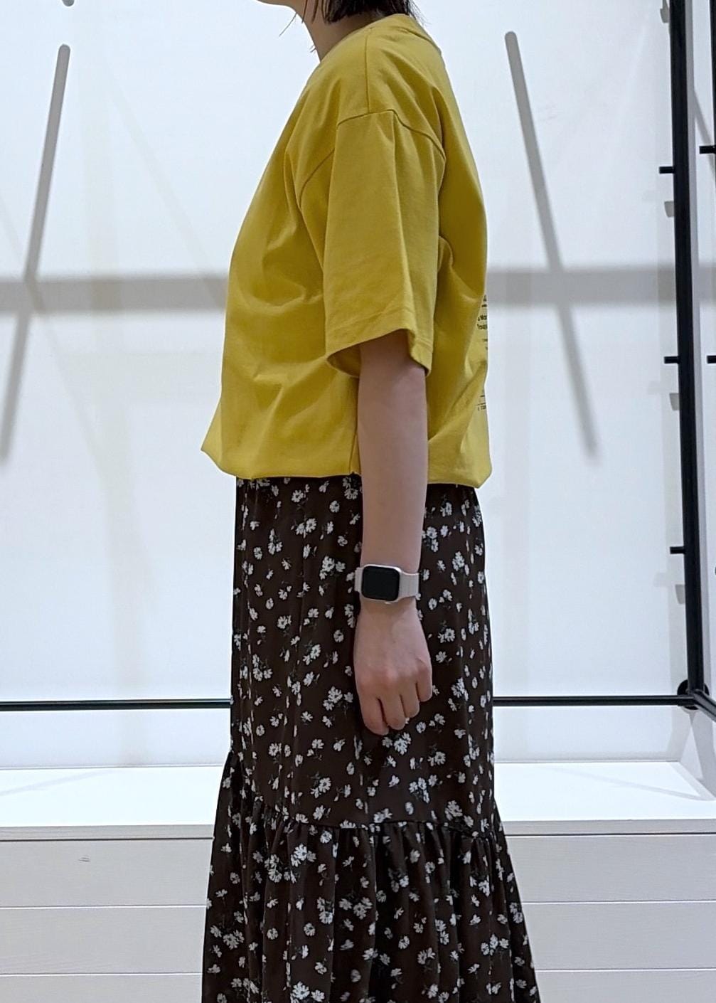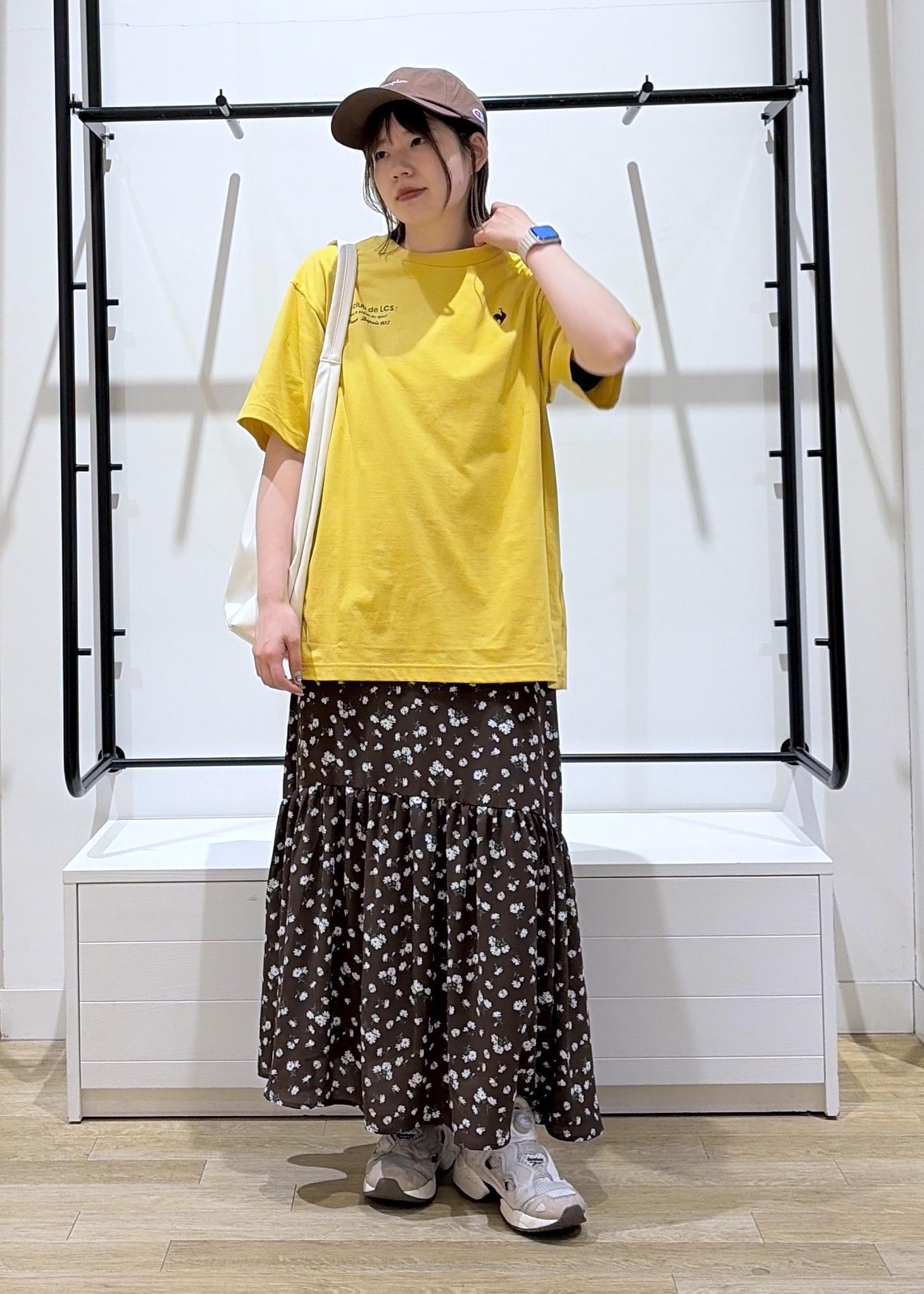 今回は、ゆったり半袖Tシャツと可愛い小花柄ティアードワンピースで大人かわいいカジュアルコーデを組みました♩