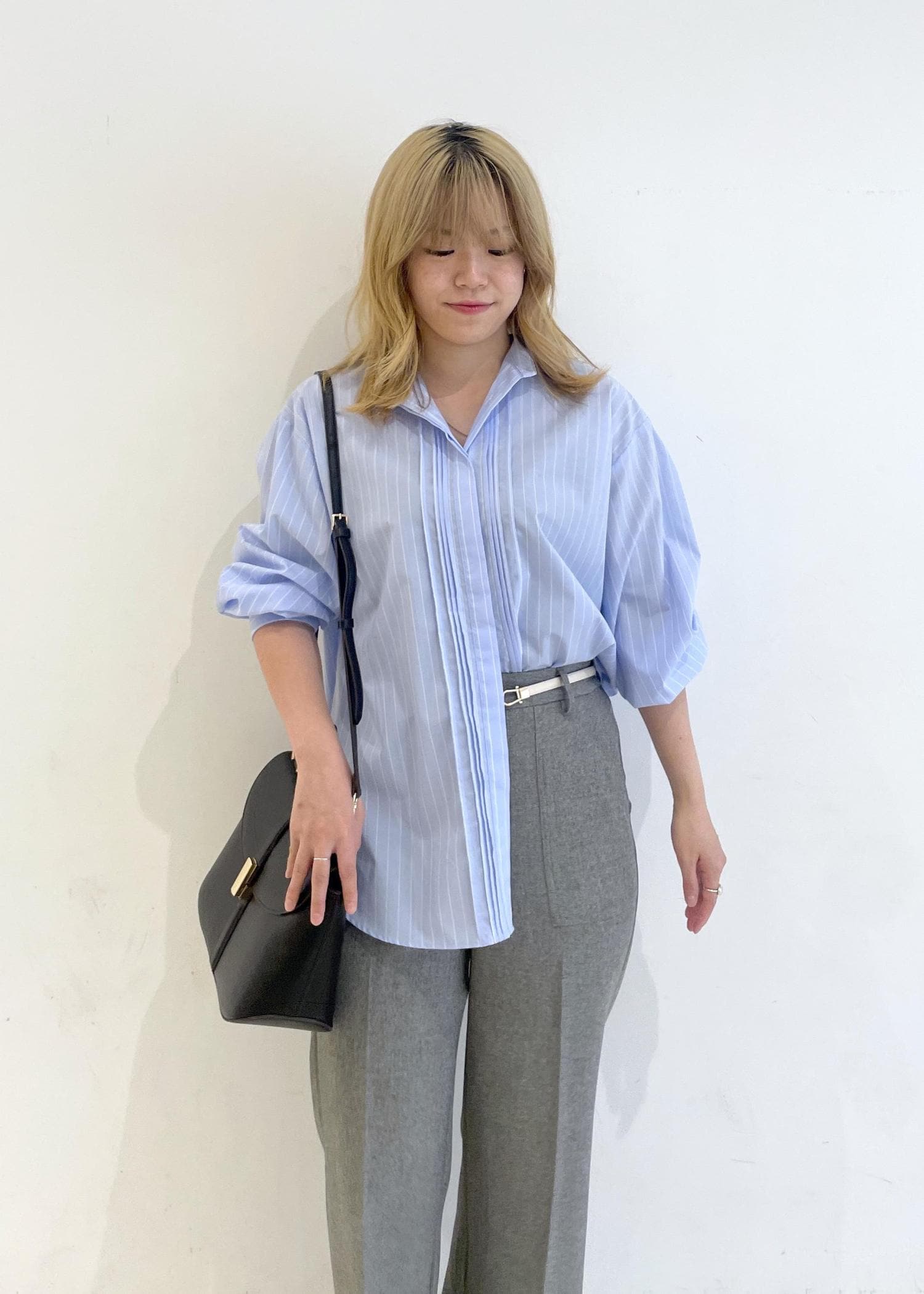 ゆったりシャツなので首元はボタンを開けてスッキリさせました!