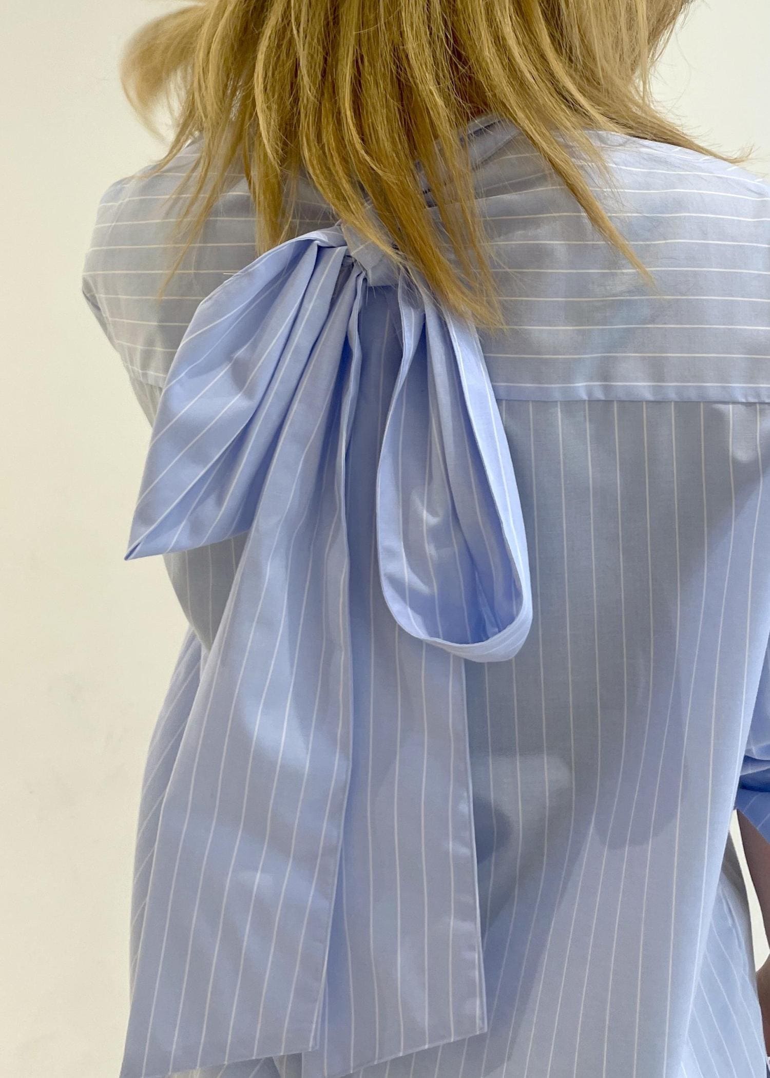リボンがポイントになり、外すこともできるので、シンプルなシャツとしても使えます◎
