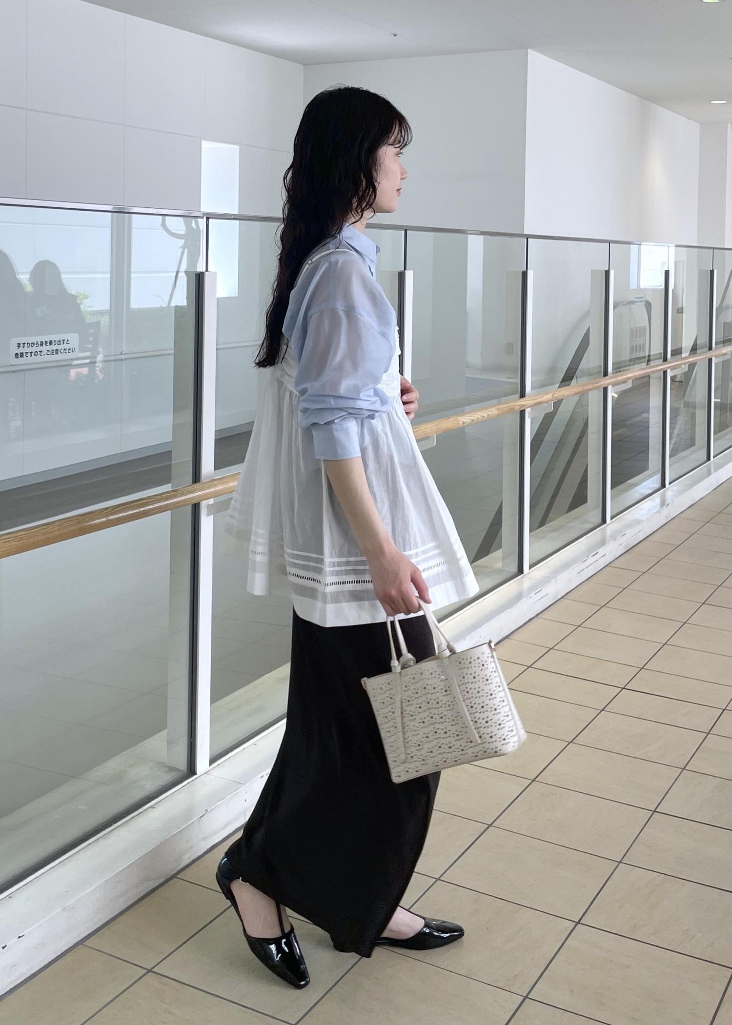 ROPÉ PICNICカールマイヤーシアーシャツサックス / F¥5,489レビュー着丈スッキリなので、ワンピースやオールインワンの