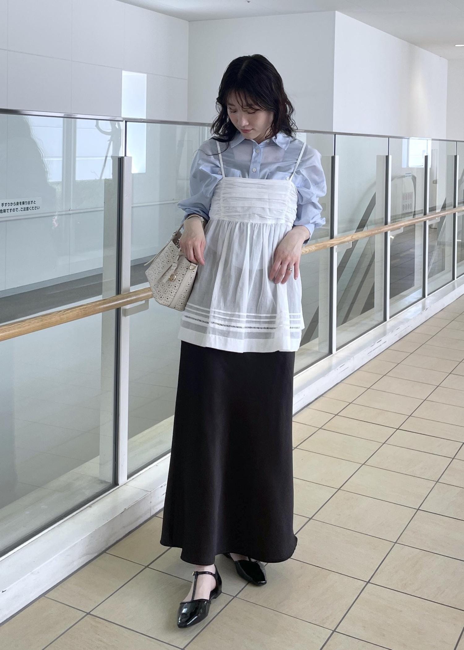 ROPÉ PICNIC細見えバイアスサテンスカート/イージーケアダークブラウン / F¥6,490レビューウエスト総ゴムで履き心地◎