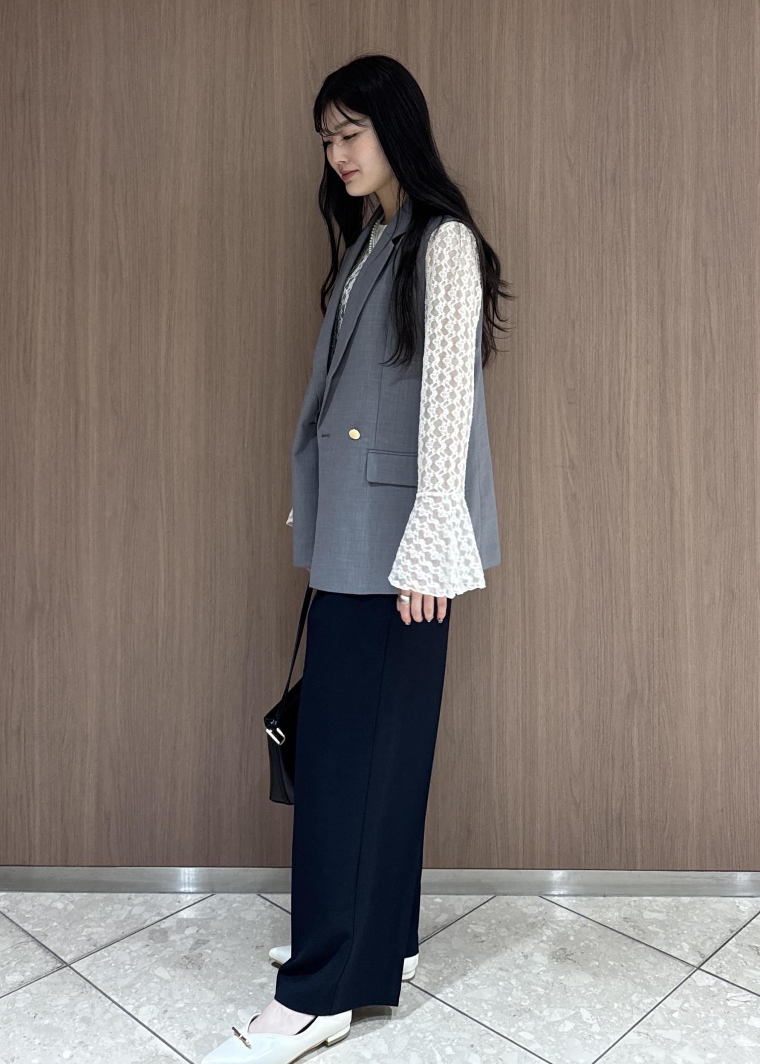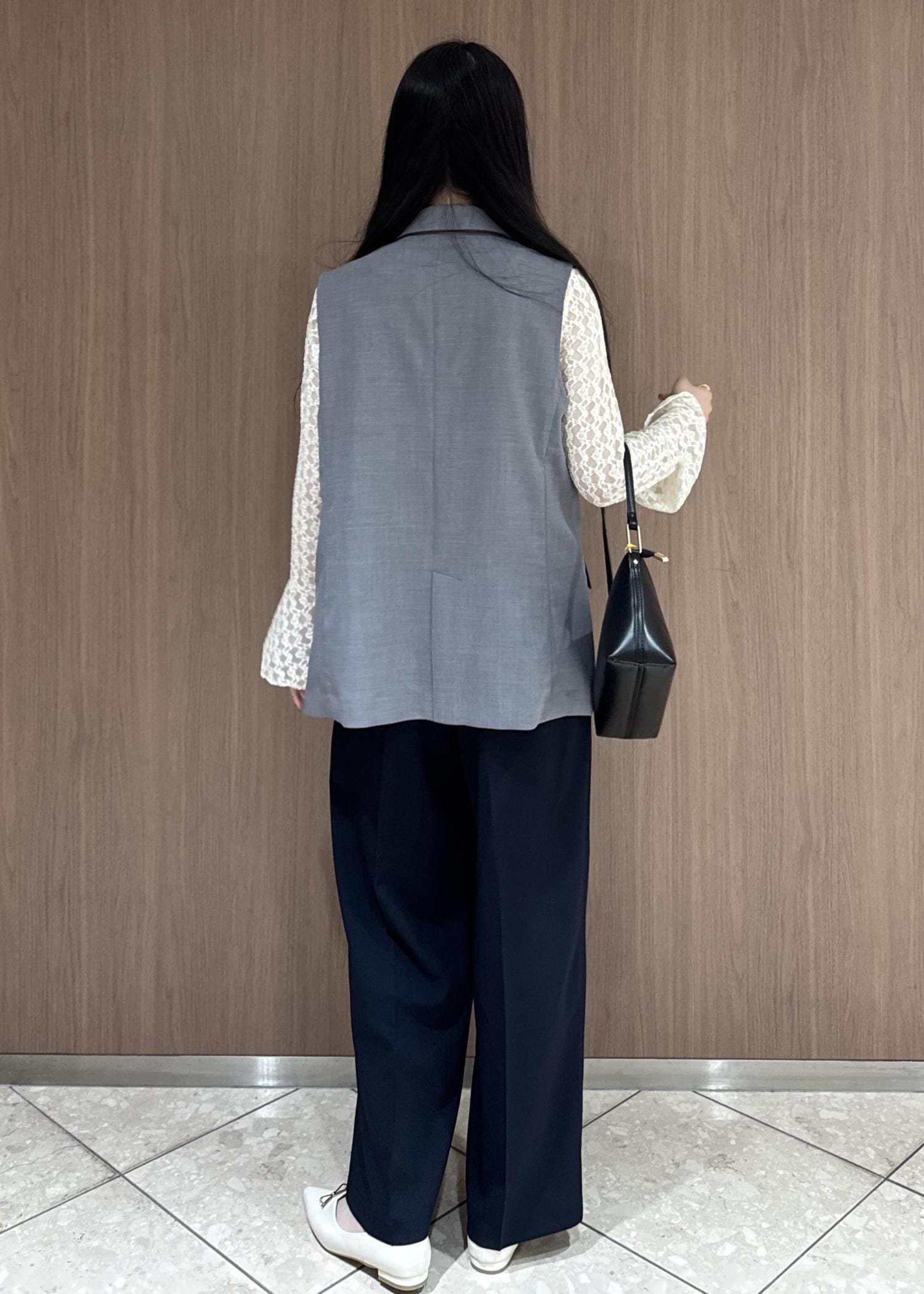 パンツとセットアップ対応ですが、色味を変えるとカジュアルぽく仕上がりおすすめです。
