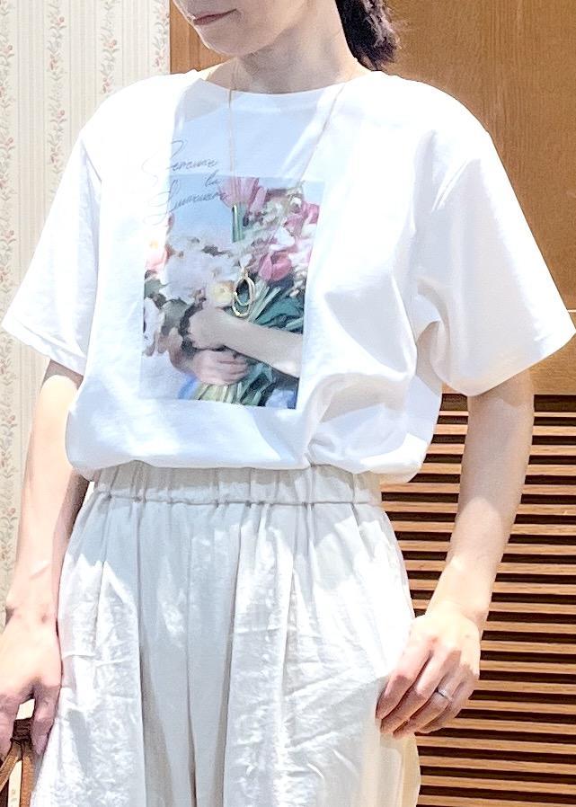 ROPÉ PICNICRENUロゴ&フォトアソートプリントTシャツ/UVカット・接触冷感・イージーケアホワイト系 / F¥3,993レビュー全体的にゆとりのあるサイズ感で、袖は肘にかかるくらいの長さです。