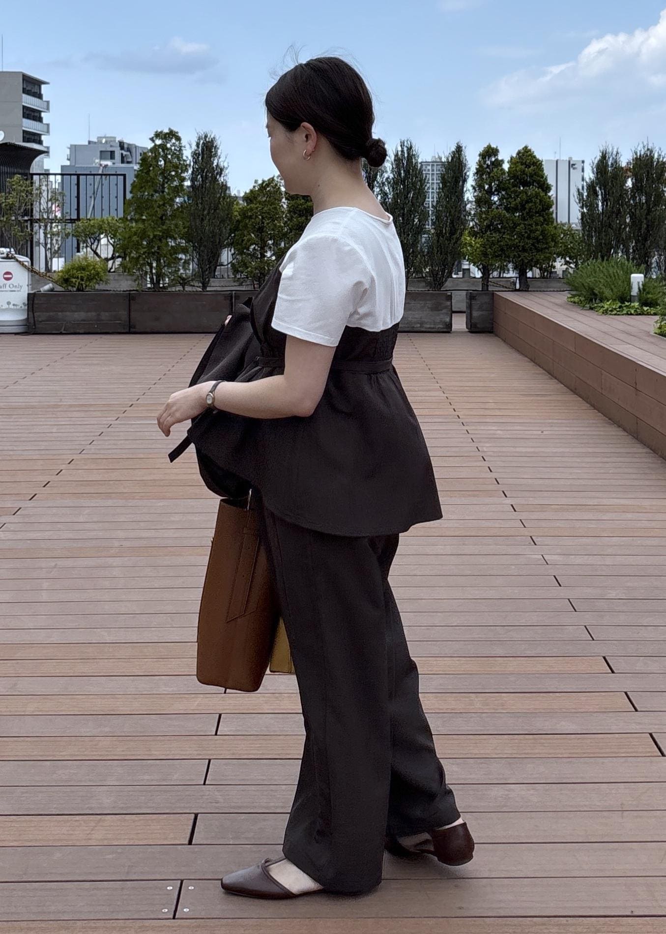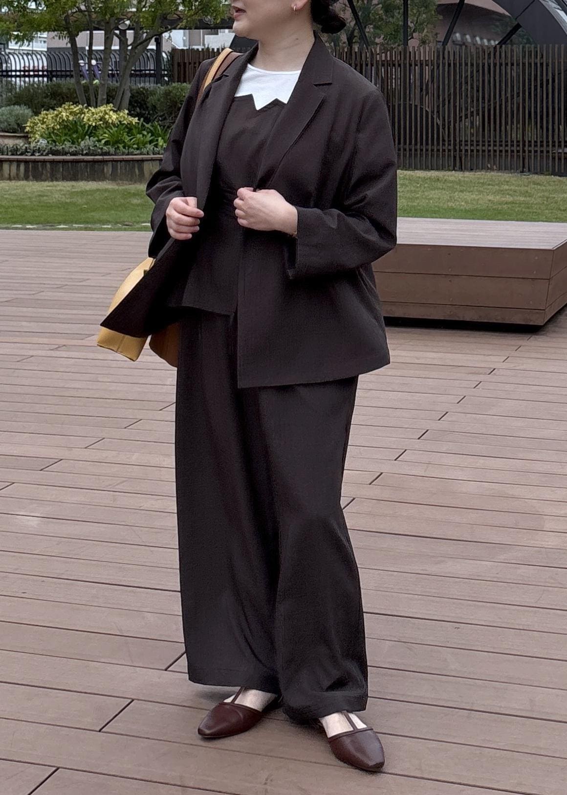 NEW! 予約ROPÉ PICNIC【cahoさんコラボ】低身長・小柄さんサイズ エアリーリネンライク タックワイドパンツダークブラウン / M¥5,995レビュー後ろゴムになっているので可動域があり着用しやすかったです。