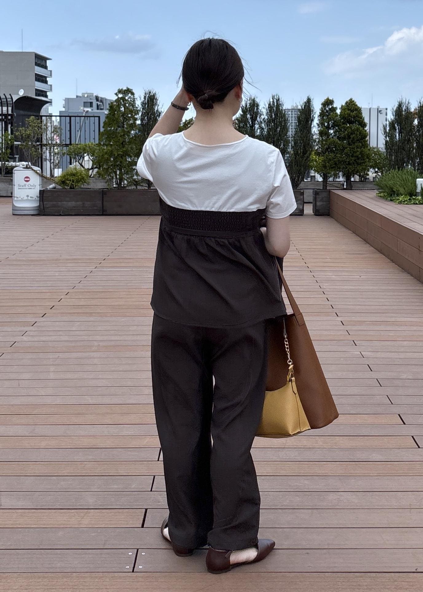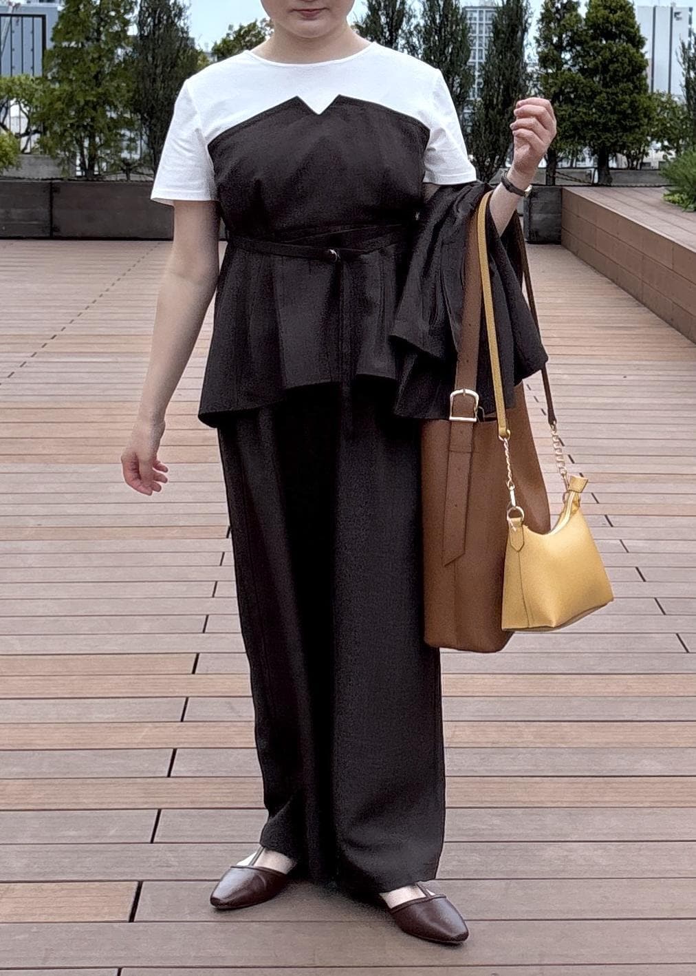 NEW! 予約ROPÉ PICNIC【cahoさんコラボ】低身長・小柄さんサイズ エアリーリネンライク ドッキングカットトップスダークブラウン / F¥5,489レビューウェストの切り替え位置もちょうど良く着用できました◎