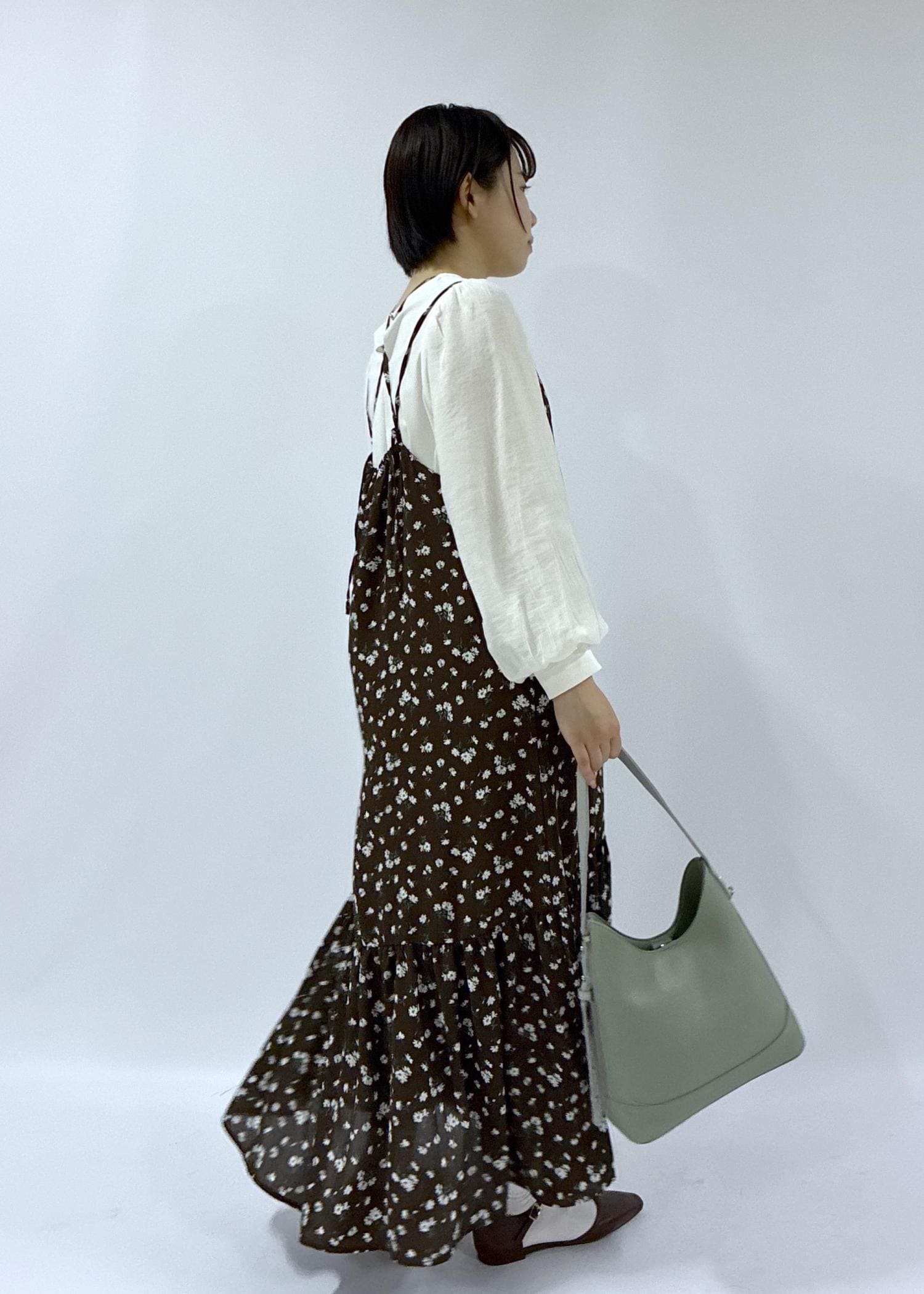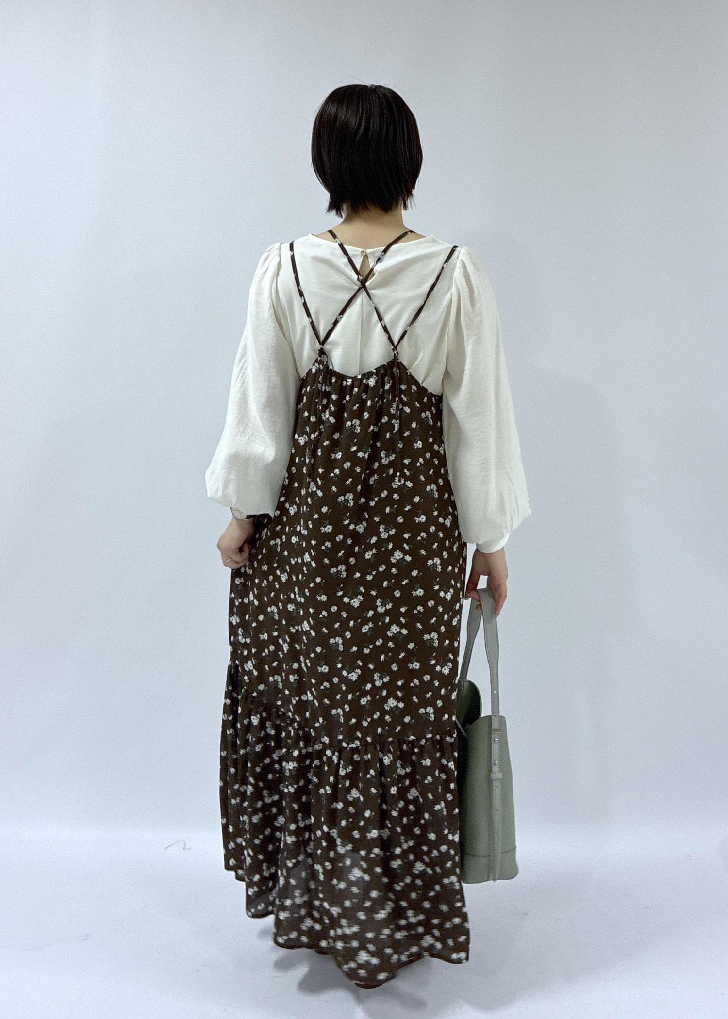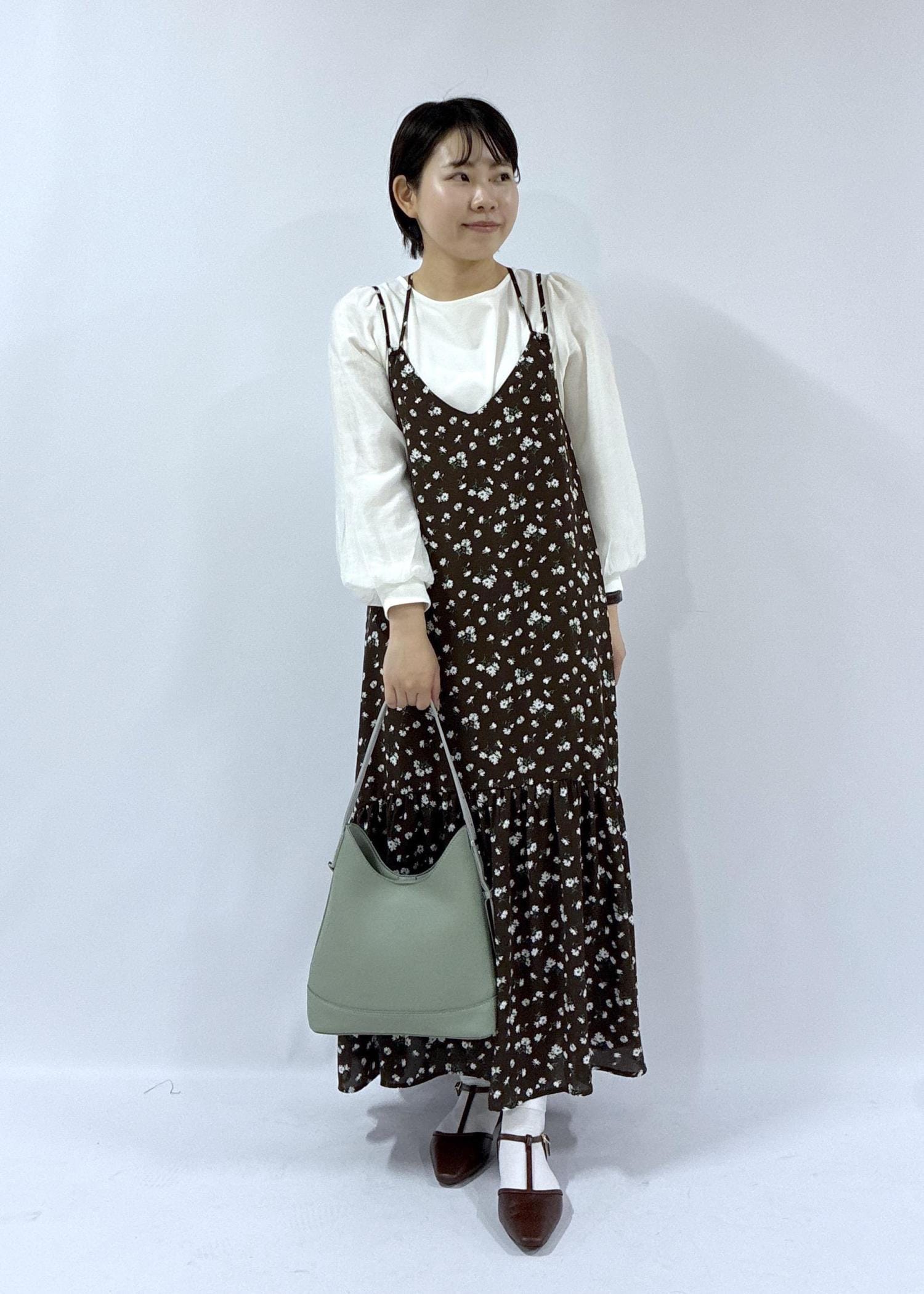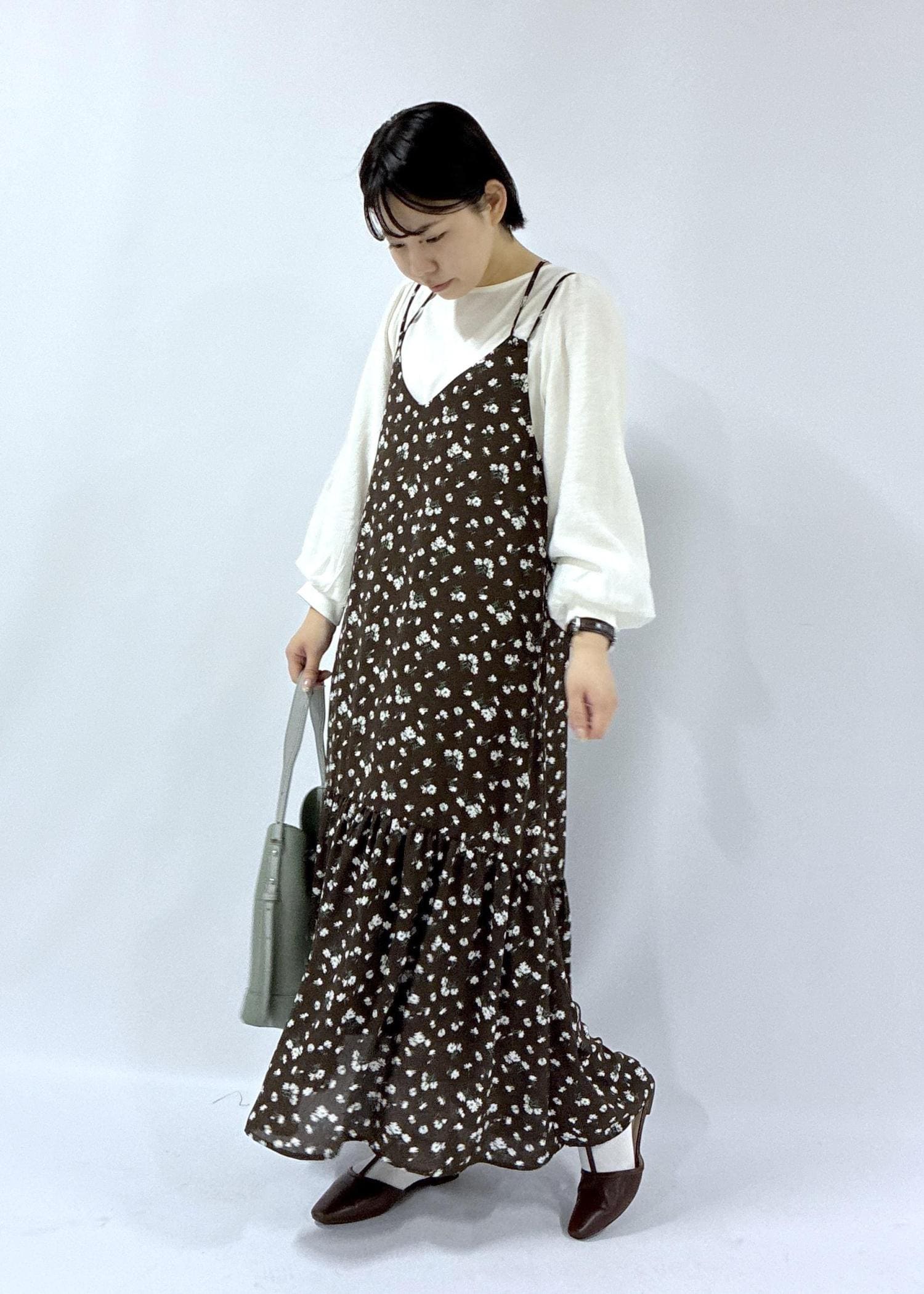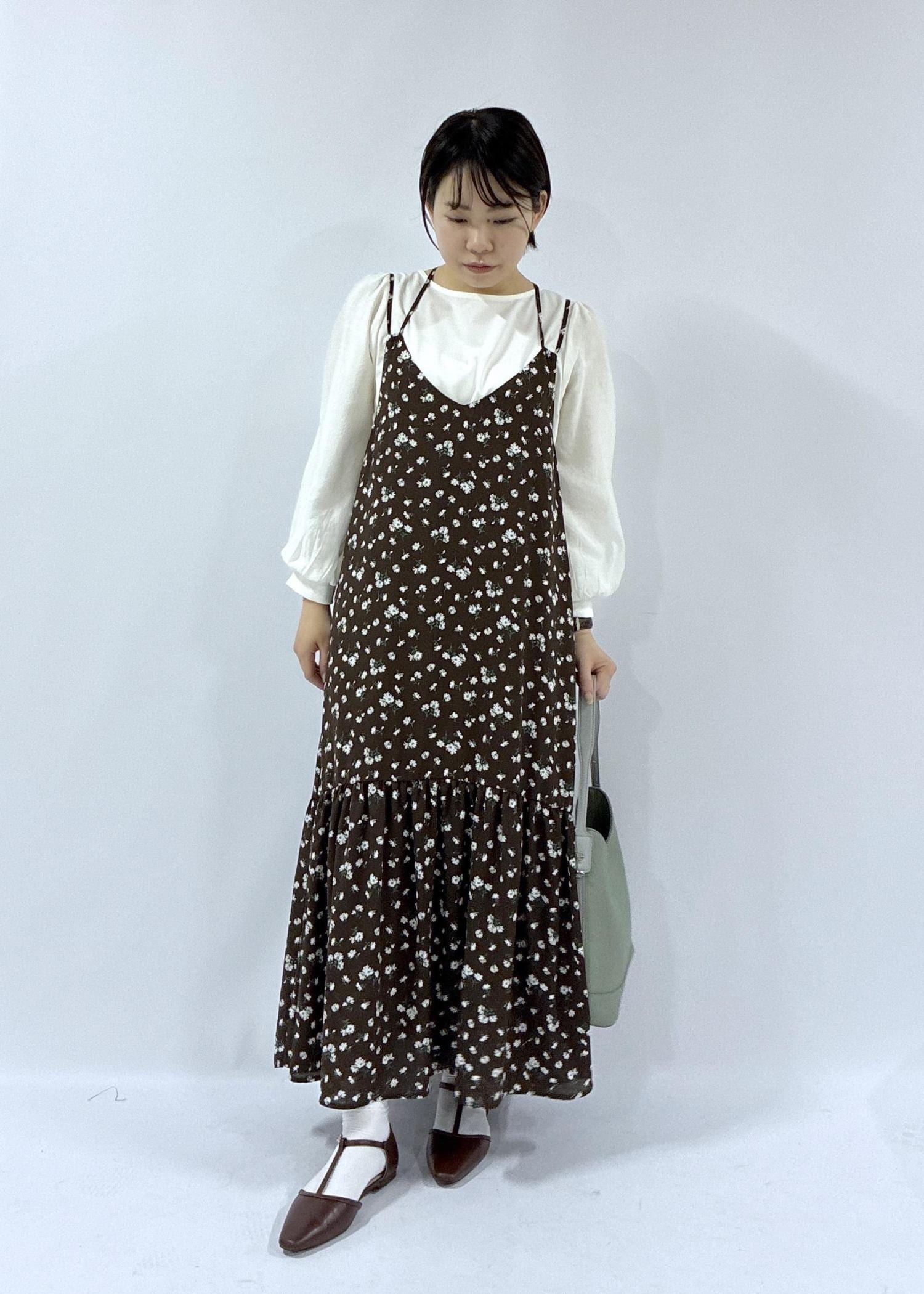 ROPÉ PICNIC花柄ティアードダブルストラップキャミワンピースブラウン / F¥6,490レビュー広がりすぎないギャザーでシルエットが素敵な一枚です♪
