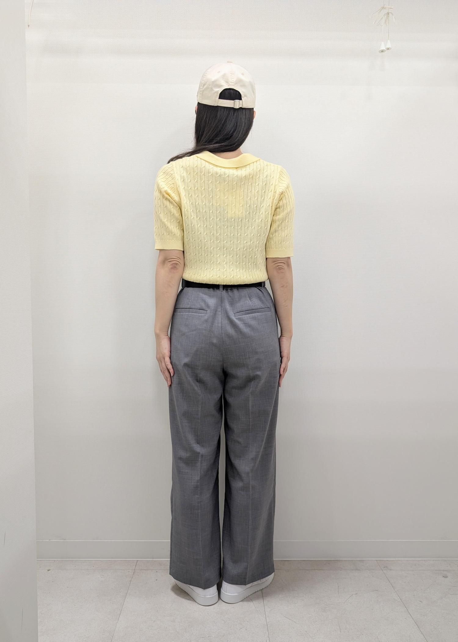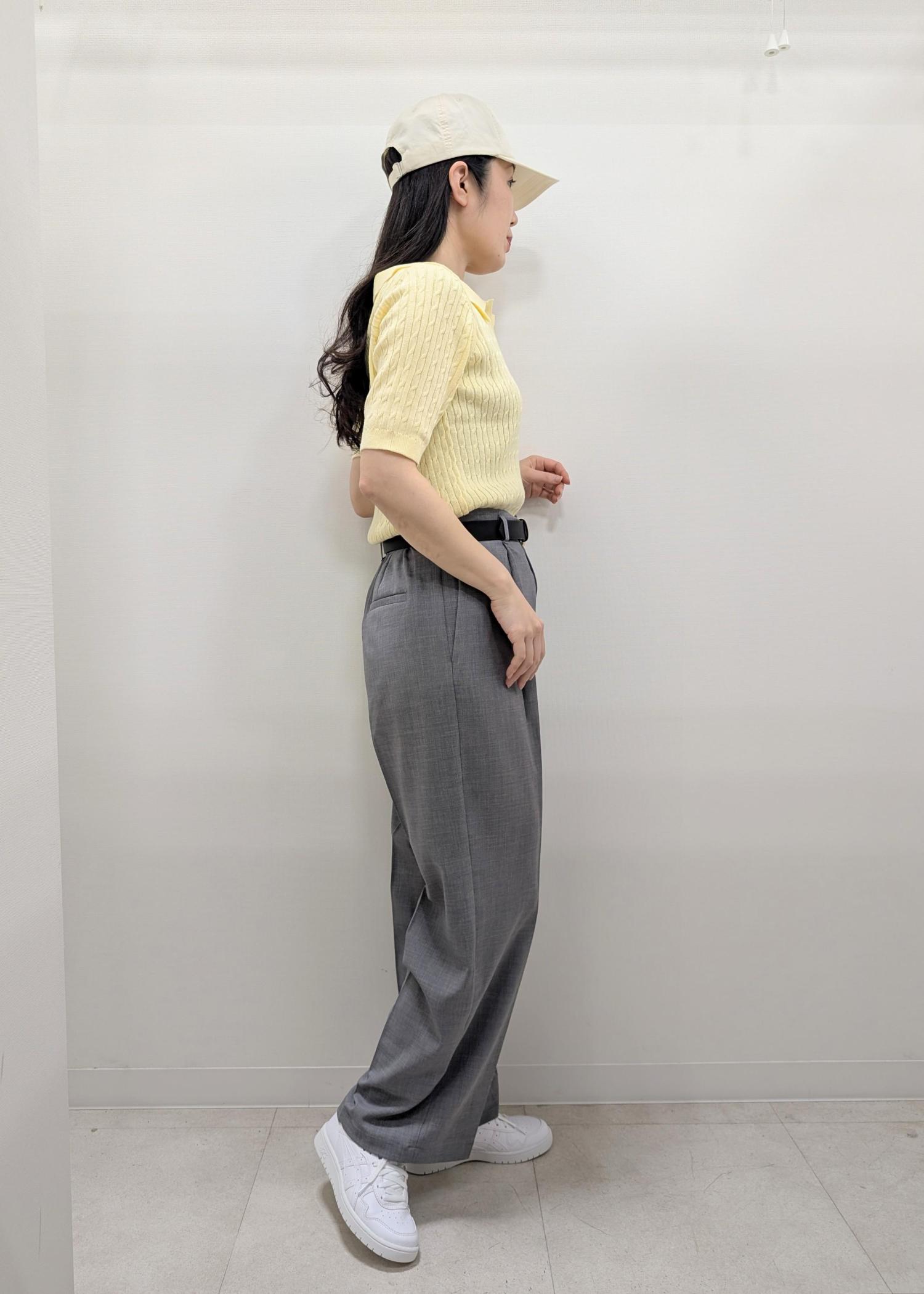 トップスがコンパクトなのでボトムはワイドパンツを合わせました。