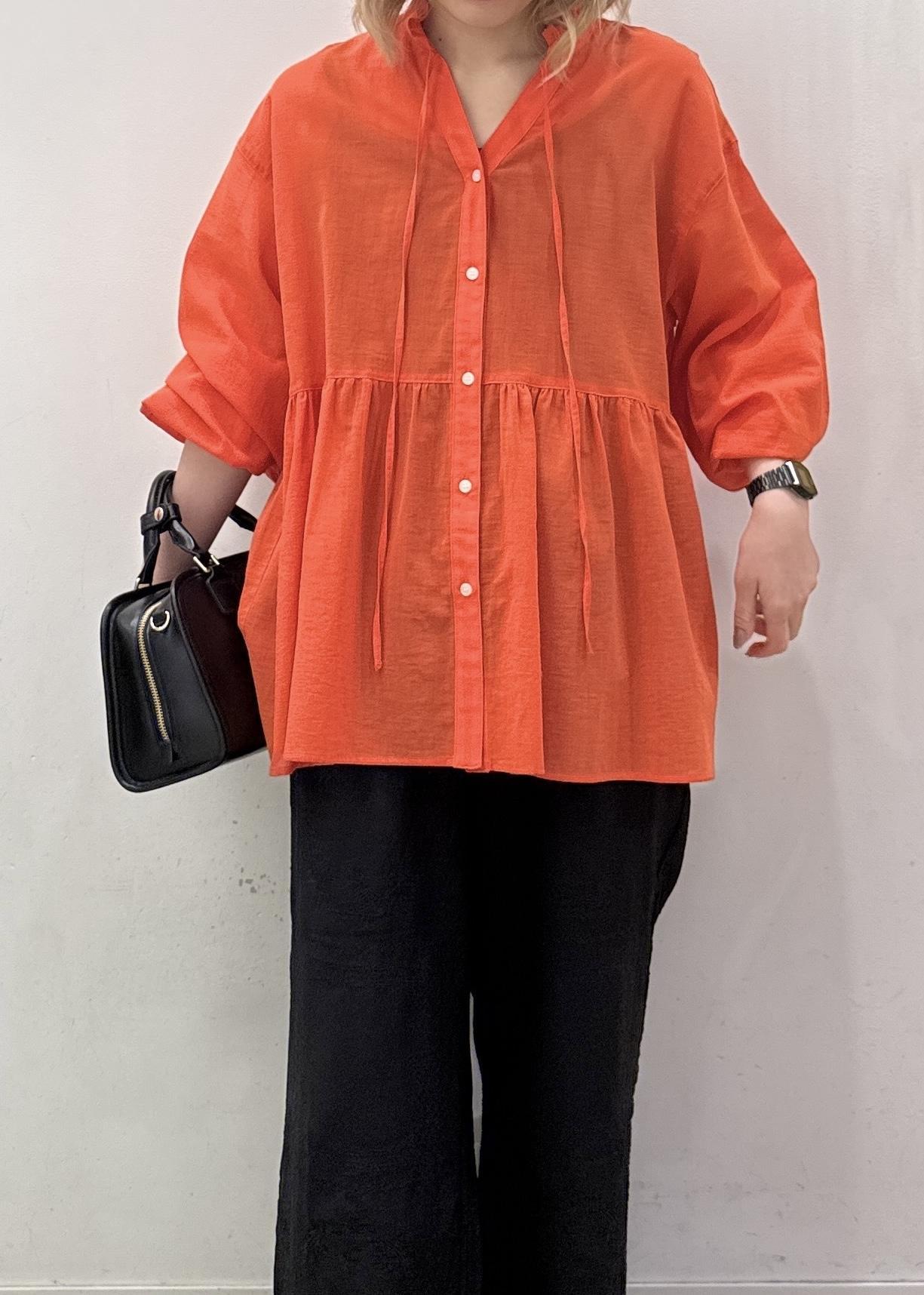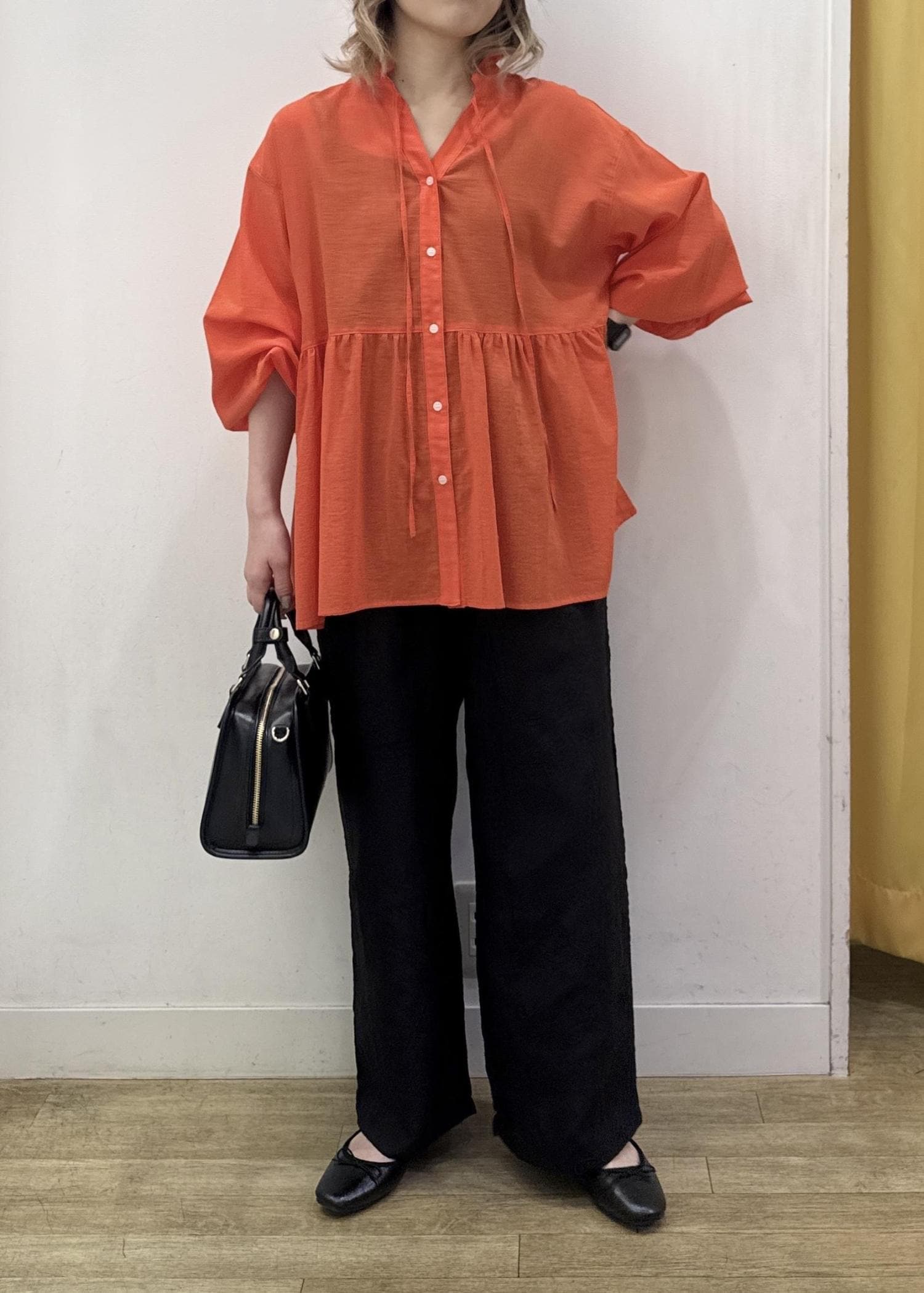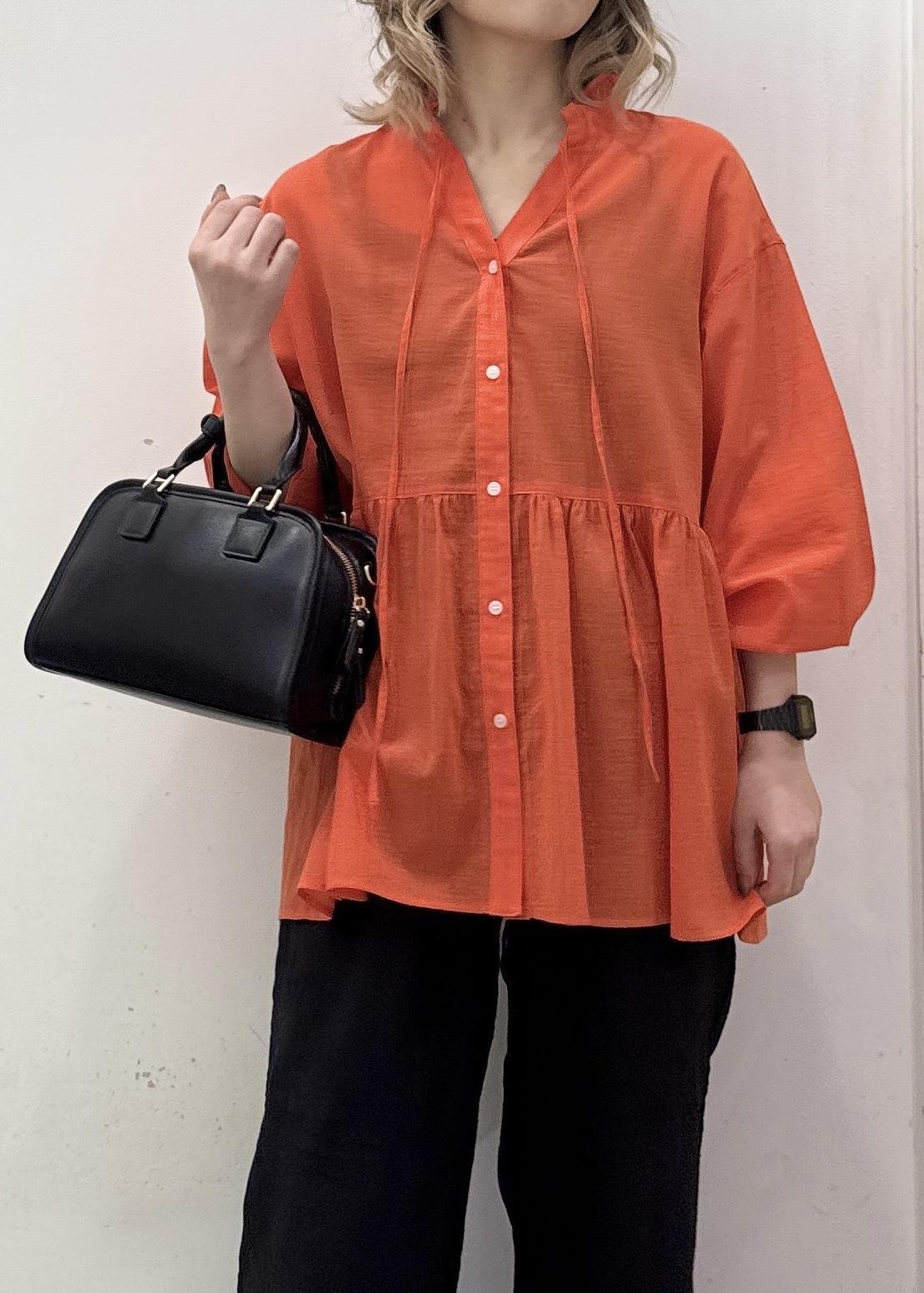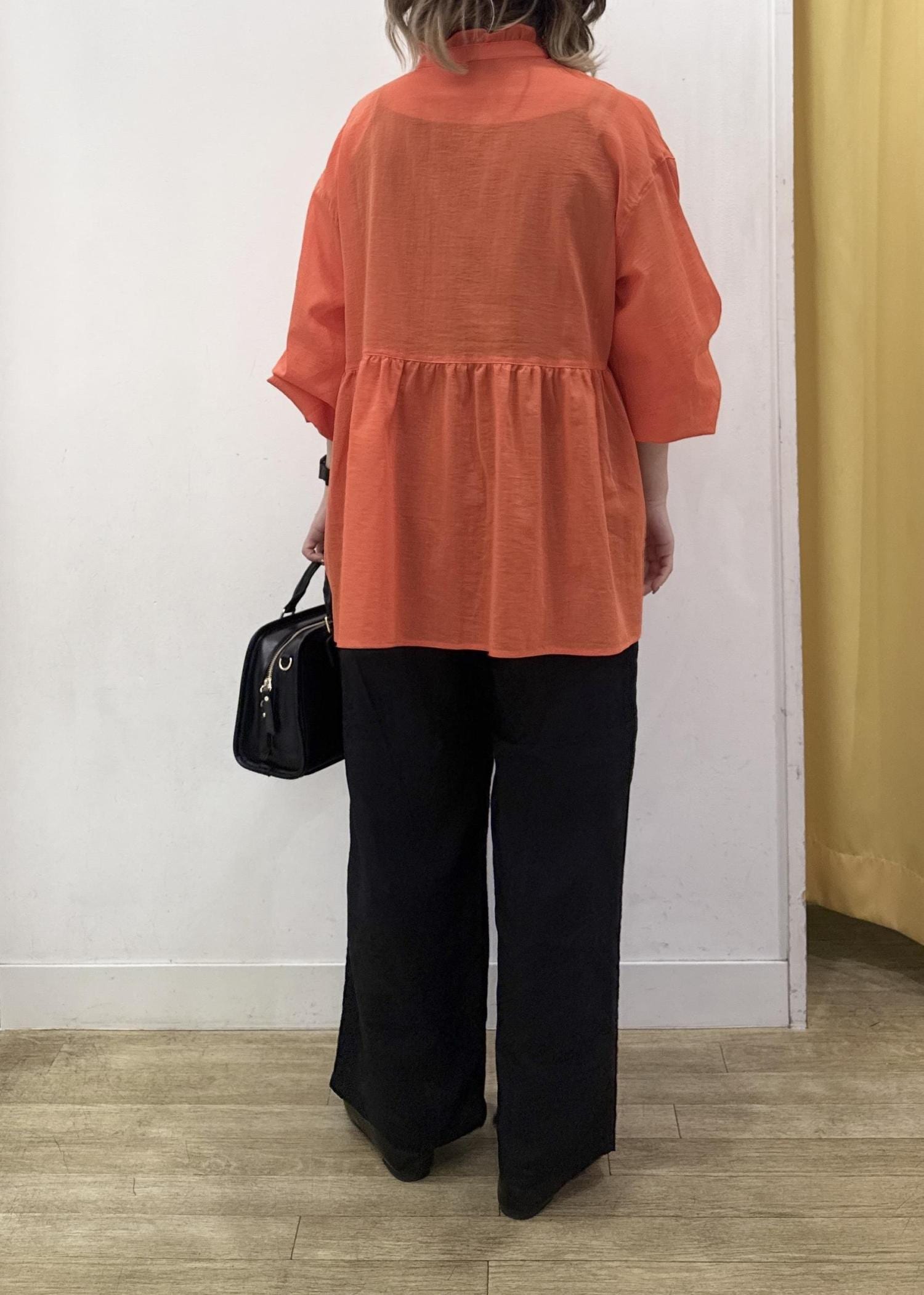 ROPÉ PICNICお着軽シャツシリーズ フリルカラーシアーペプラムブラウス/接触冷感・通気性オレンジ / F¥4,994レビューゆったりとしたサイズ感でラクに着られました。