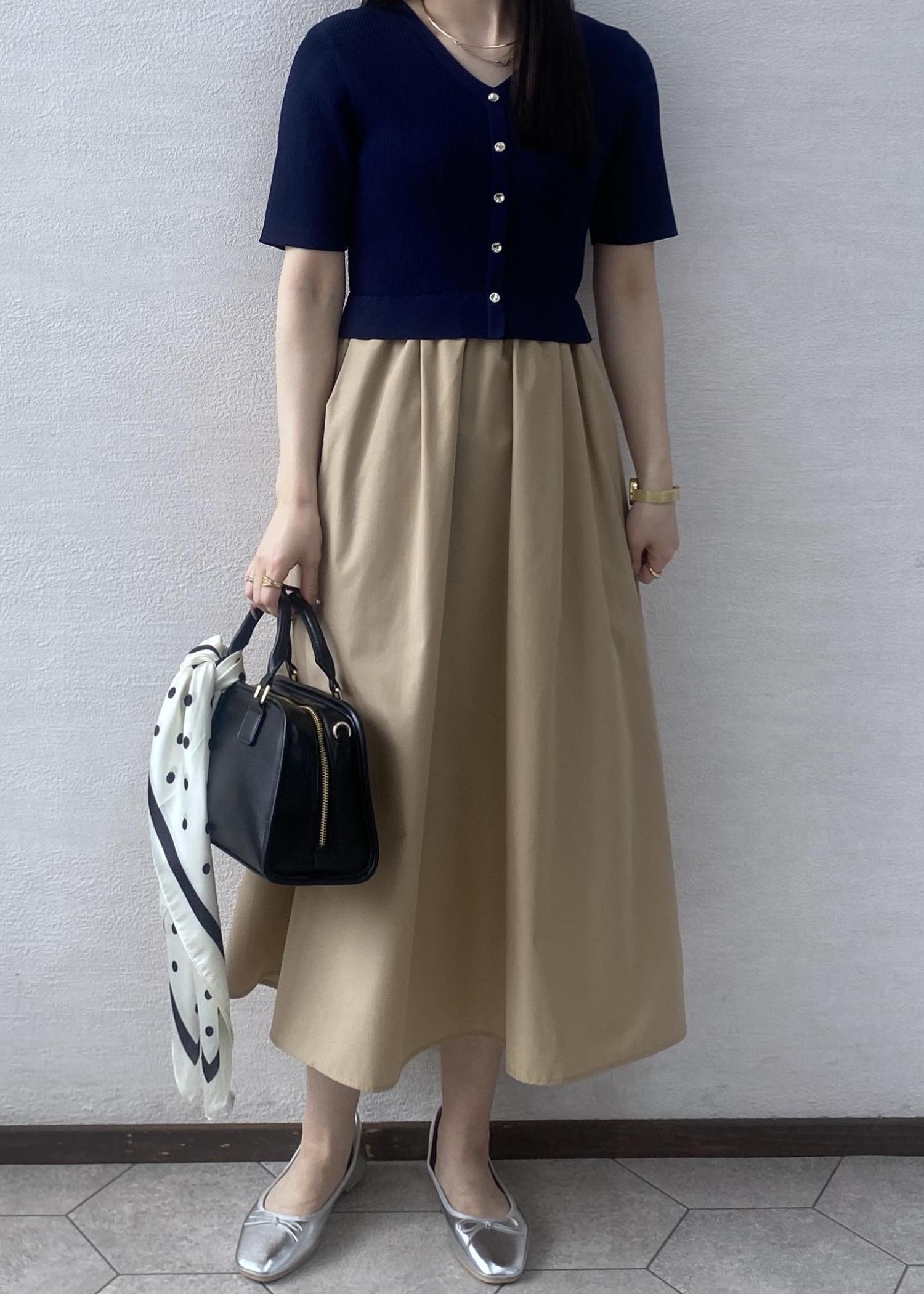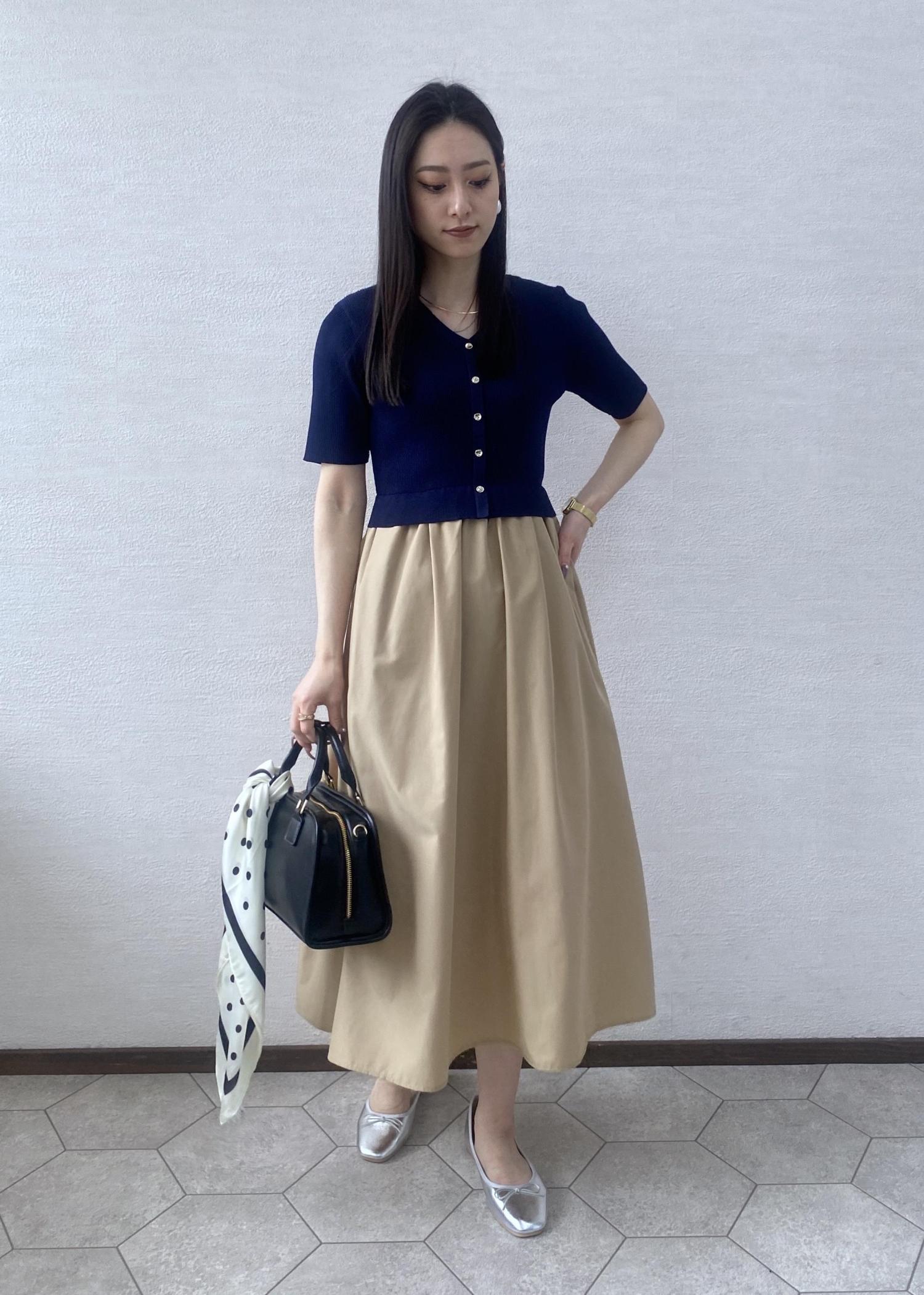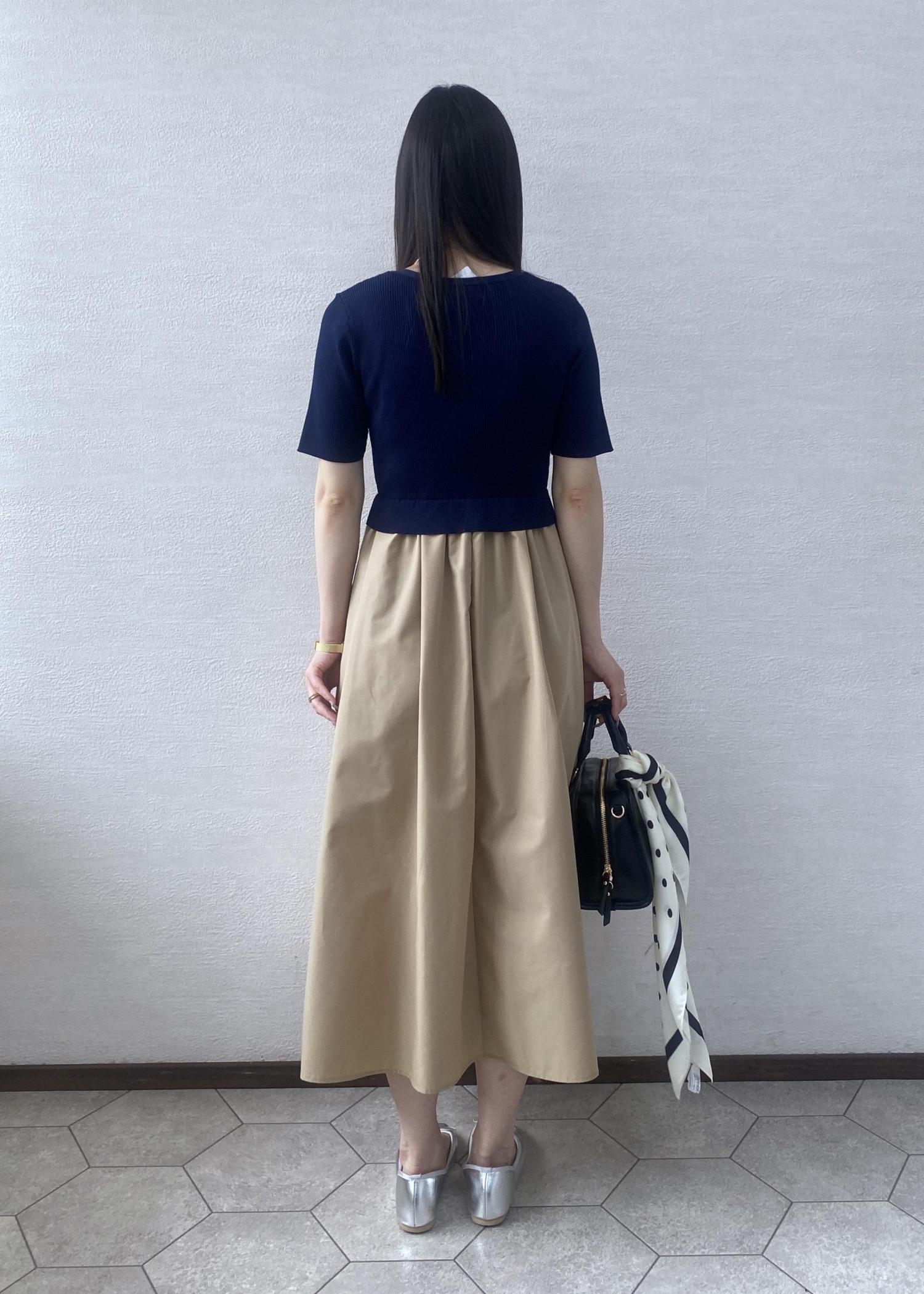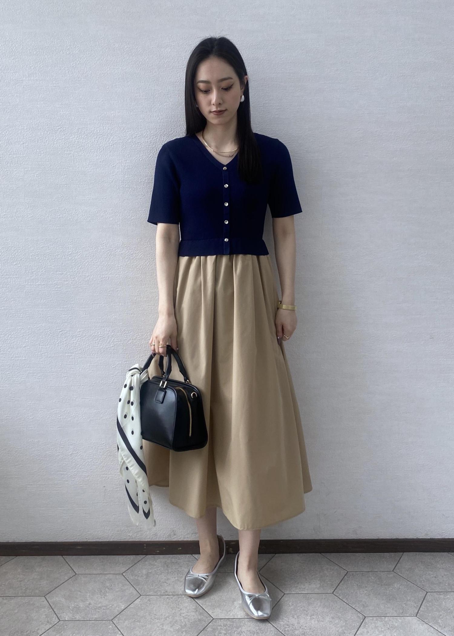 ROPÉ PICNICメタル釦布帛ドッキングハーフスリーブニットワンピースネイビー / S¥7,491レビューリブニットの部分はドライタッチでスカート部分はハリ感のある素材感です。
