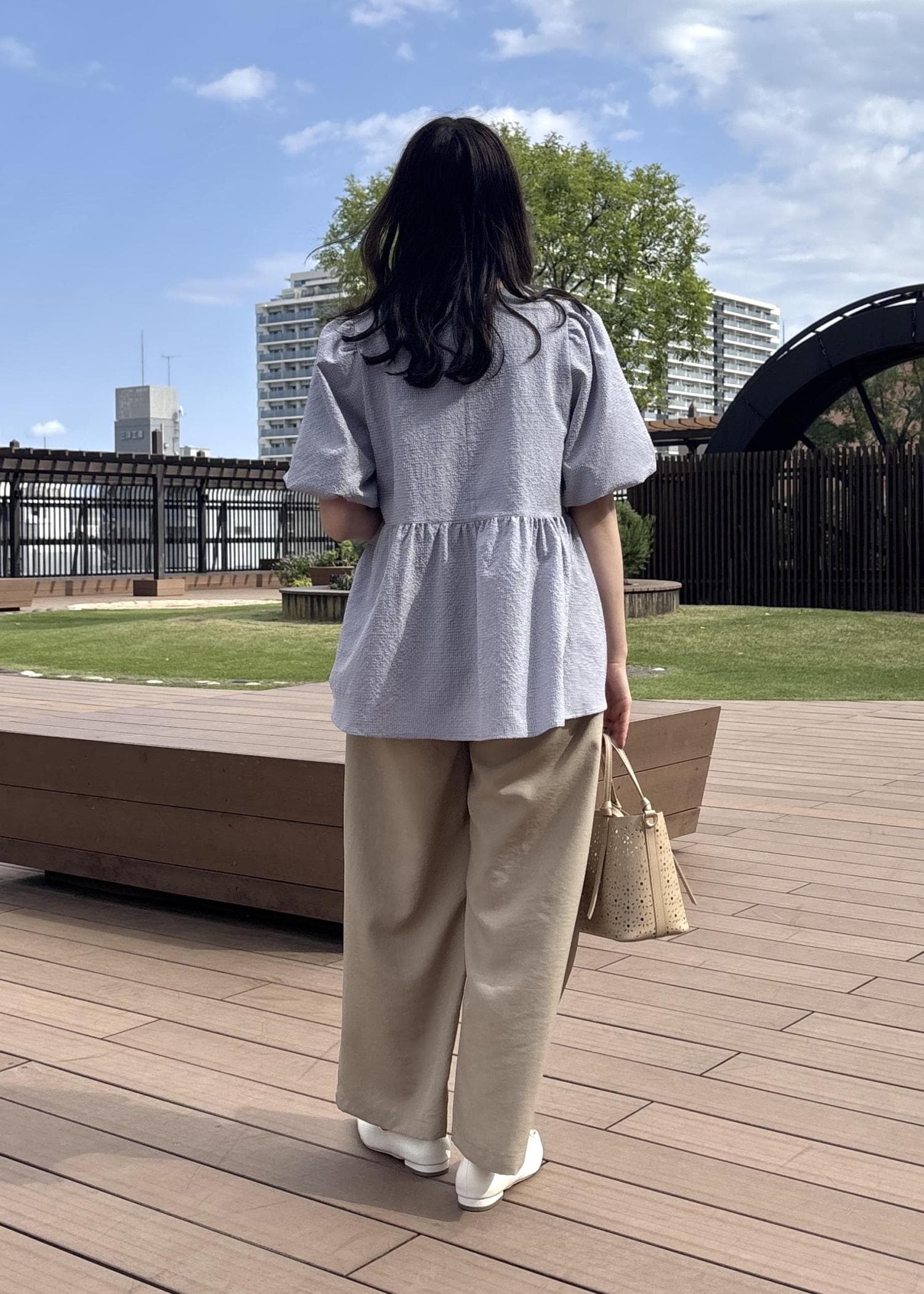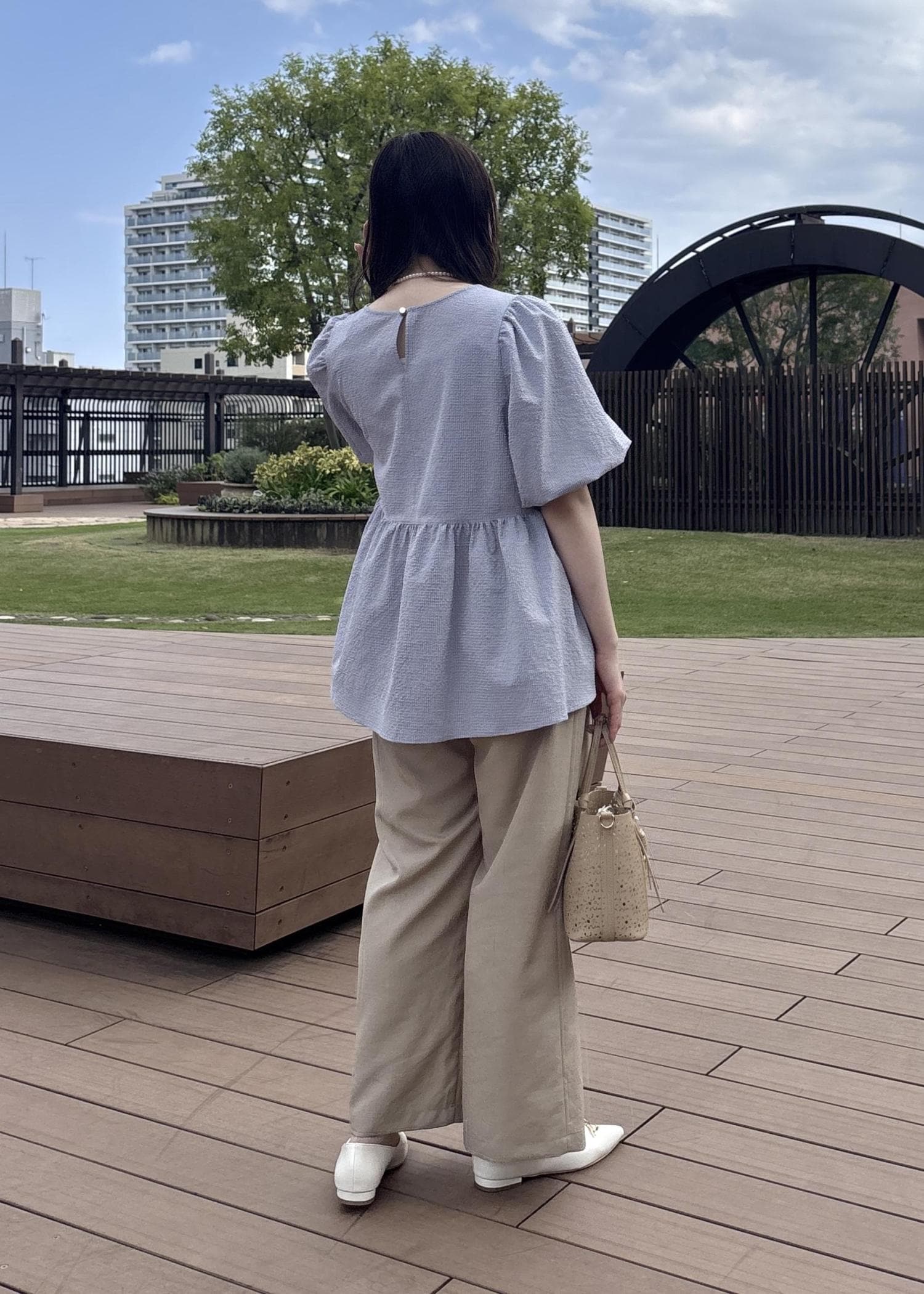バルーンペプラムブラウス