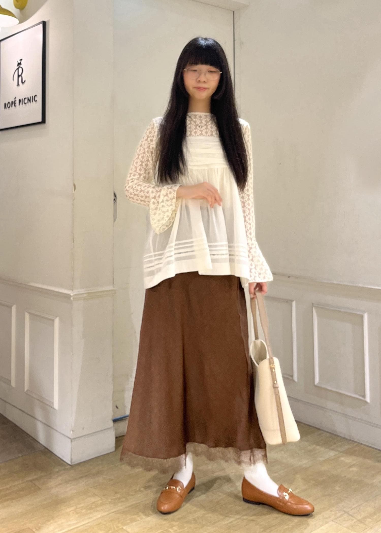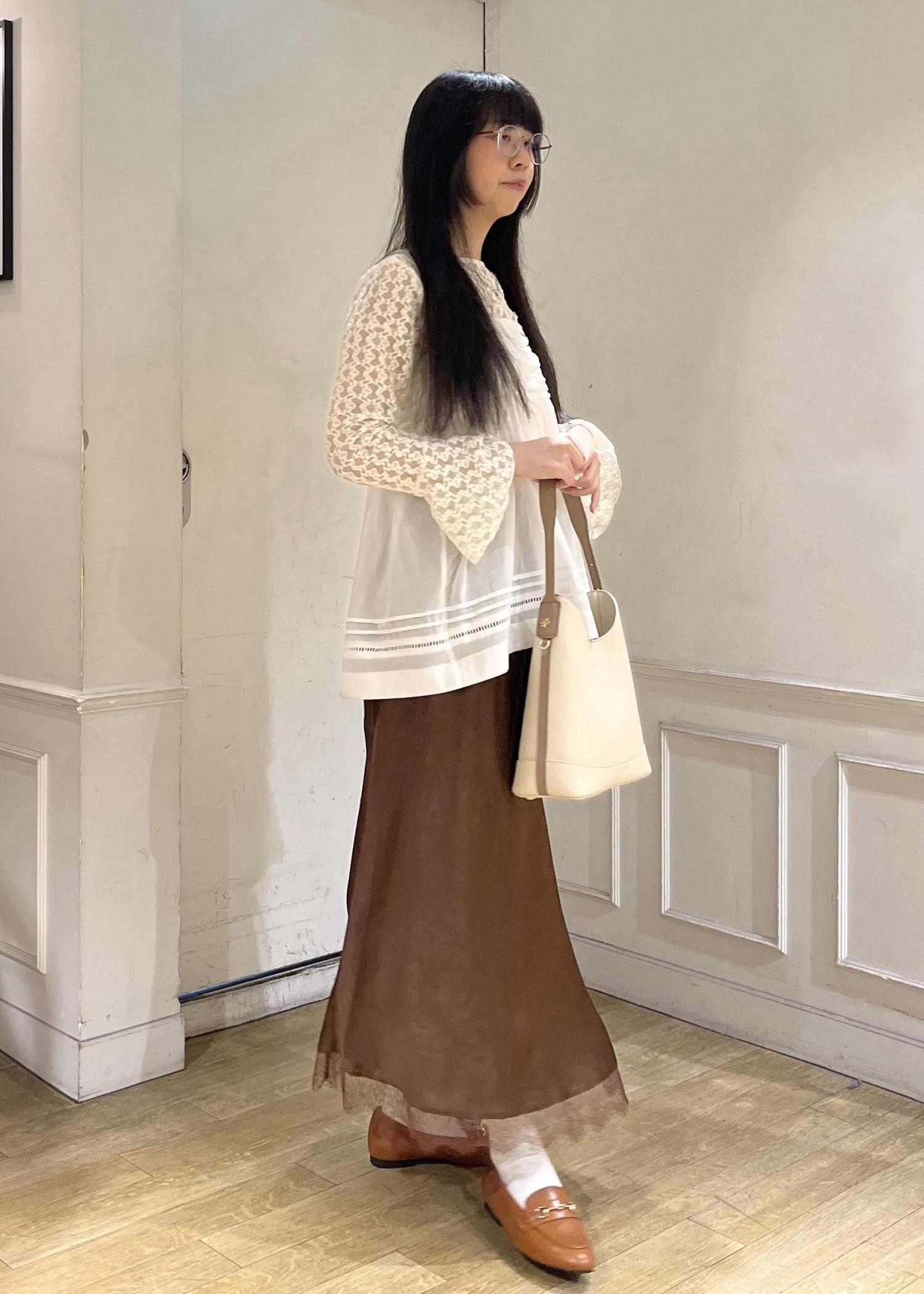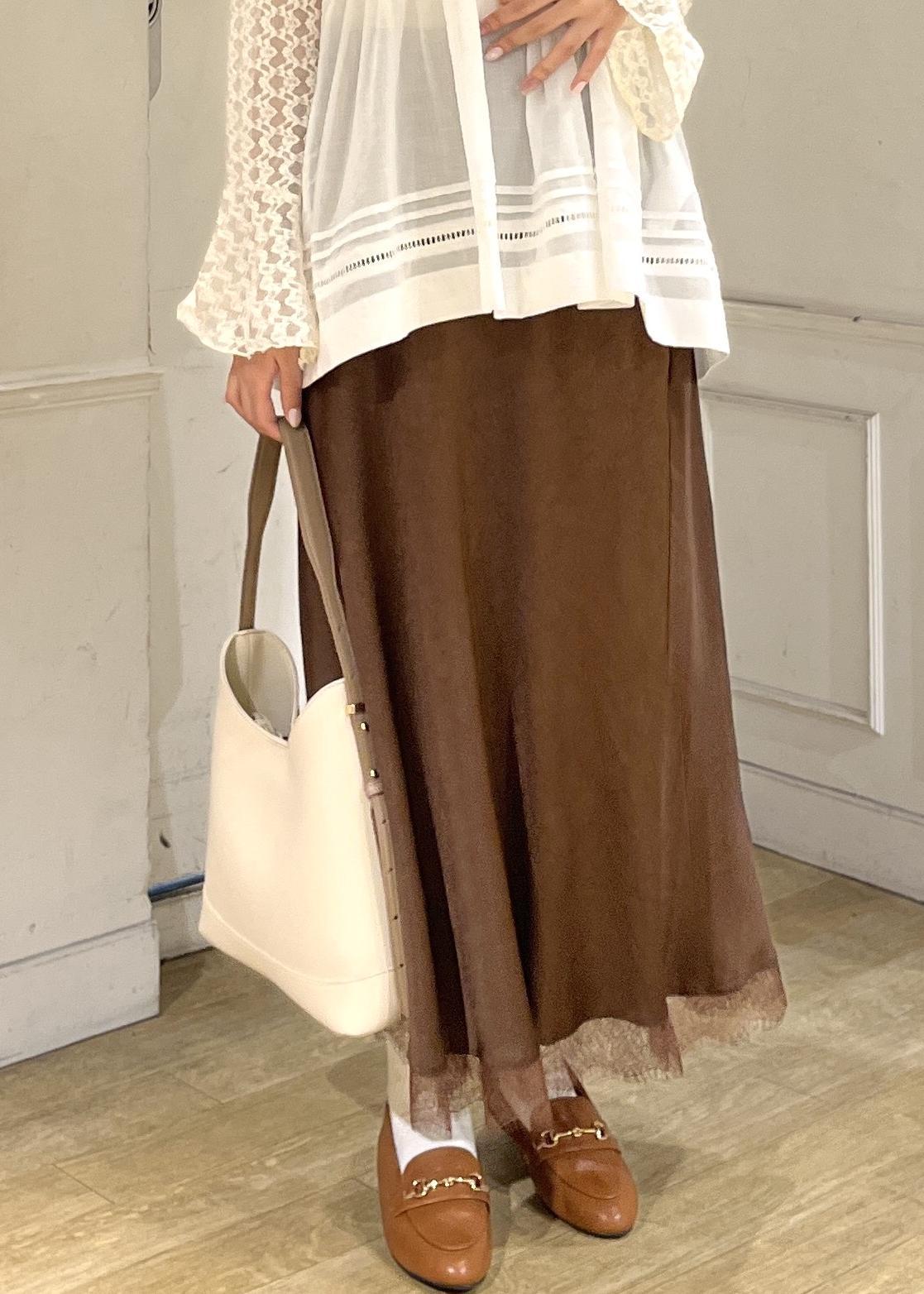ROPÉ PICNIC裾レースロングスカートブラウン / F¥6,490レビューシボ感のあるマットサテンで、光沢感を少し抑えたクラシカルな印象を出せます。