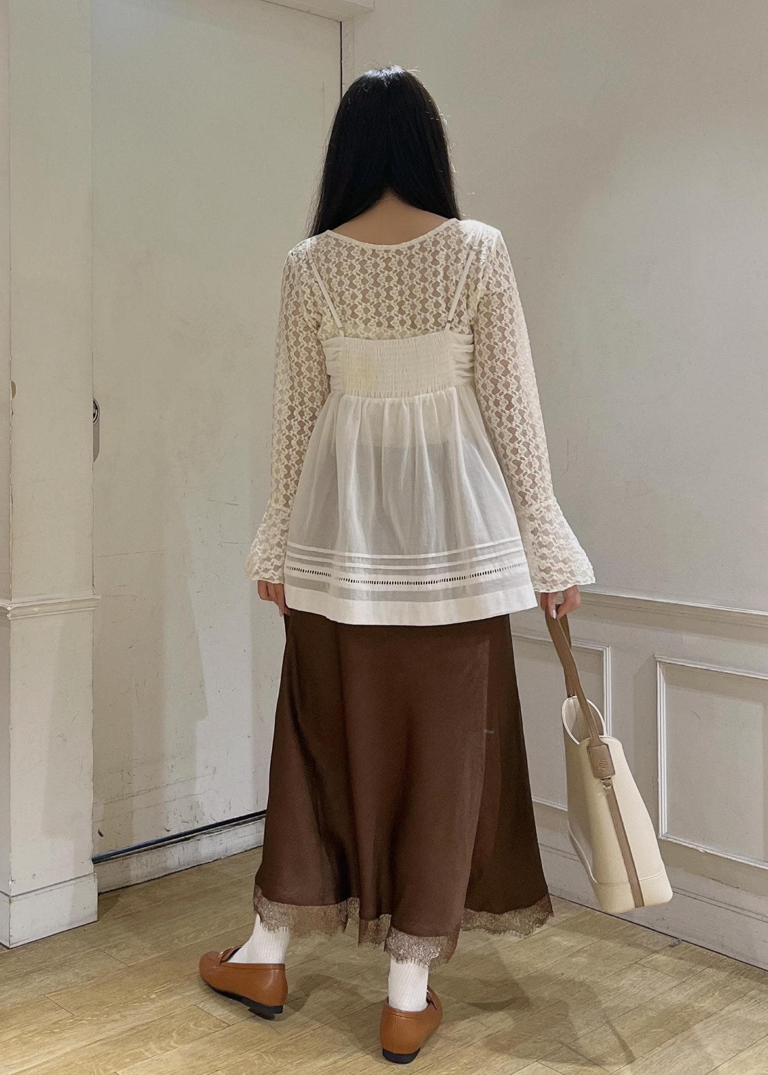 裾にはハシゴレースで甘さをプラス♡