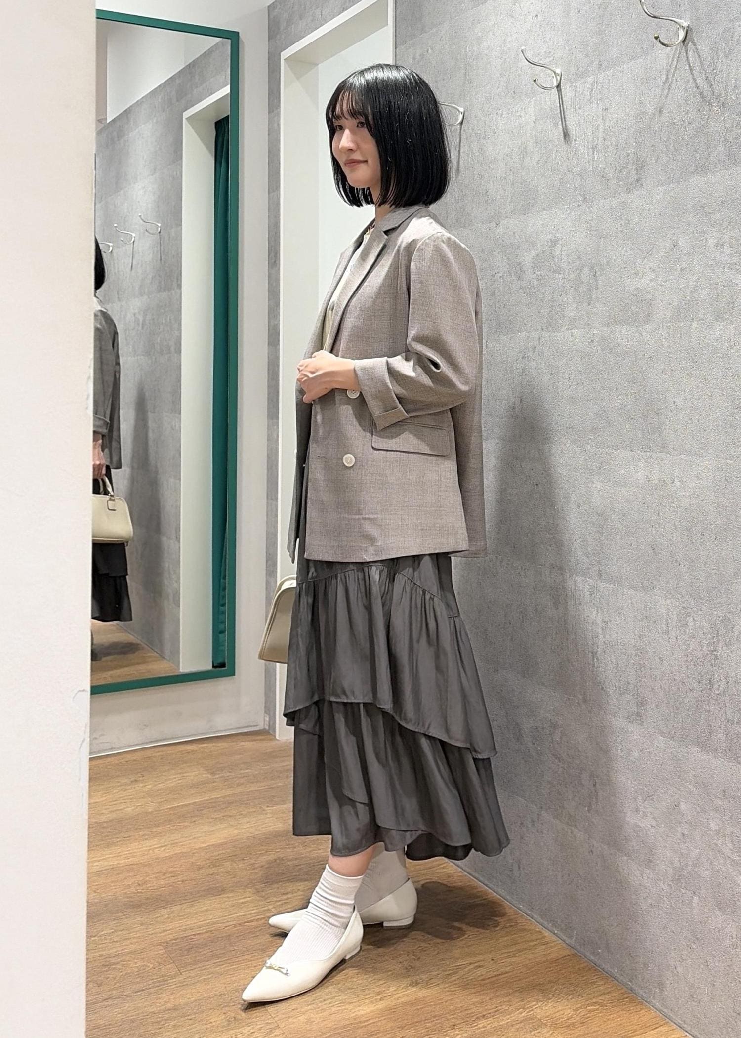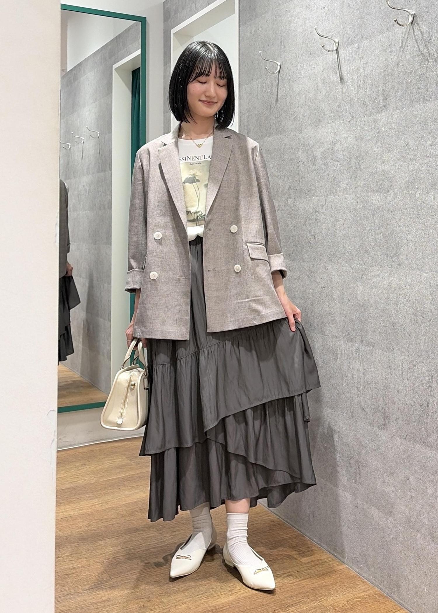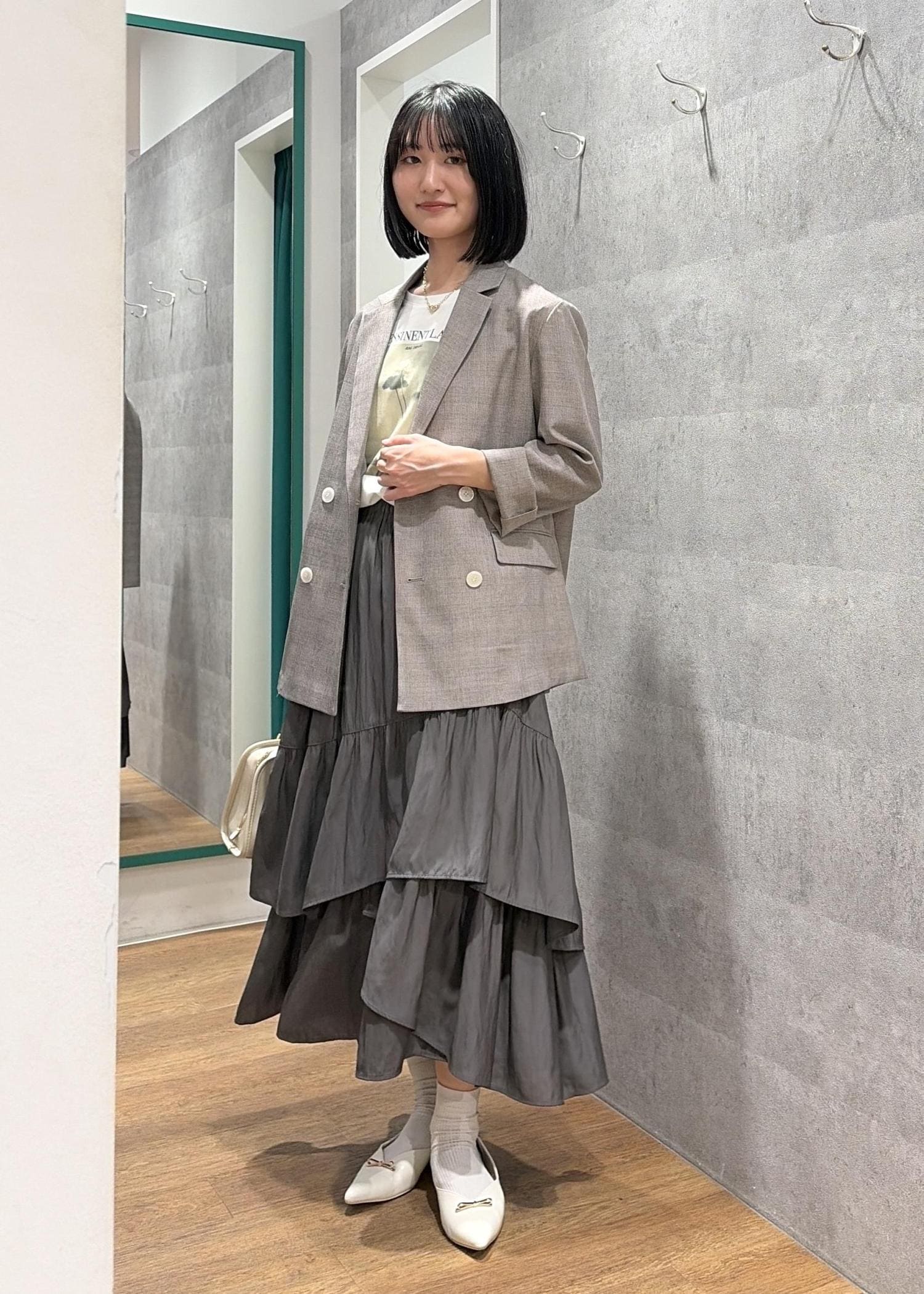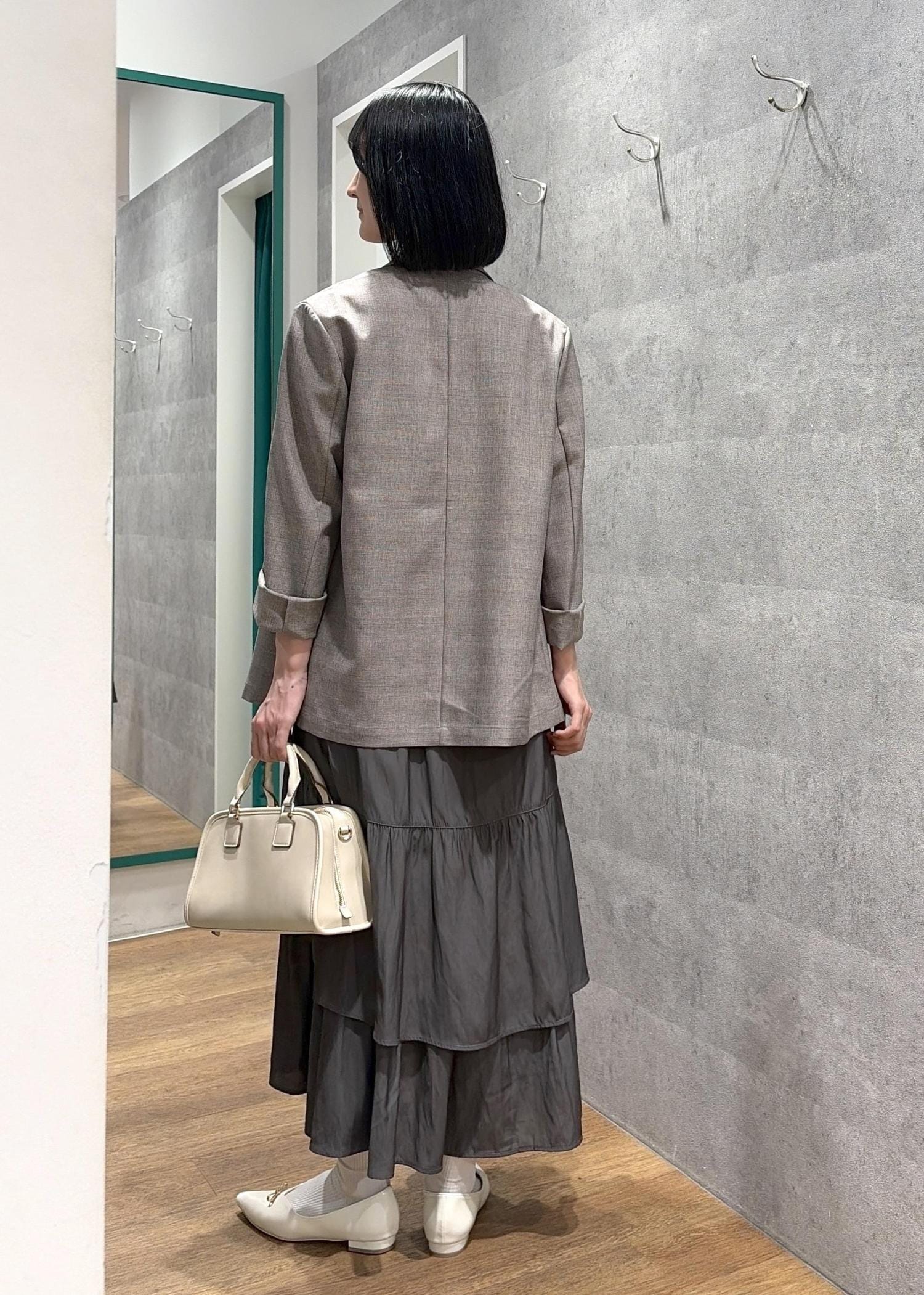 メランジジャケット×ティアードスカート