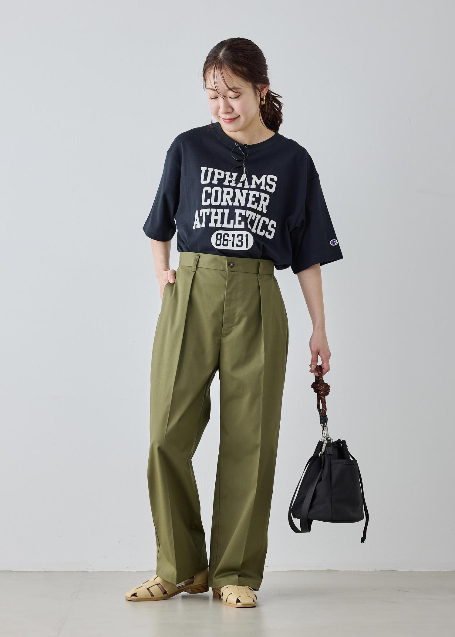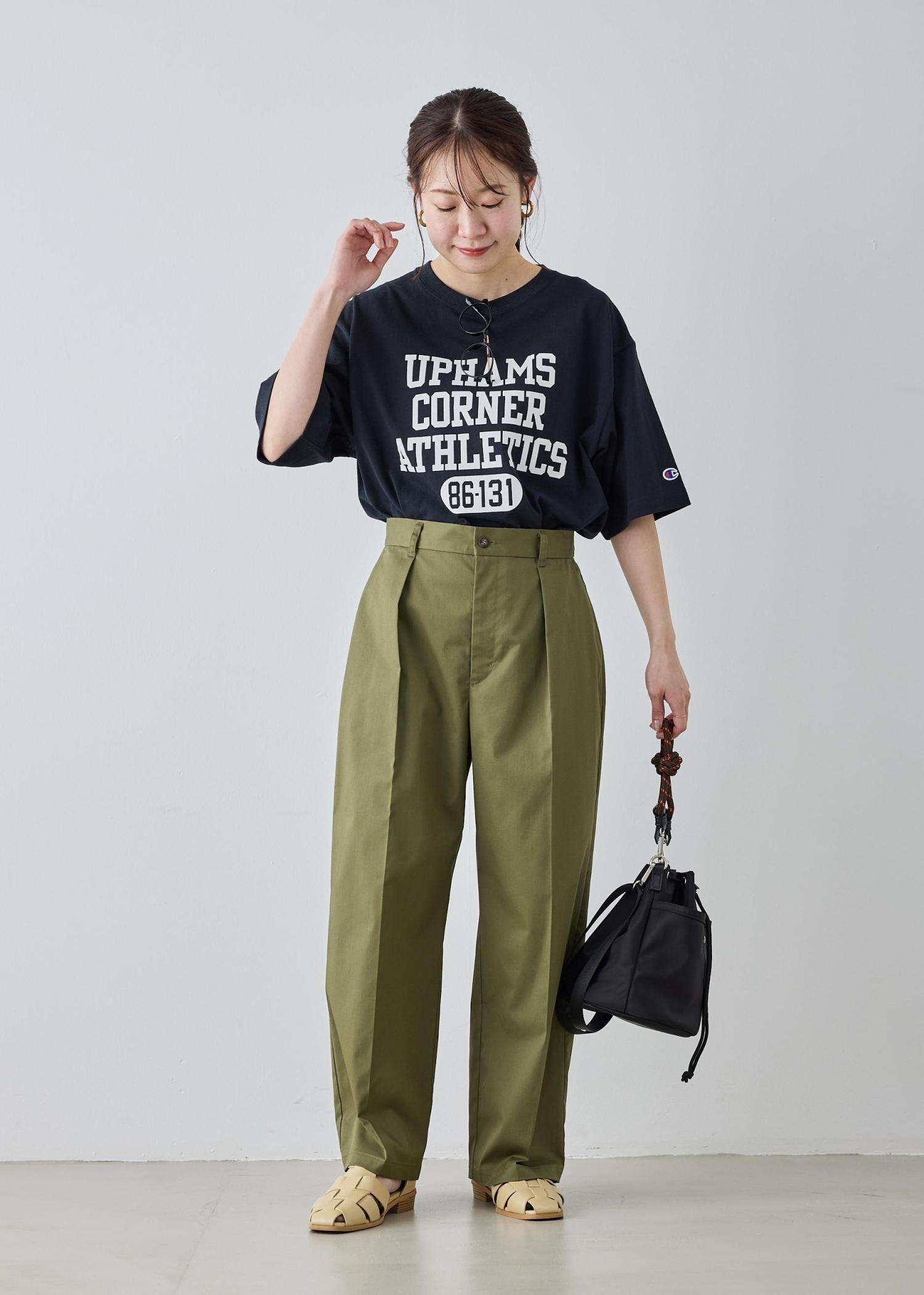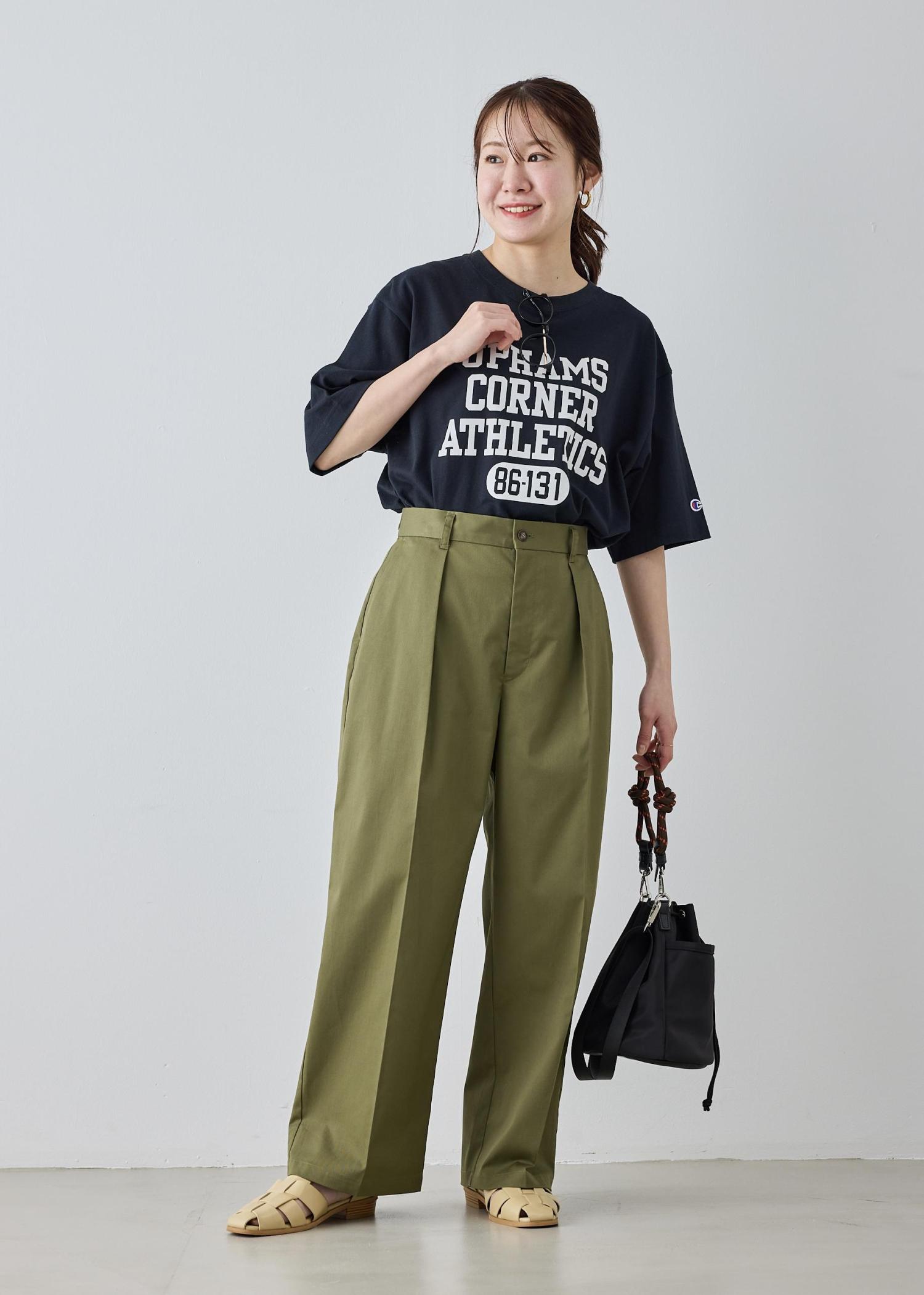 通常サイズだとダボダボ見えてしまうチノパンも、小柄さん向けに調整されたこのパンツなら、151cmの私でもぴったり!