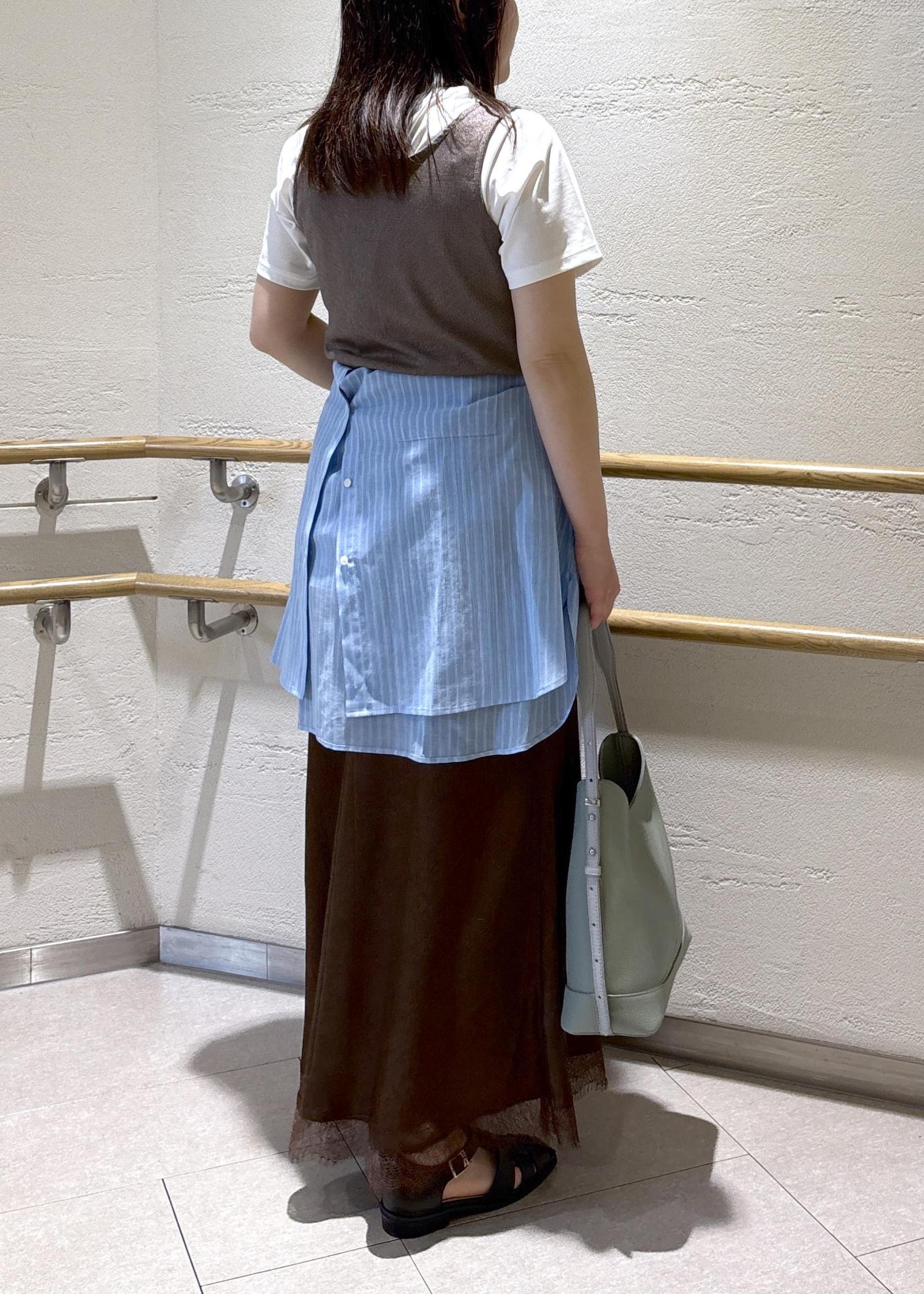 シャツを腰巻きにして、気になる下半身をカバー◎
