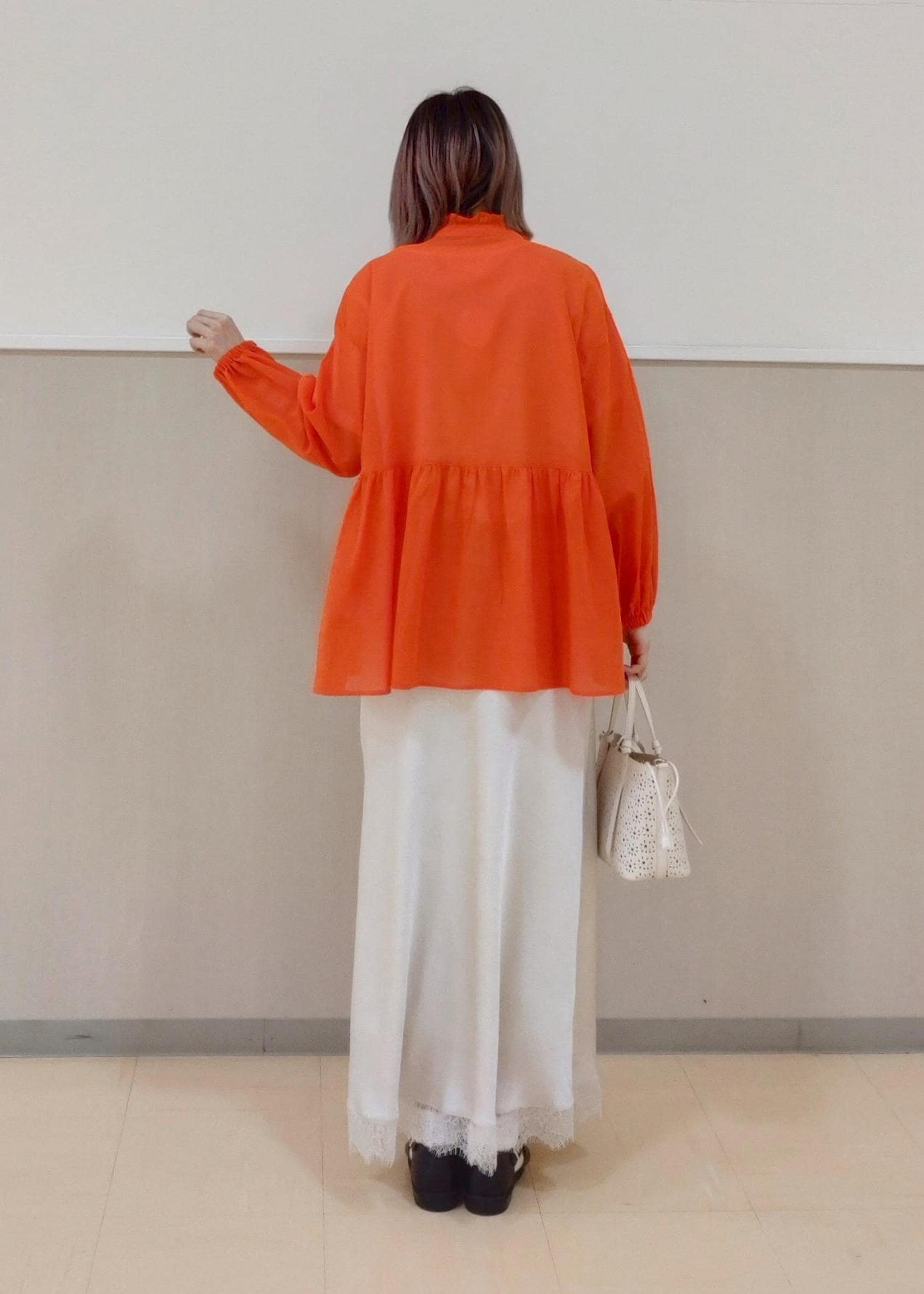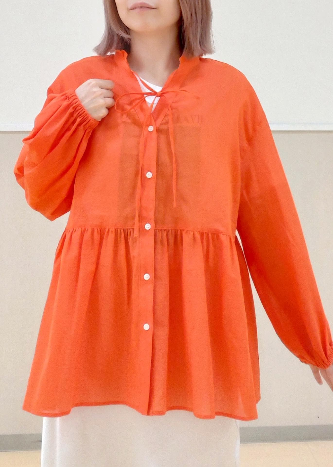 ROPÉ PICNICお着軽シャツシリーズ フリルカラーシアーペプラムブラウス/接触冷感・通気性オレンジ / F¥4,994レビューオレンジが可愛い綿ボイルシャツです