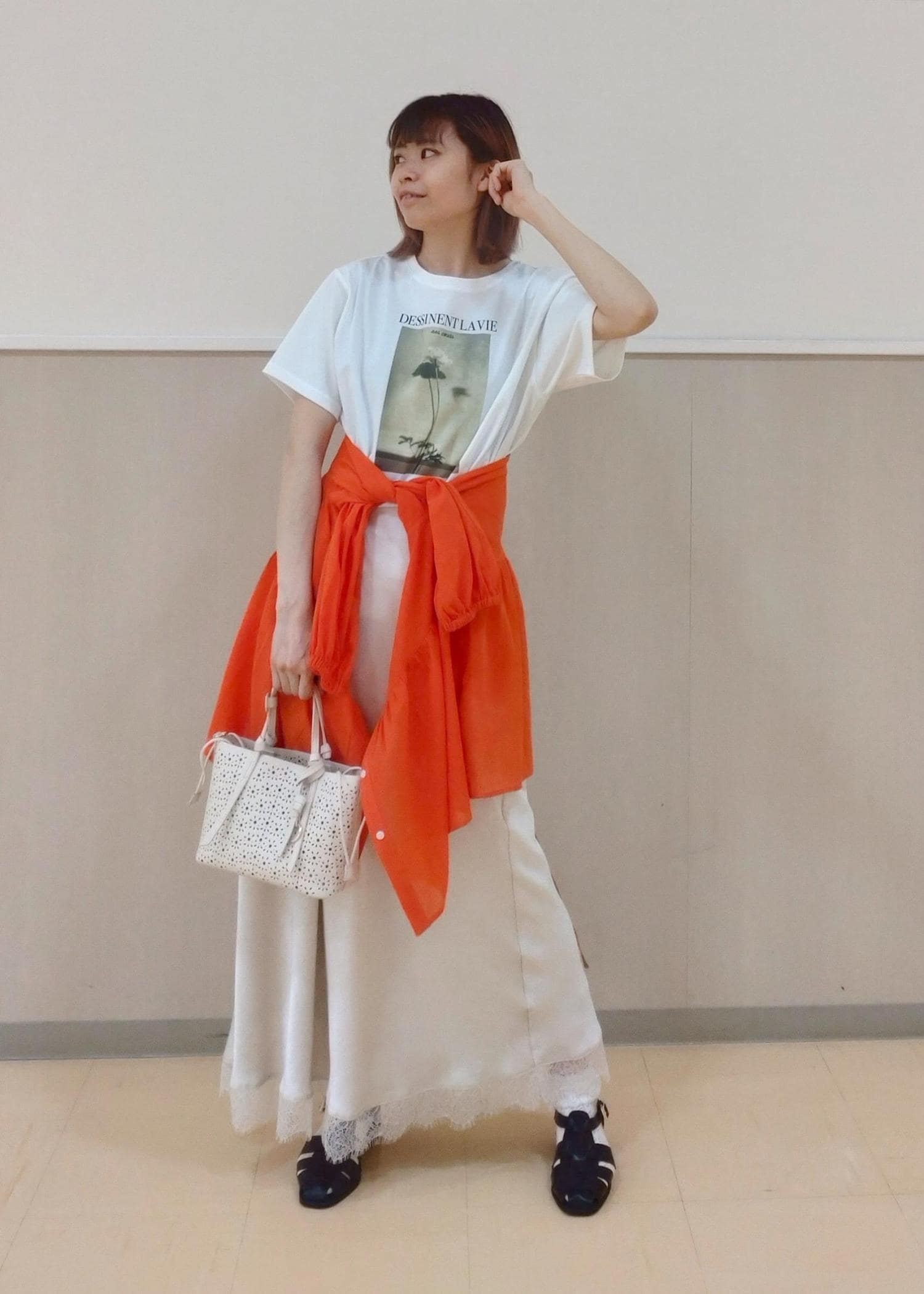 スカートを上品な雰囲気のものを合わせてカジュアルになりすぎないよう意識しました!