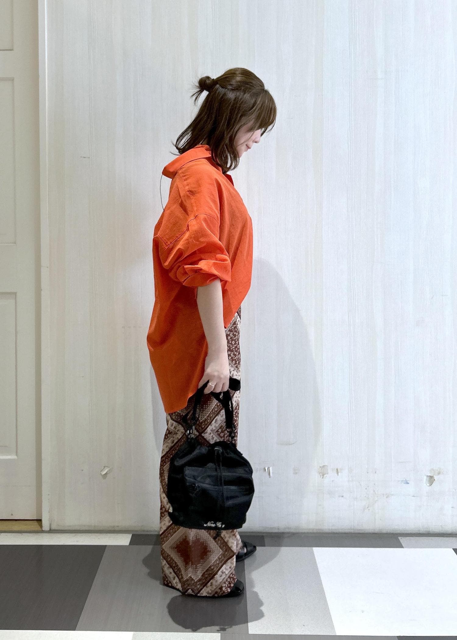スカーフ柄のワイドパンツはシンプルコーデのアクセントになるのでオススメです♡