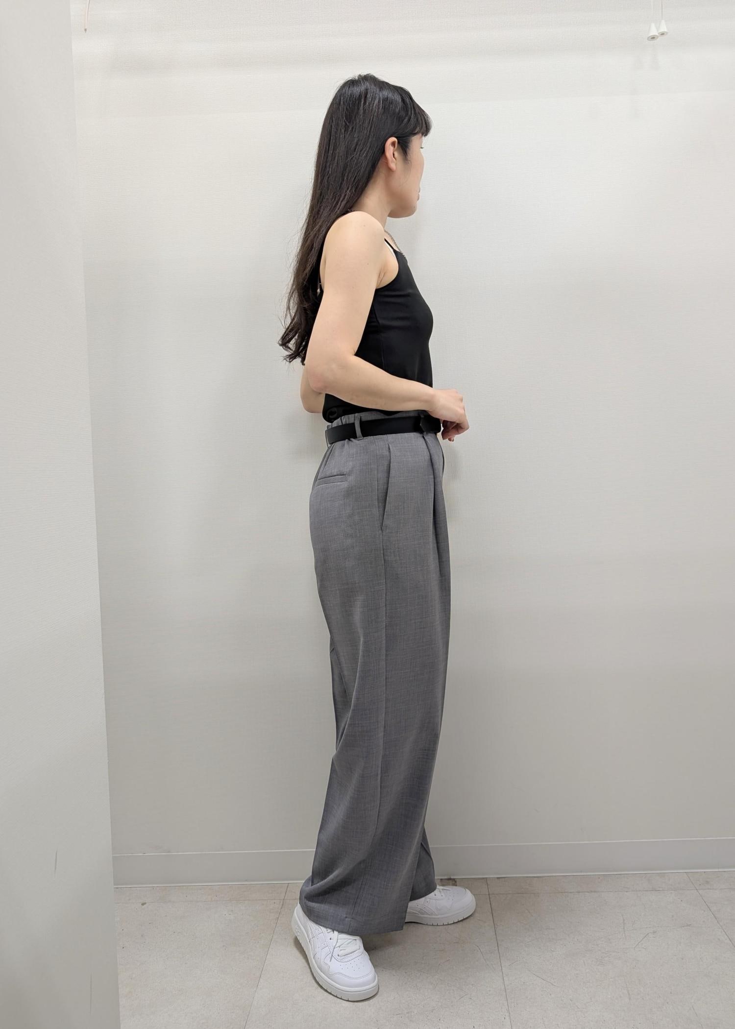 ROPÉ PICNICカナパ ベルト付きワイドパンツ/セットアップ対応・UV・抗菌防臭・接触冷感グレー / L¥5,995レビューウエストはタック入りでお腹周りをカバーしてくれます。