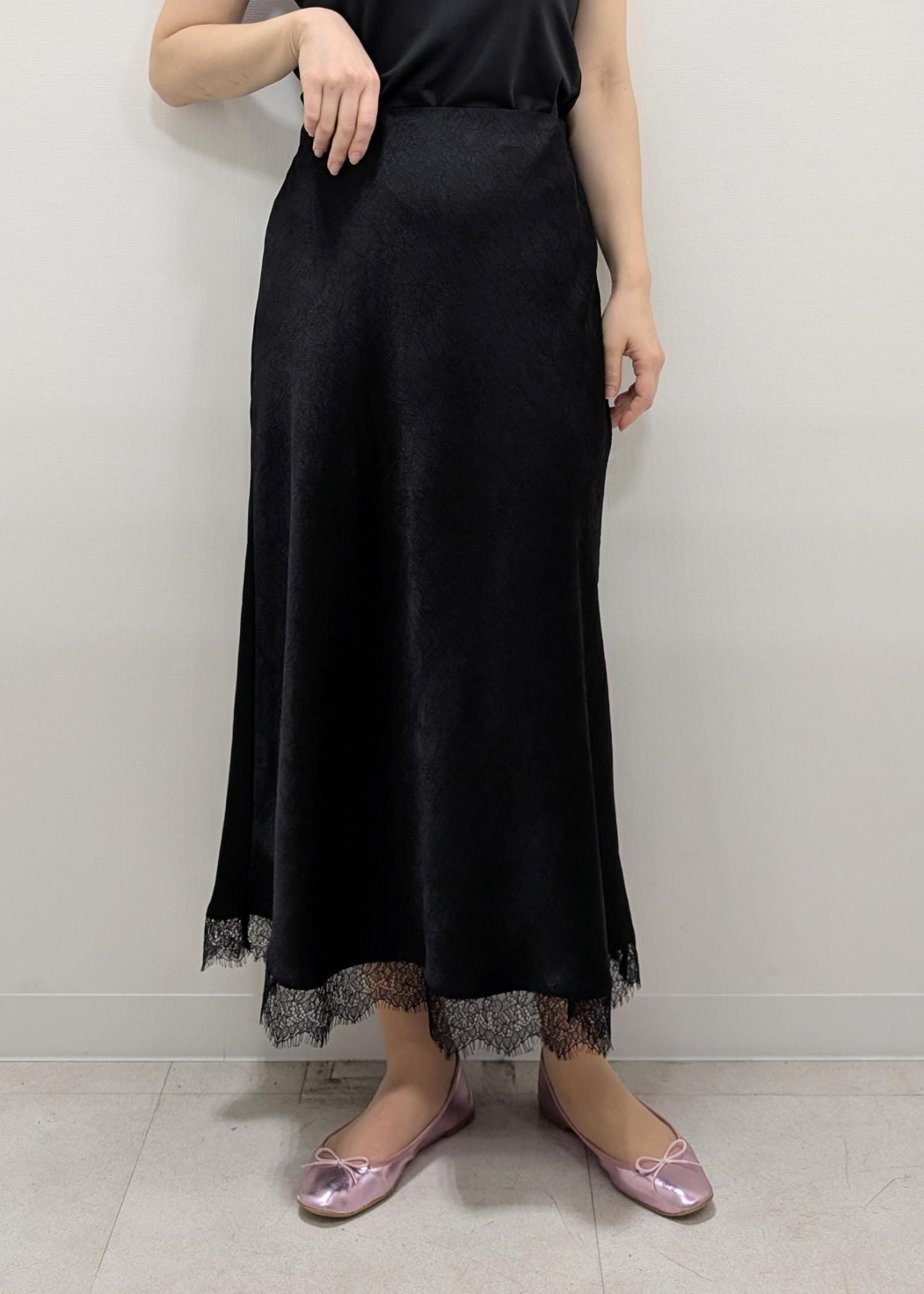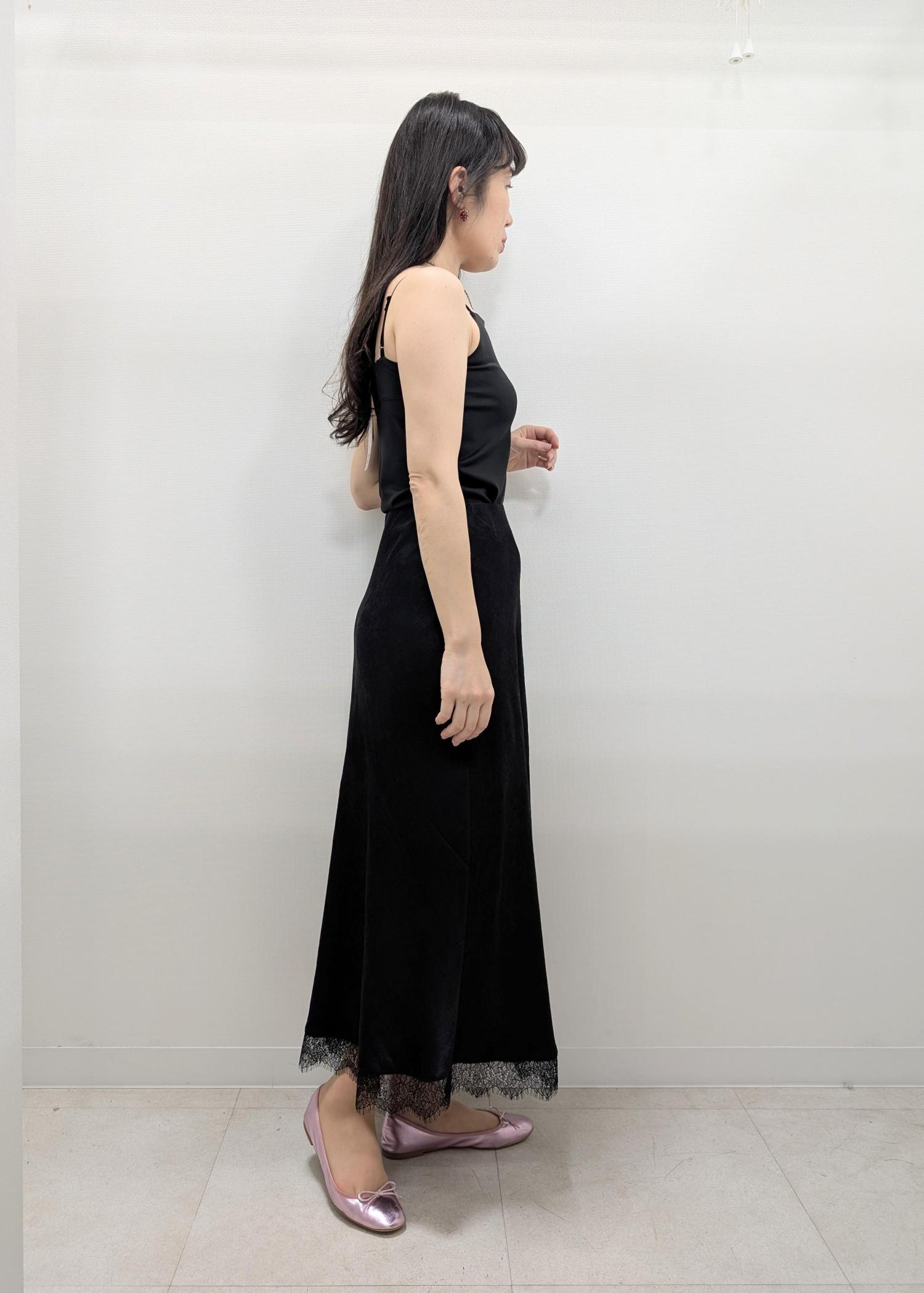 ROPÉ PICNIC裾レースロングスカートブラック / F¥6,490レビュー私は骨格ウェーブでお尻に合わせるとウエストが余ることが多いのですが、ウエストが余ることなくジャストサイズで履けました。