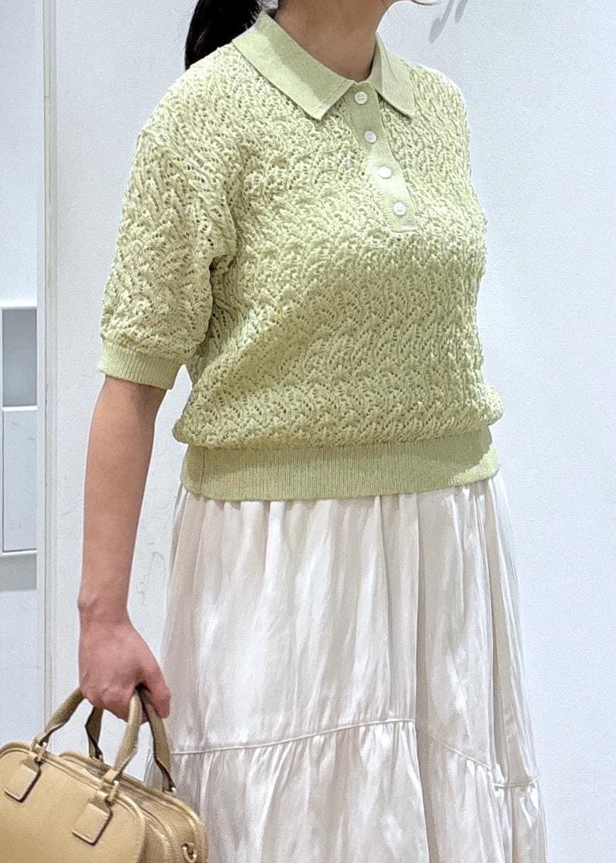 ROPÉ PICNICレースポロニットキミドリ / F¥5,995レビューレースの編み地がかわいいニットです。身幅は適度にゆとりがあります。程よい透け感で涼しげに見せてくれます。