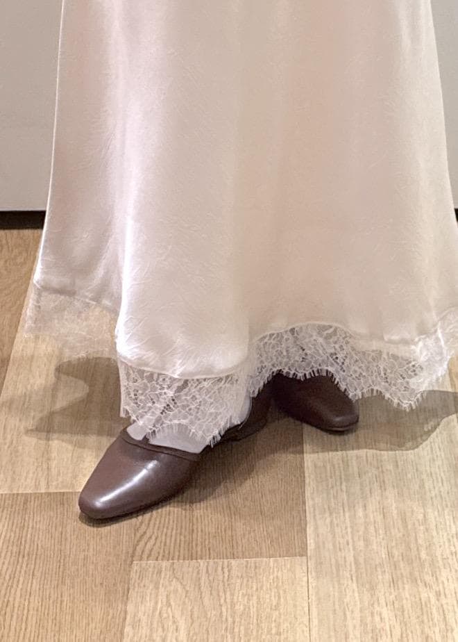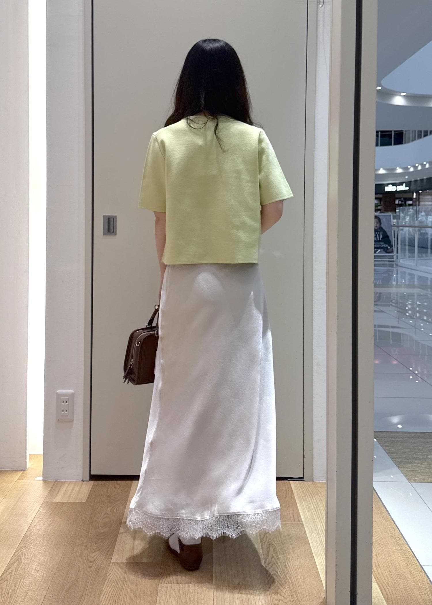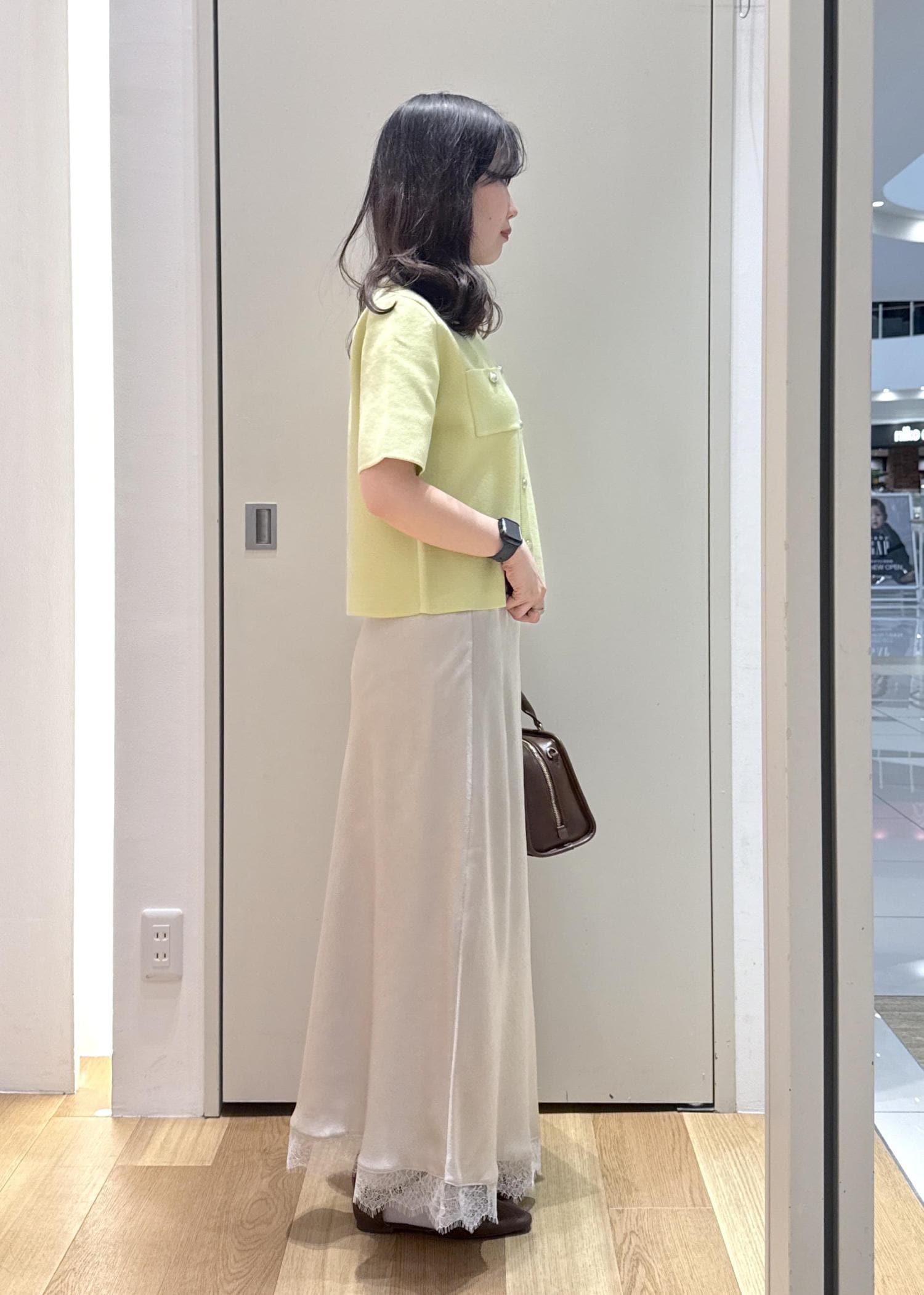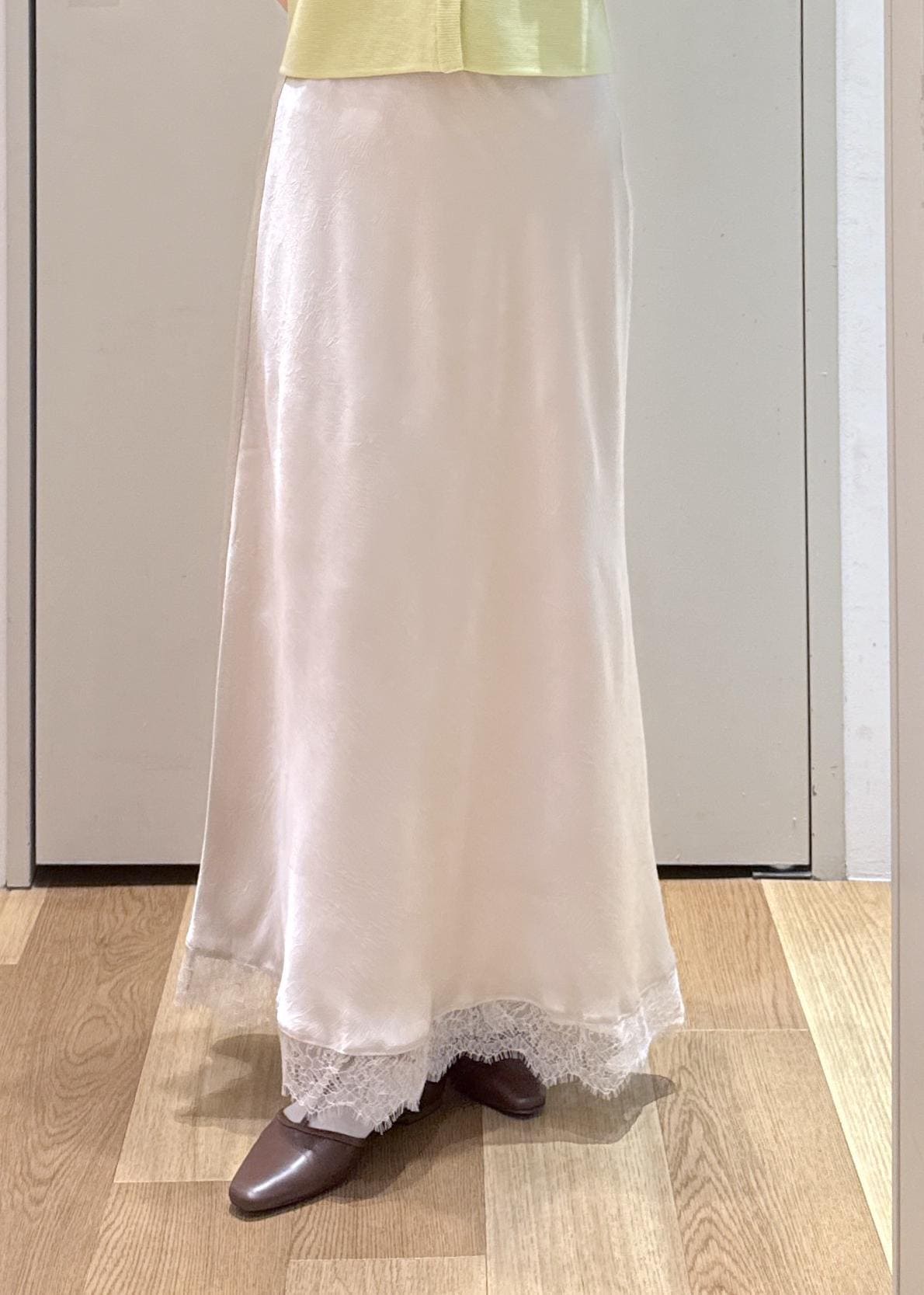上品な裾レーススカートと合わせて女性らしいきれいめコーデにしてみました。