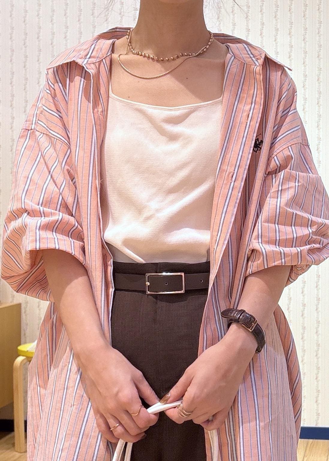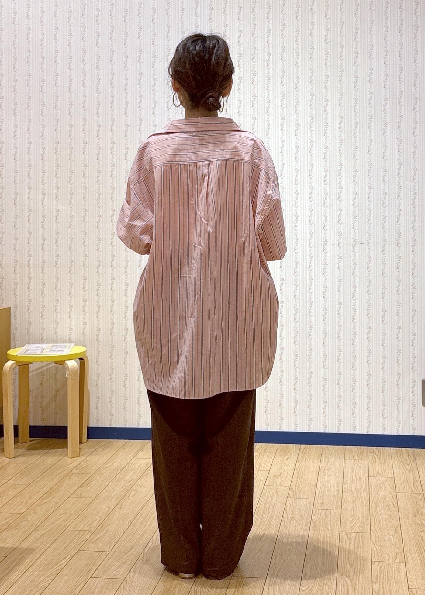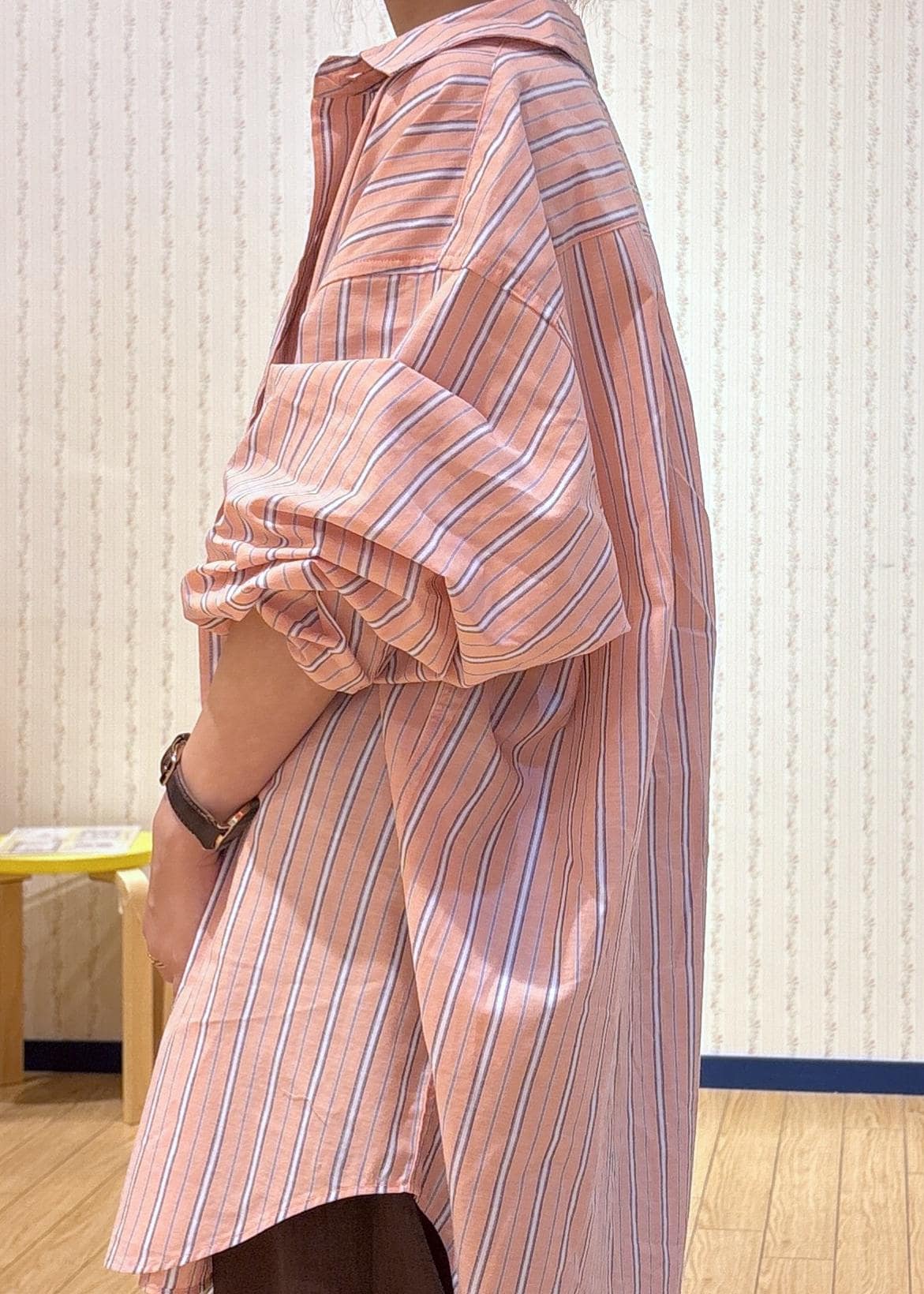 NEW!ROPÉ PICNIC【BEVERLYHILLS POLO CLUB・一部店舗限定】ストライプビッグシルエットシャツオレンジ / F¥4,950レビューオーバーシルエットでお尻もすっぽり隠れる着丈です!