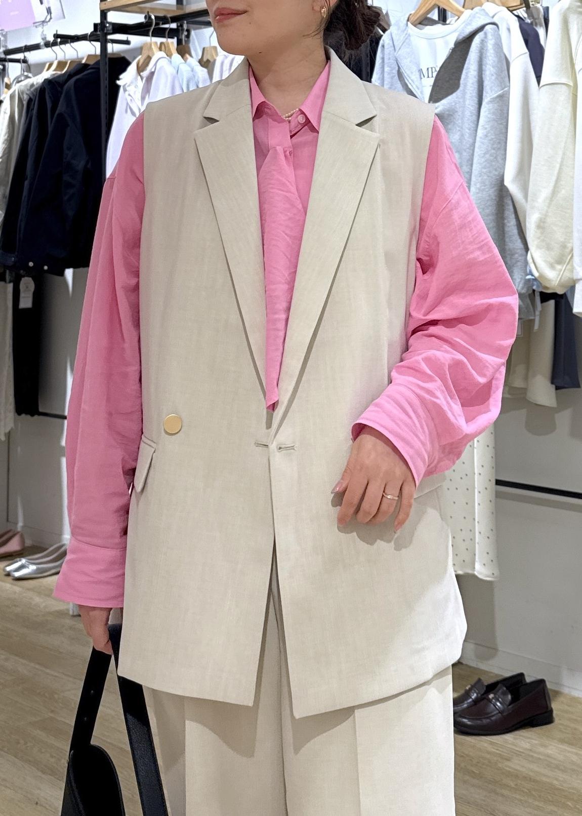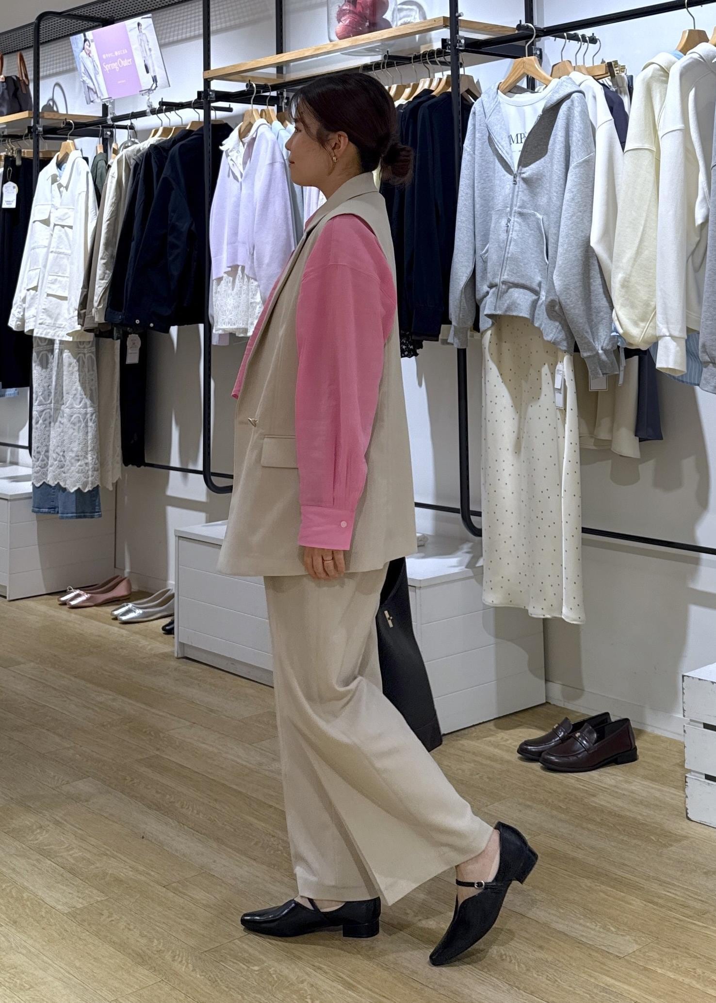 ロペピクニック大人気のカナパセットアップのジレ+パンツのセットアップで春のきれいめパンツコーデにしてみました!