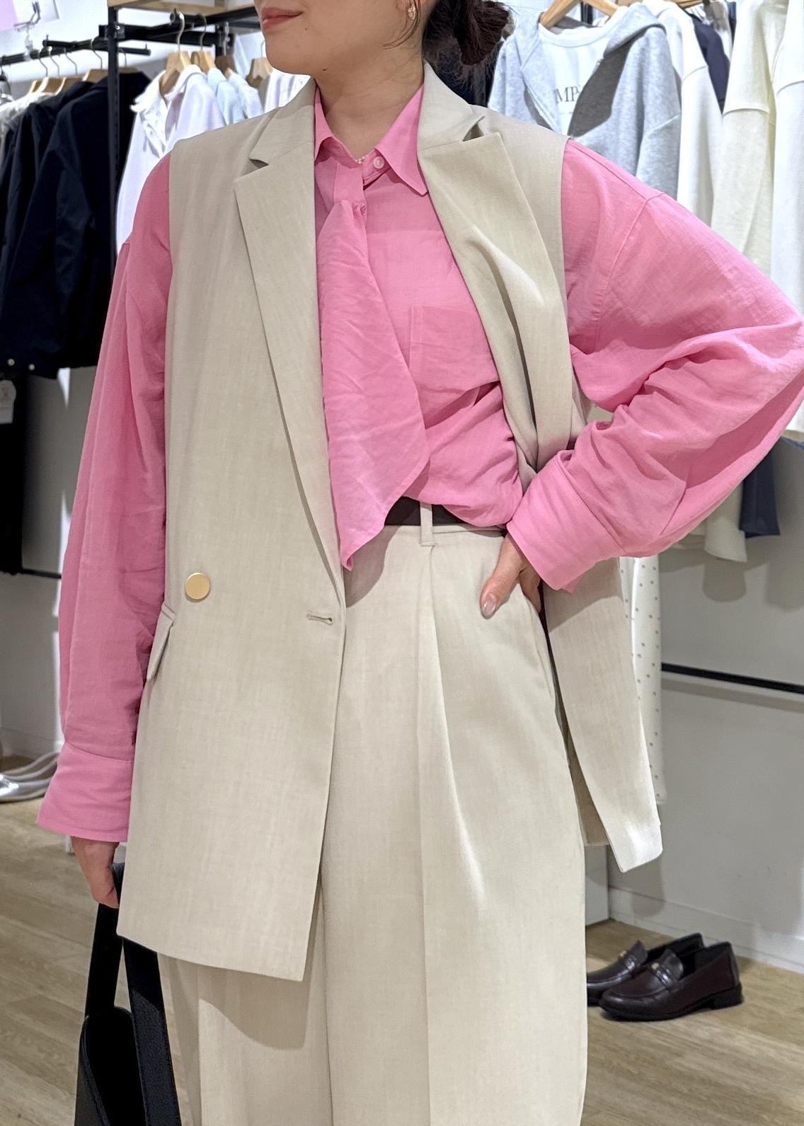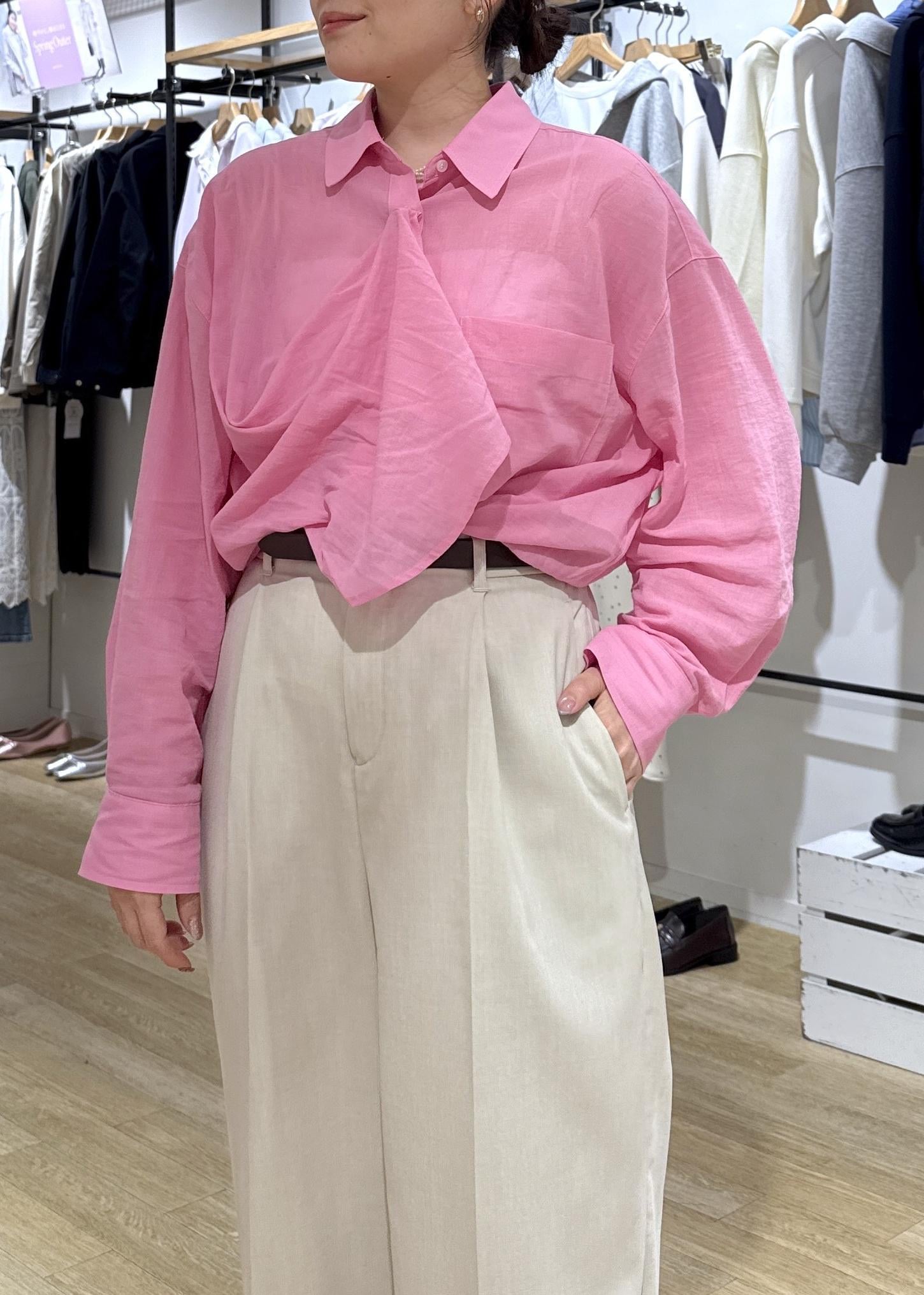 インナーに合わせたシャツはボウタイフウにアレンジして