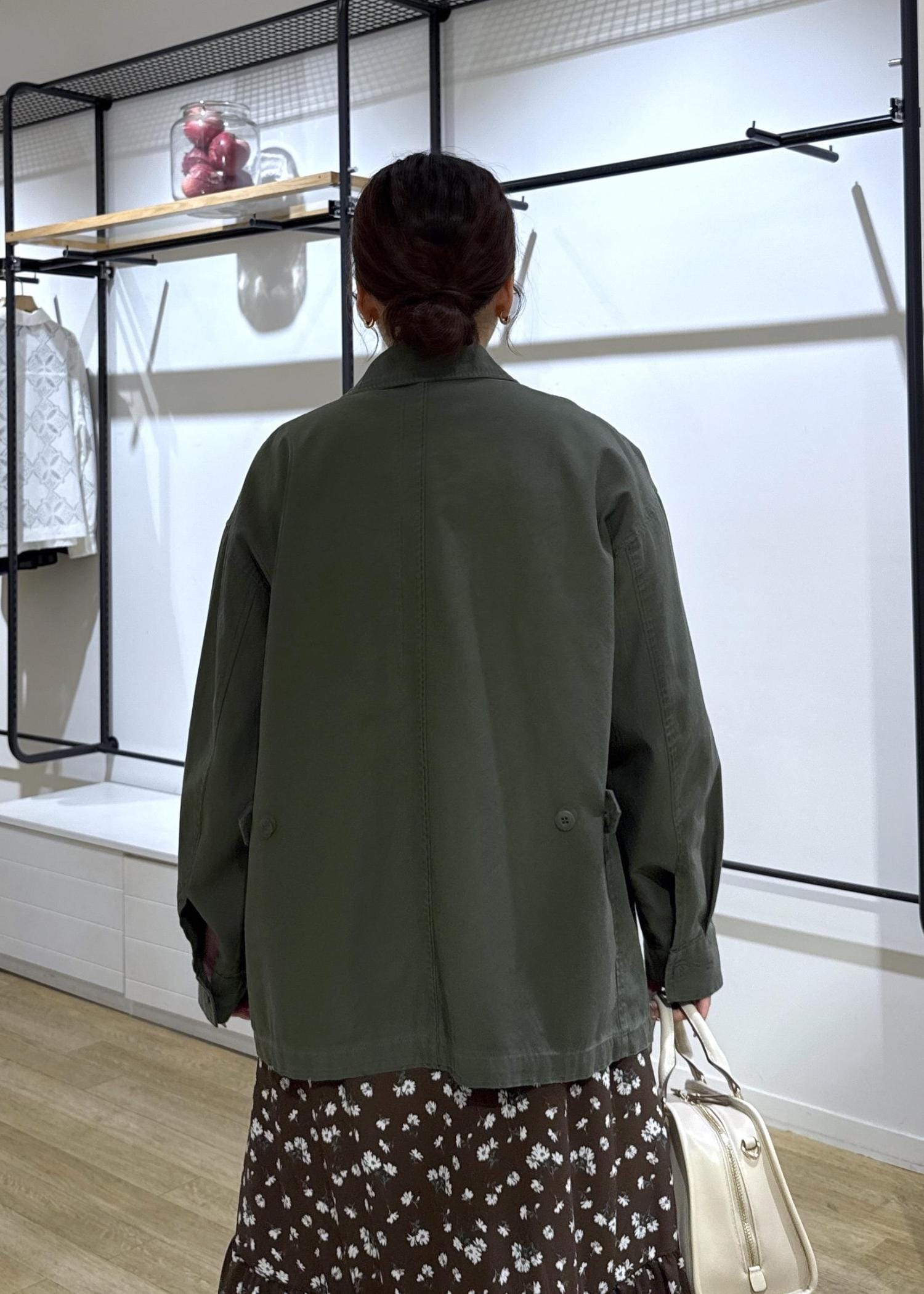 裏地なしの綿素材なので、春秋の軽めのアウターとして使いやすいです。 -